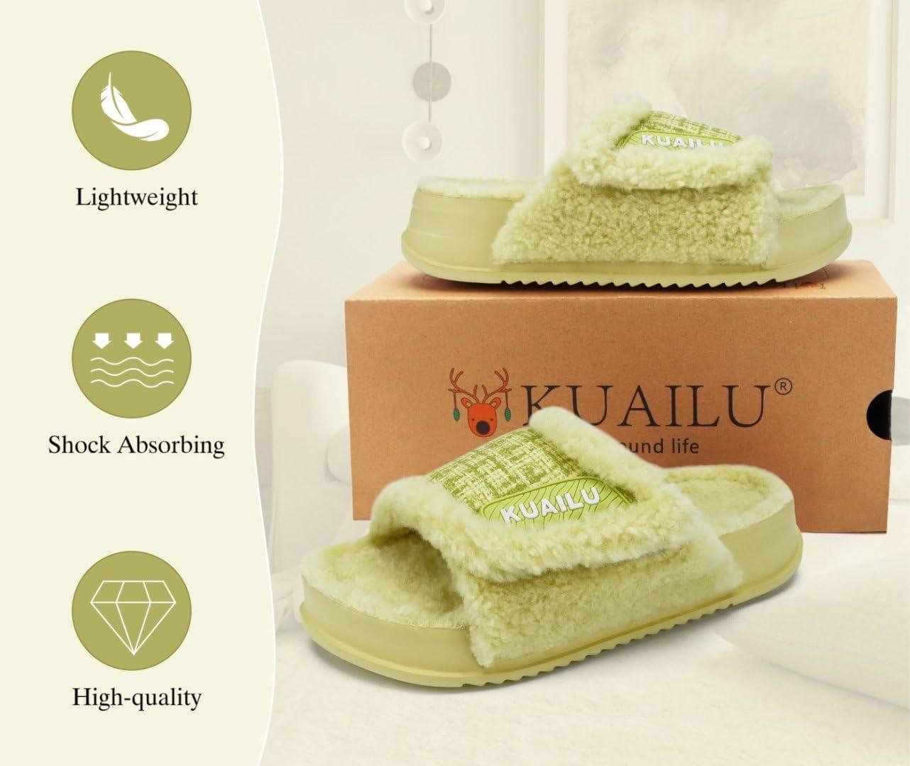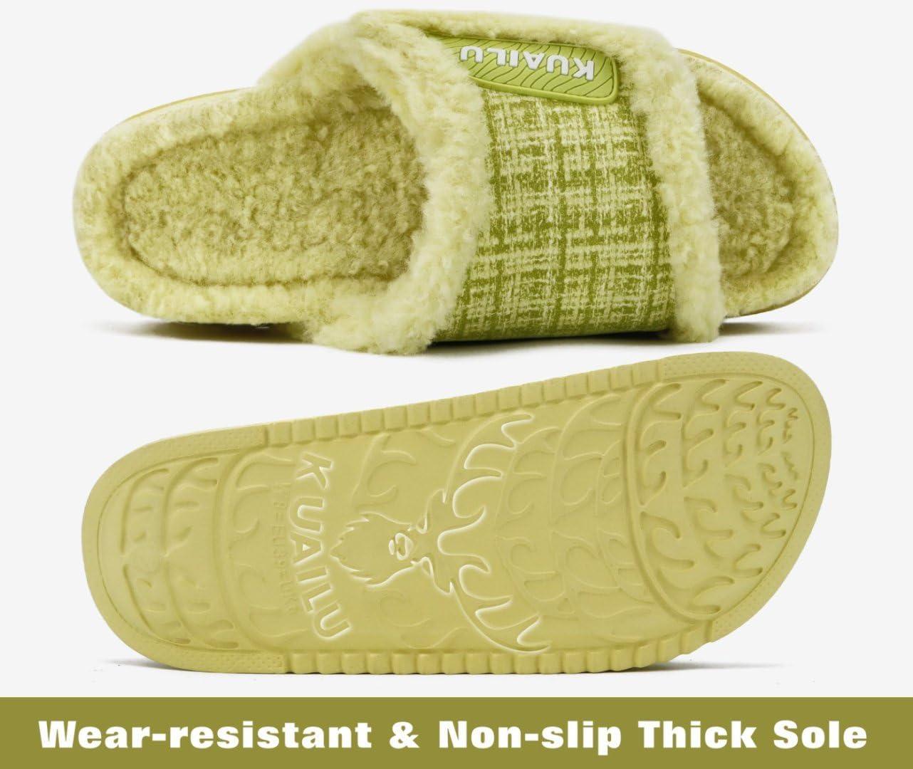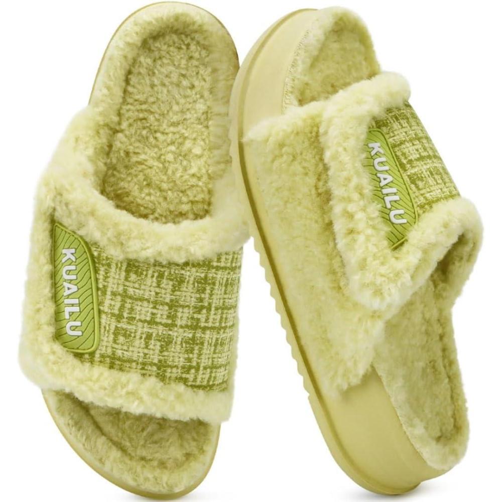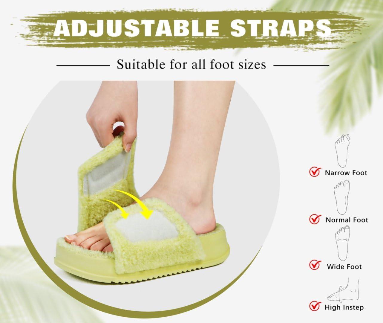 KuaiLu Cushion Slippers For Women with Orthotic Arch Support Wide Adjustable Open Toe Furry Fur Sandals Warm Teddy Fleece Recovery Slides Slip On House Shoes Indoor Outdoor Outfits