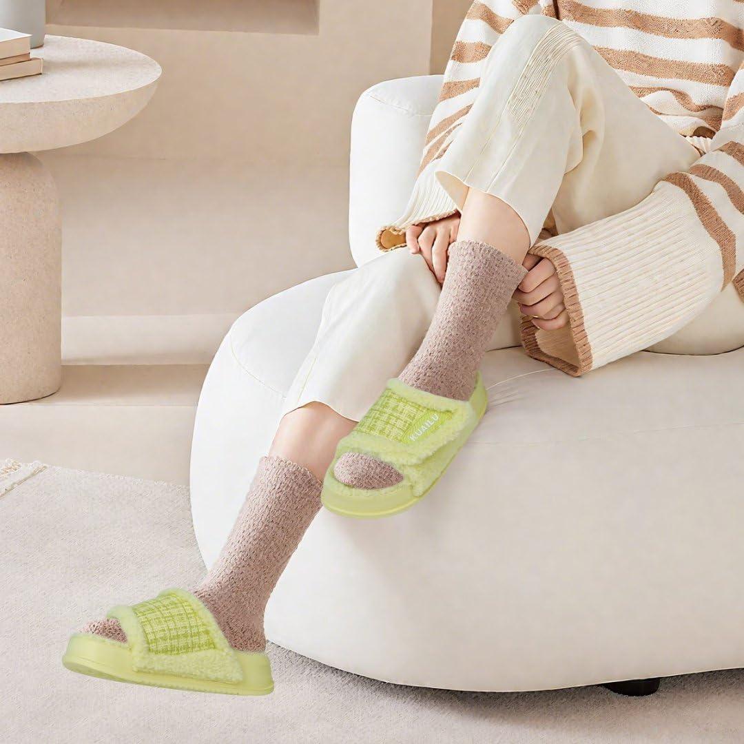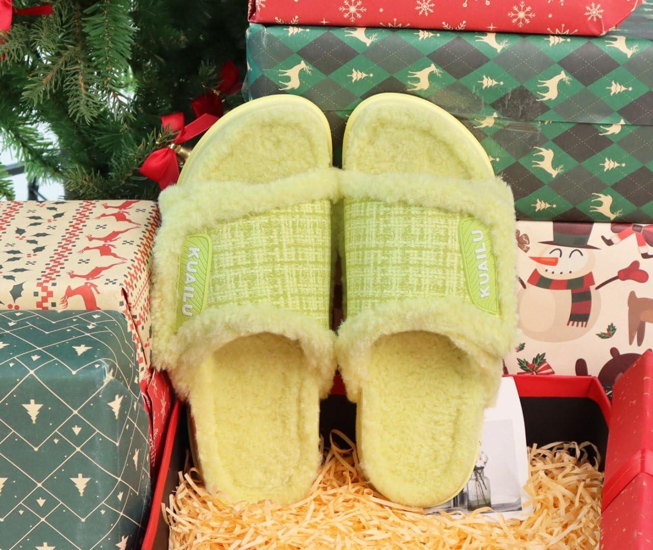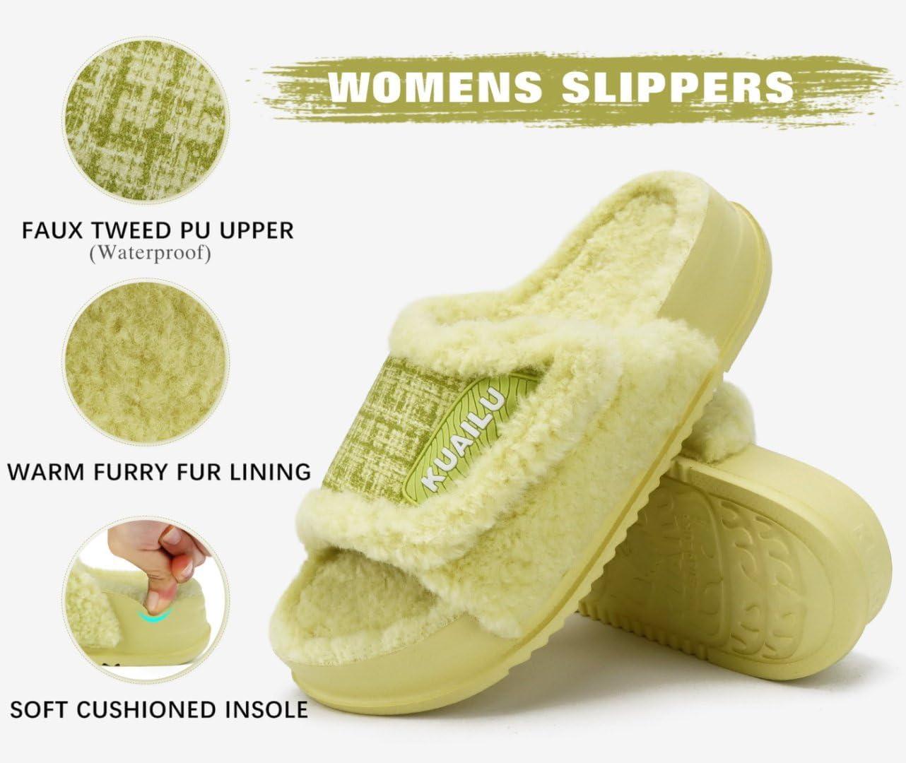 KuaiLu Cushion Slippers For Women with Orthotic Arch Support Wide Adjustable Open Toe Furry Fur Sandals Warm Teddy Fleece Recovery Slides Slip On House Shoes Indoor Outdoor Outfits