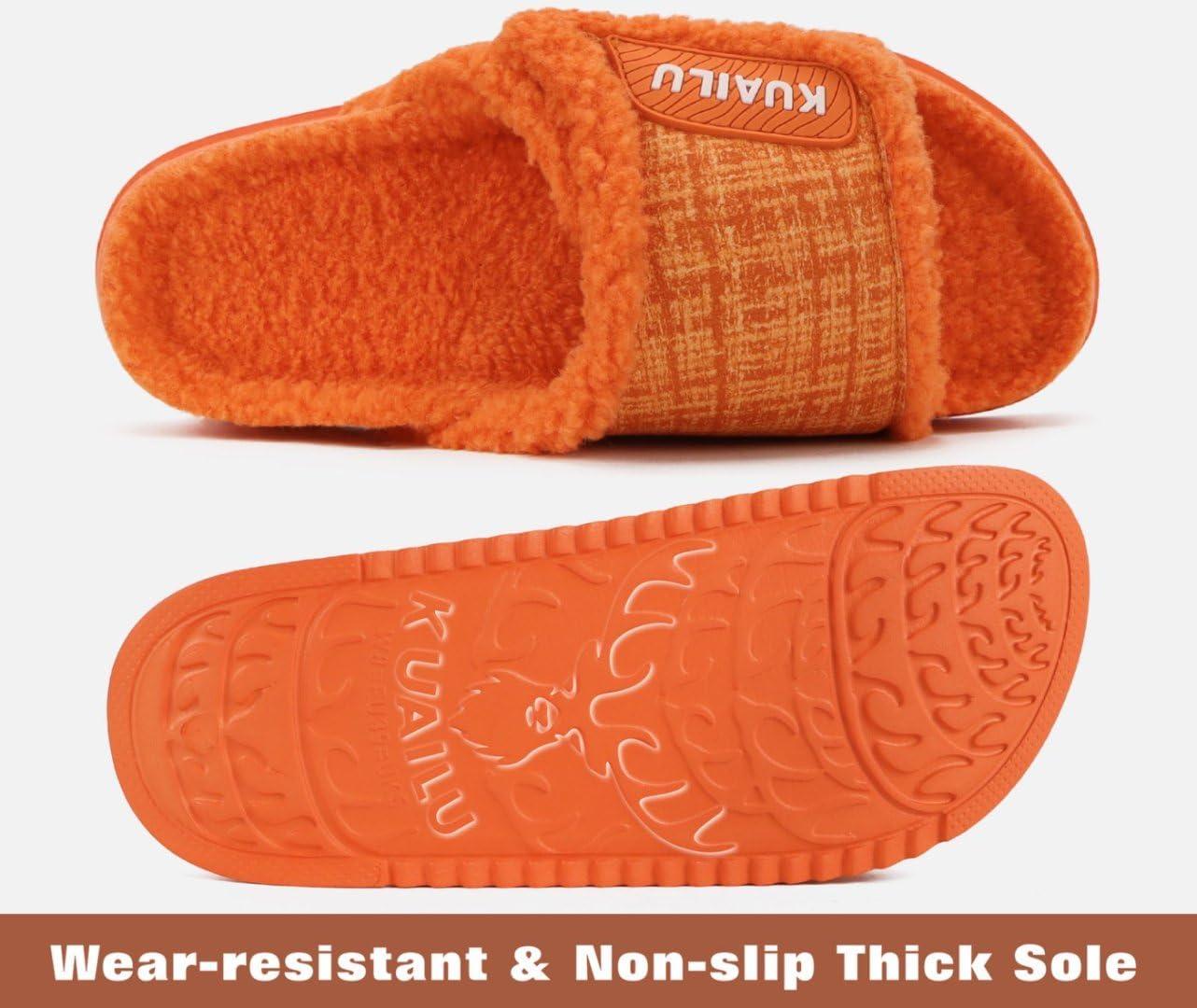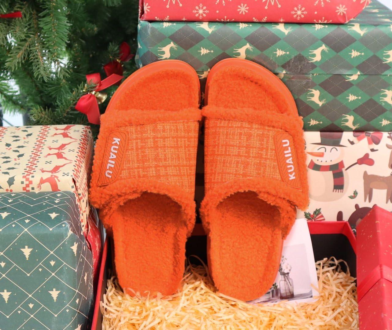 KuaiLu Cushion Slippers For Women with Orthotic Arch Support Wide Adjustable Open Toe Furry Fur Sandals Warm Teddy Fleece Recovery Slides Slip On House Shoes Indoor Outdoor Outfits