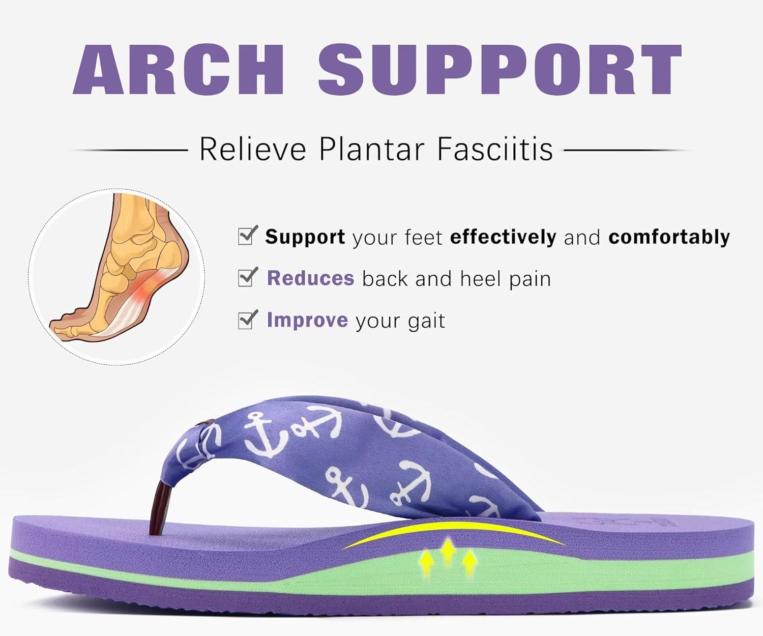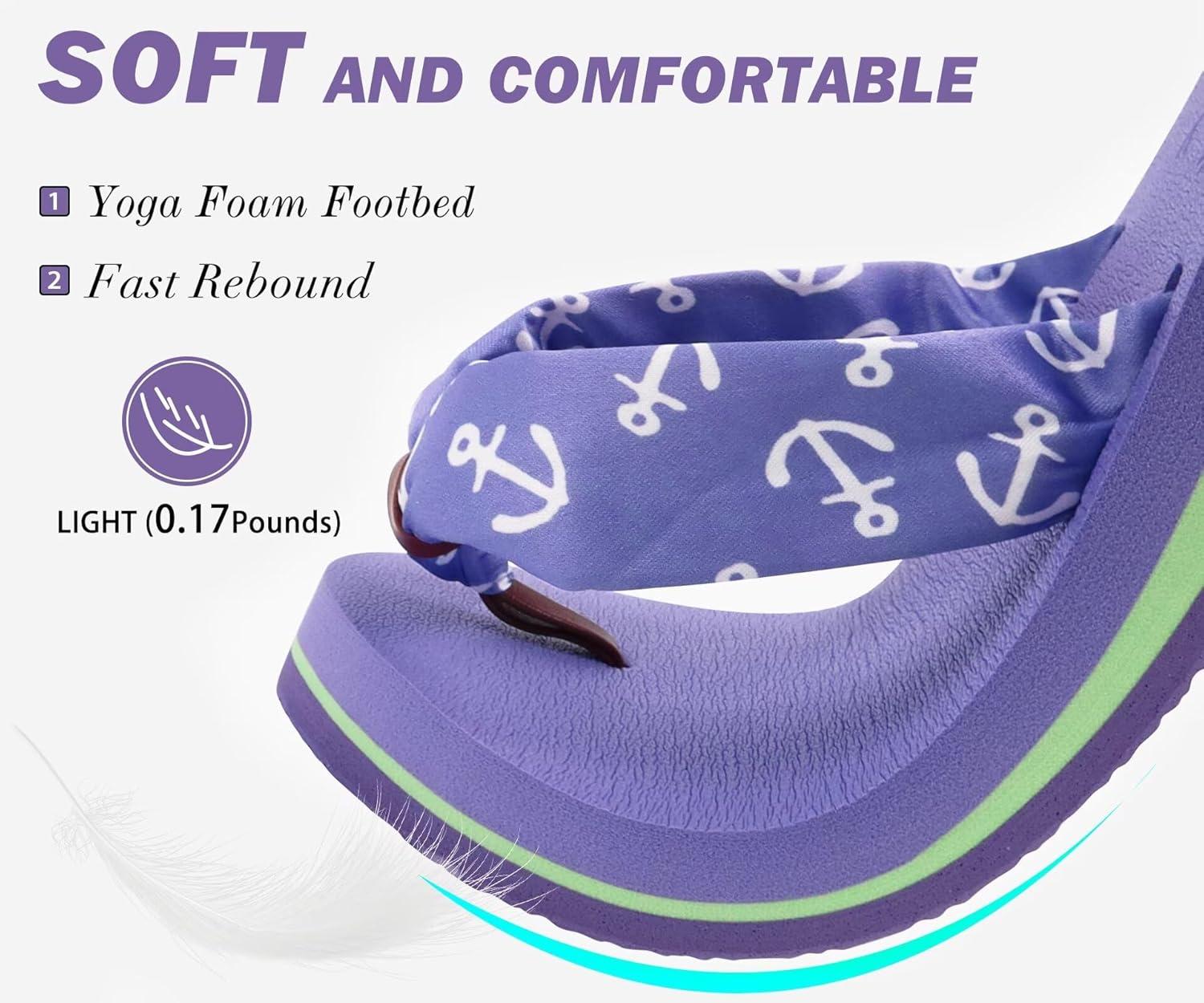 KuaiLu Flip Flops Women Yoga Foam Ladies Comfort Arch Support Summer Beach Casual Thong Sandals(Purple)