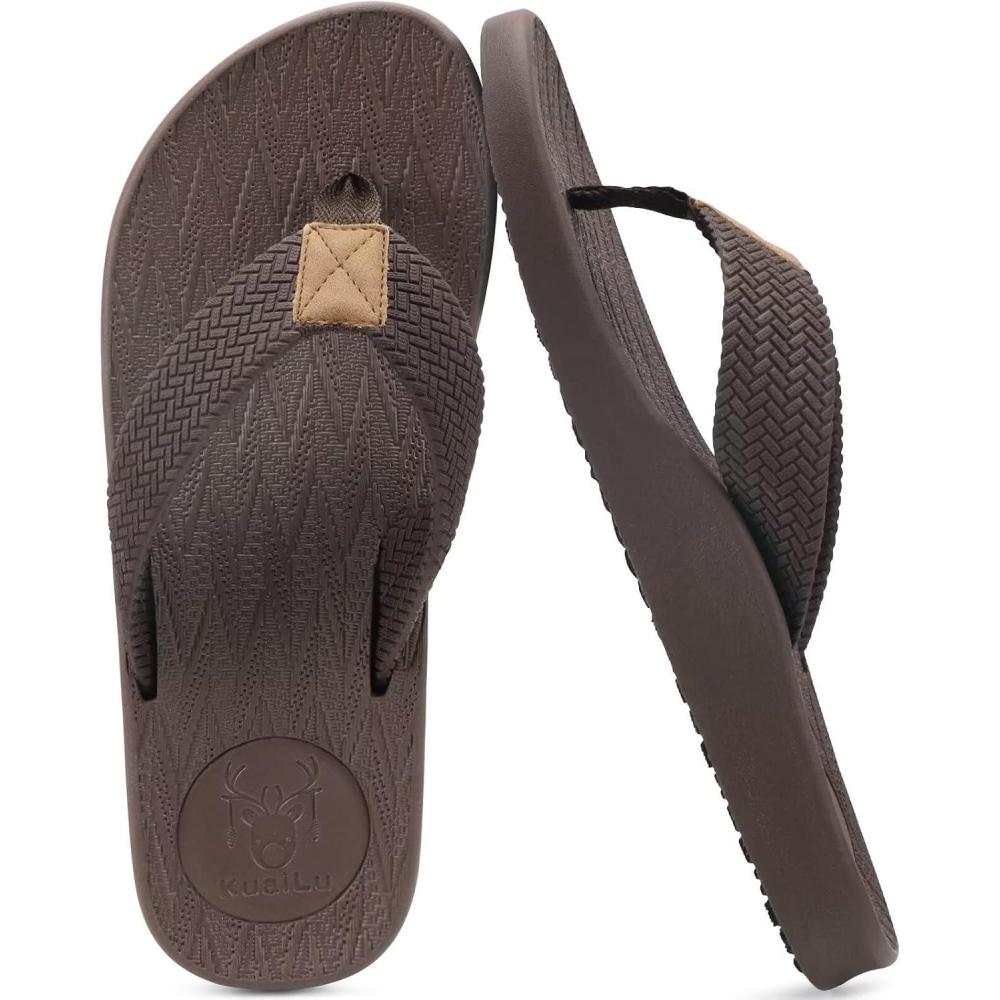 KuaiLu Mens Flip Flops Arch Support Comfortable Summer Beach Thong Sandals Yoga Foam Cushion Slip on Slippers(Dbrown)
