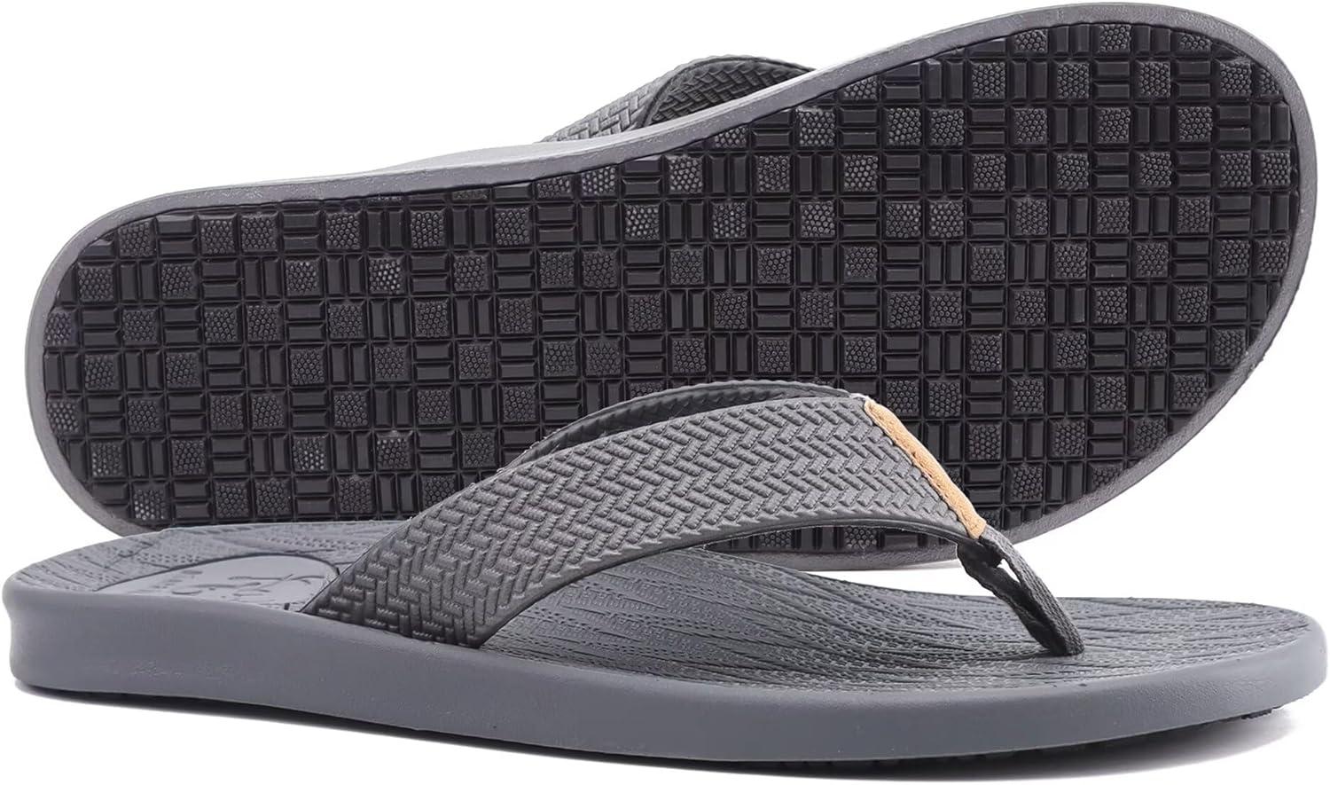 KuaiLu Mens Flip Flops Arch Support Comfortable Summer Beach Thong Sandals Yoga Foam Cushion Slip on Slippers(Grey)