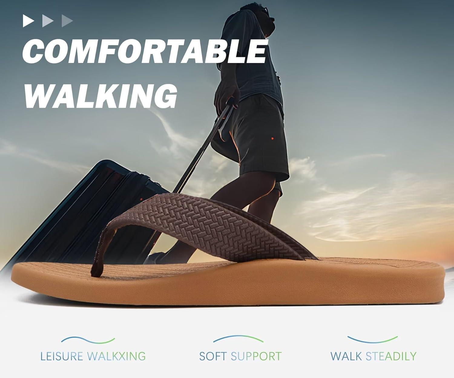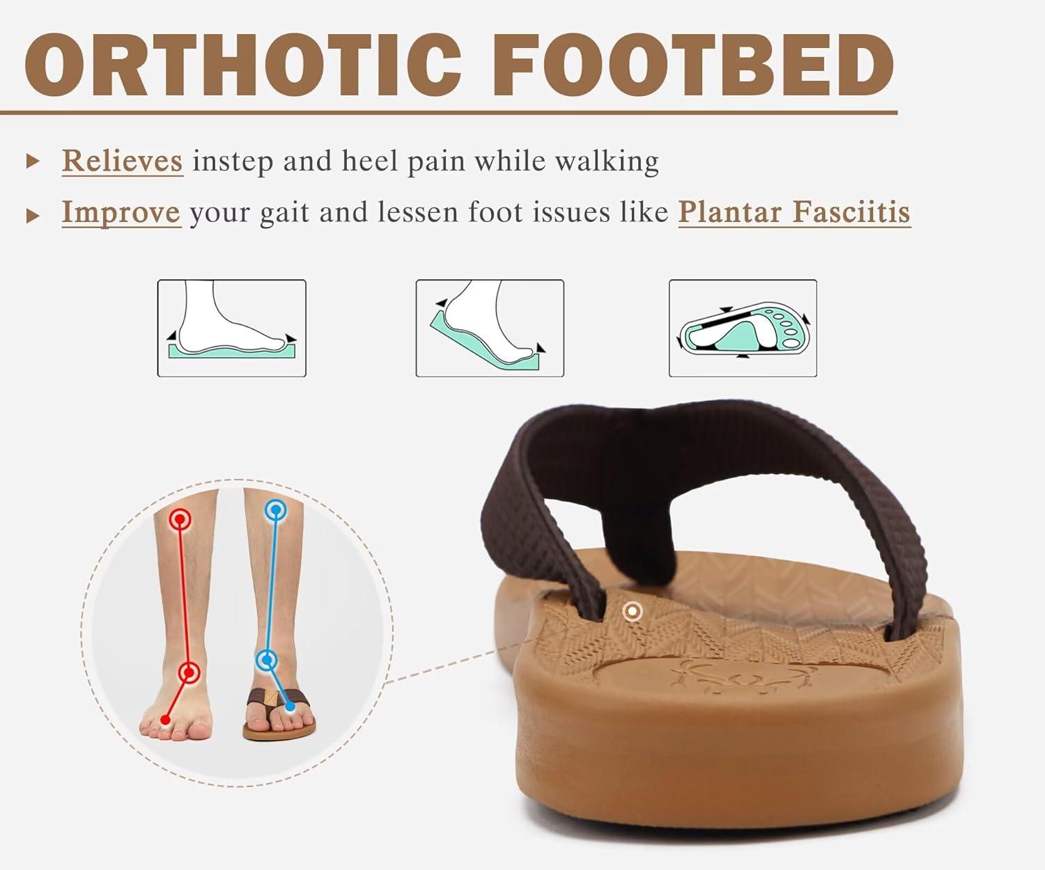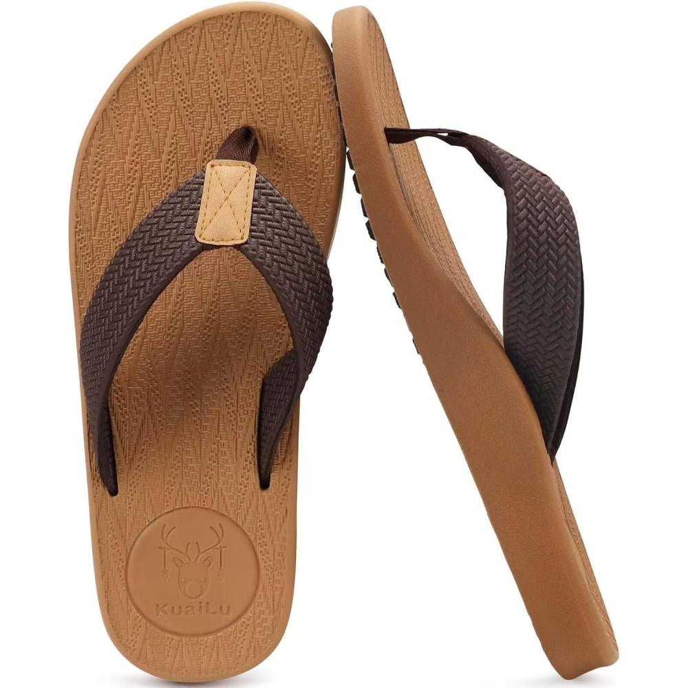 KuaiLu Mens Flip Flops Arch Support Comfortable Summer Beach Thong Sandals Yoga Foam Cushion Slip on Slippers(Khaki)