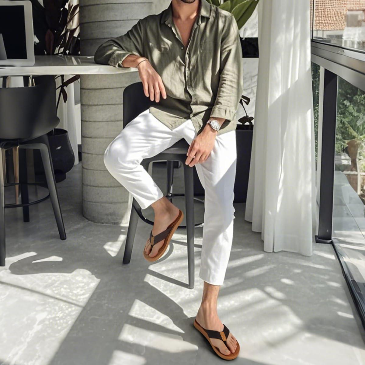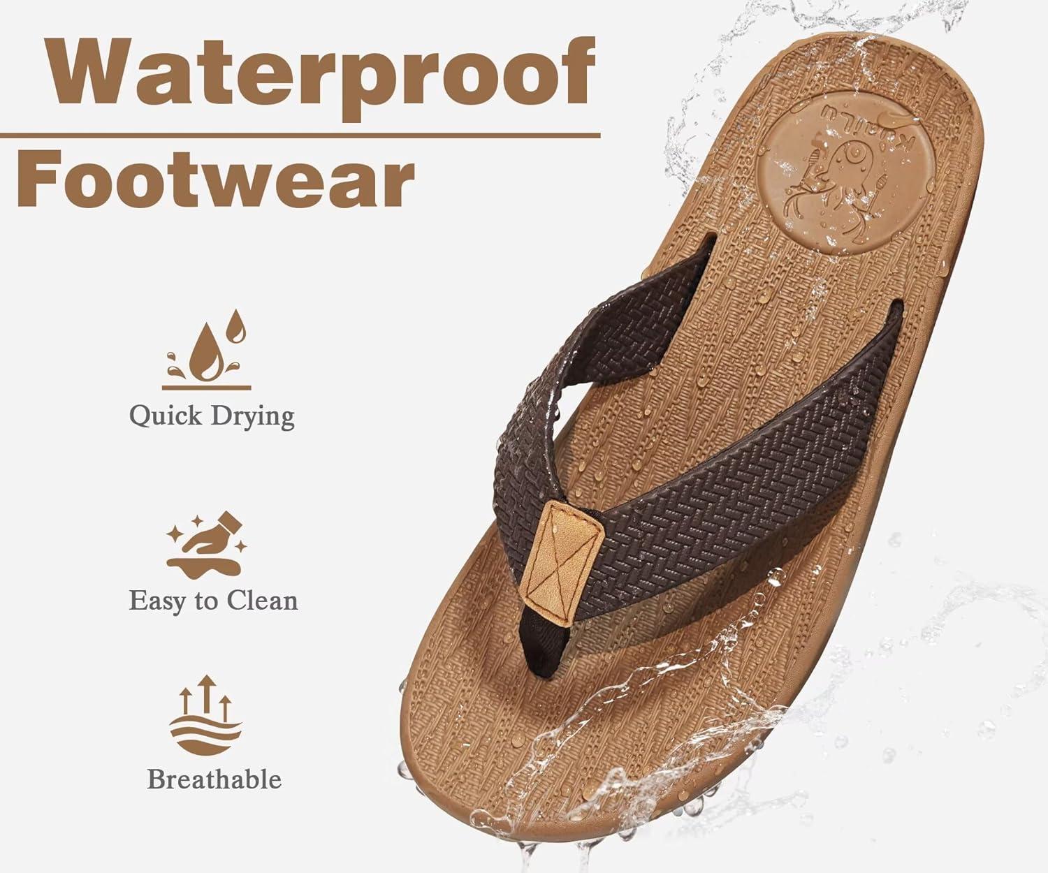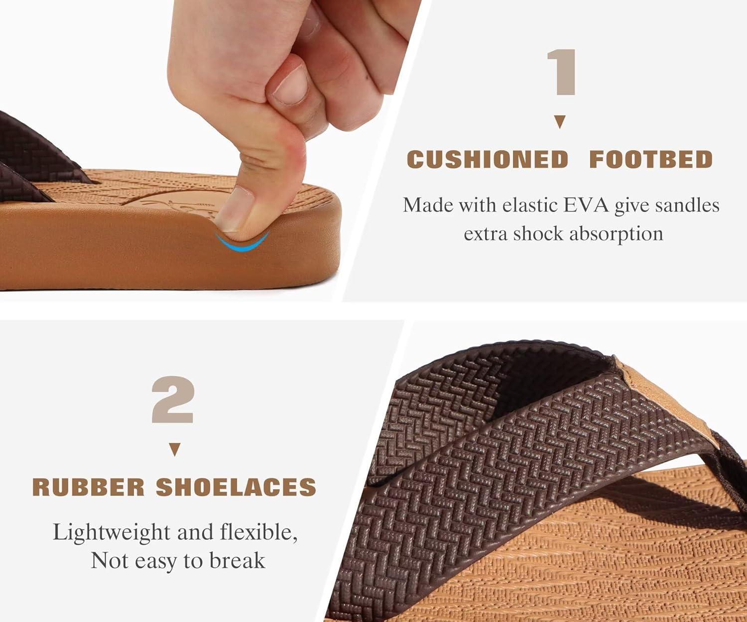 KuaiLu Mens Flip Flops Arch Support Comfortable Summer Beach Thong Sandals Yoga Foam Cushion Slip on Slippers(Khaki)