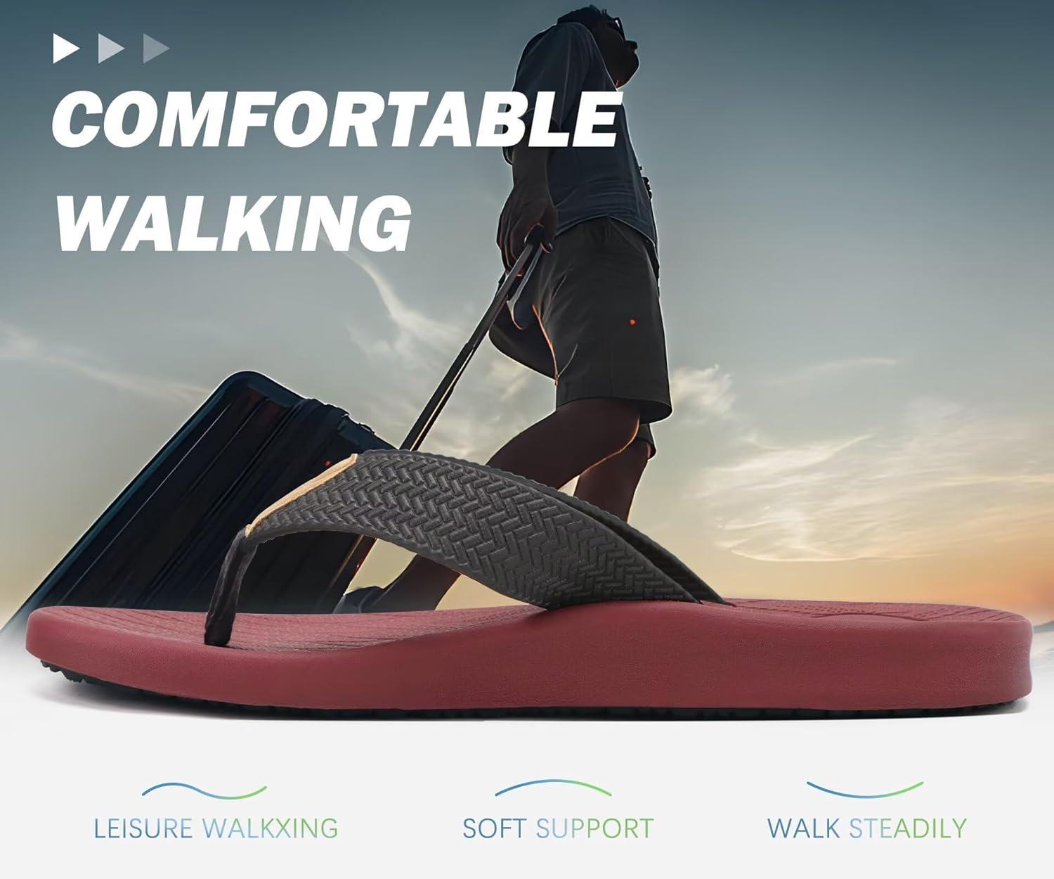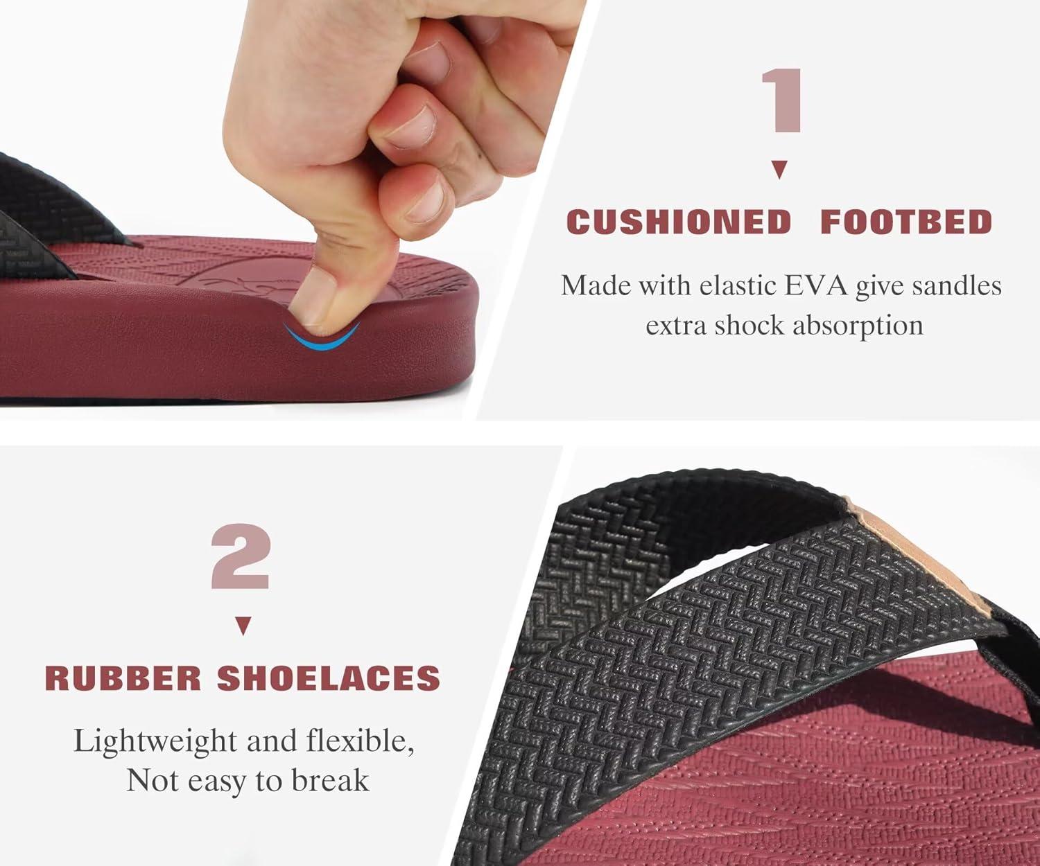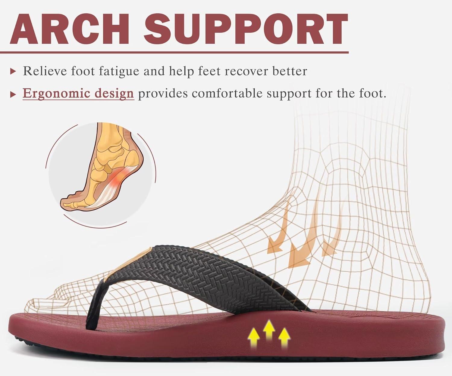 KuaiLu Mens Flip Flops Arch Support Comfortable Summer Beach Thong Sandals Yoga Foam Cushion Slip on Slippers(Wine)