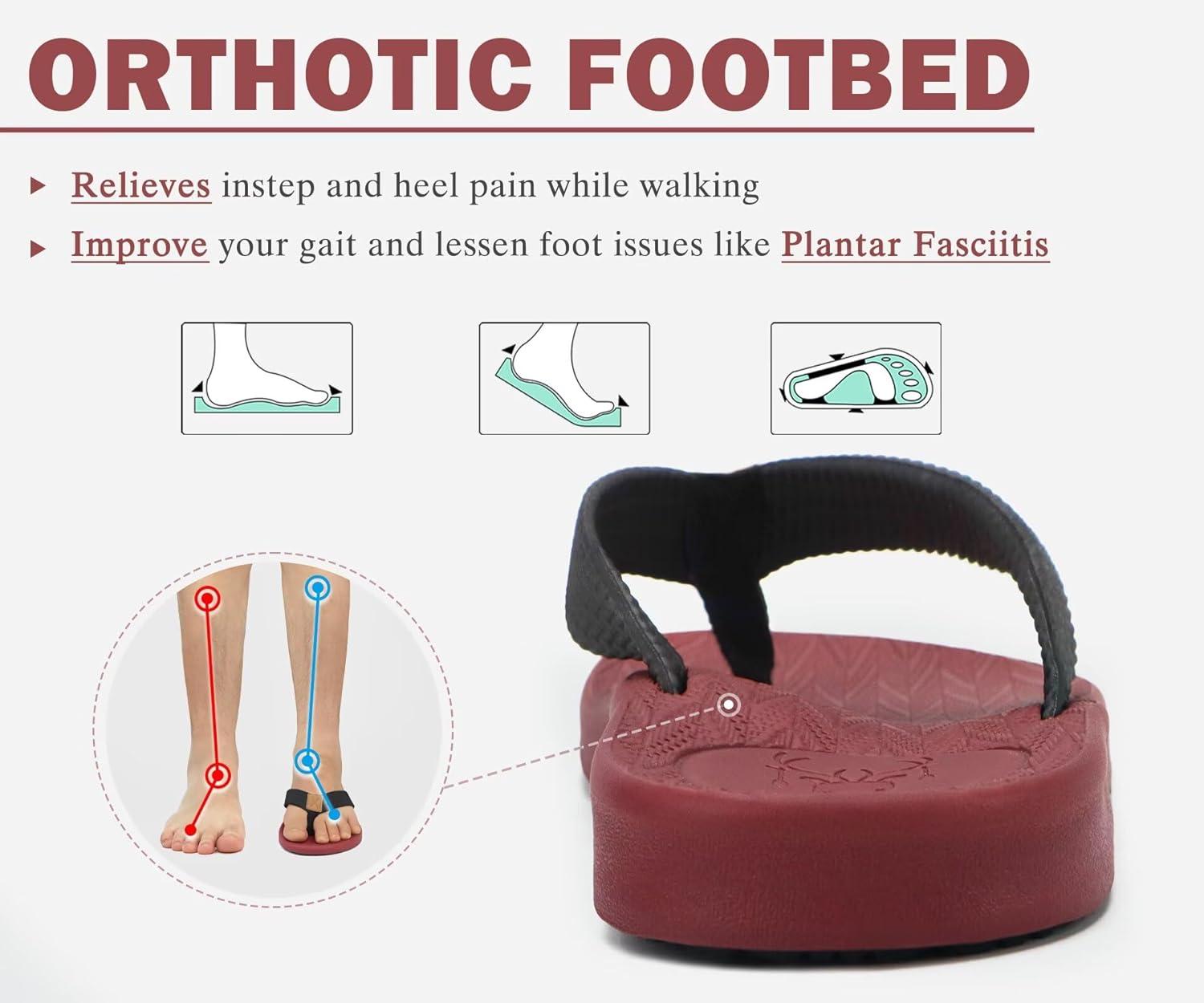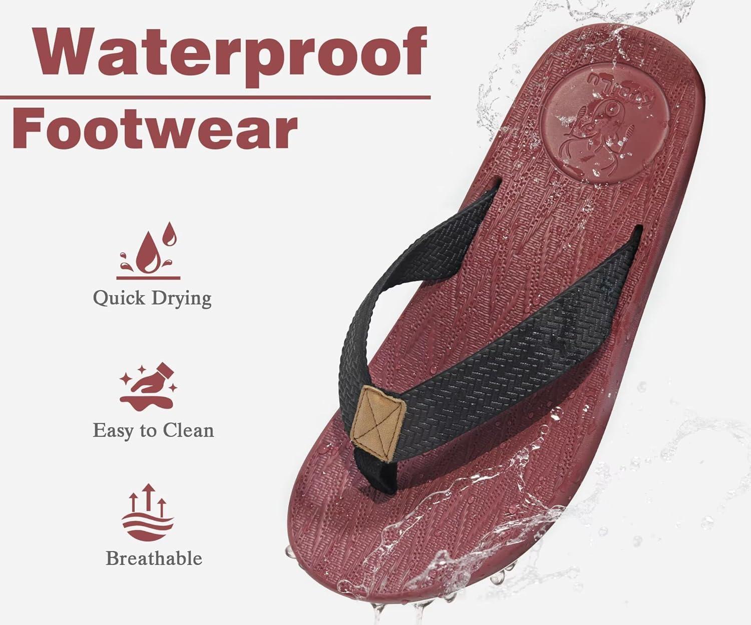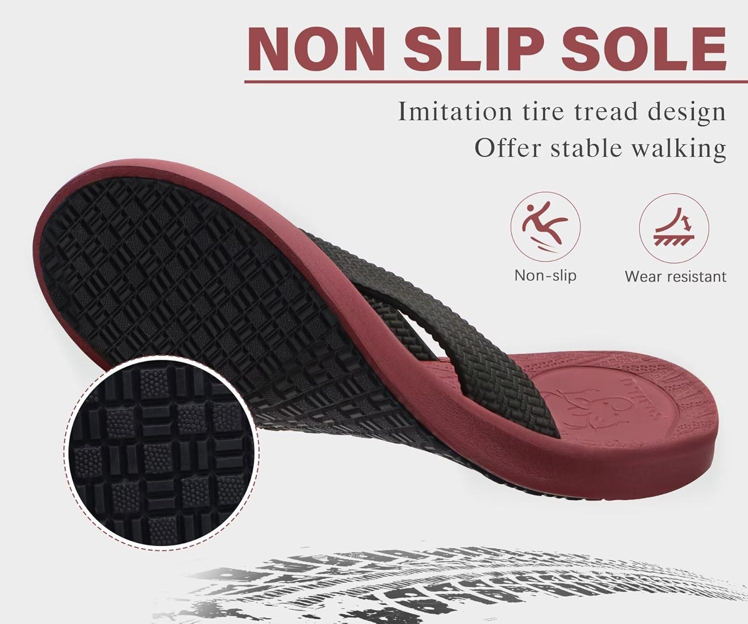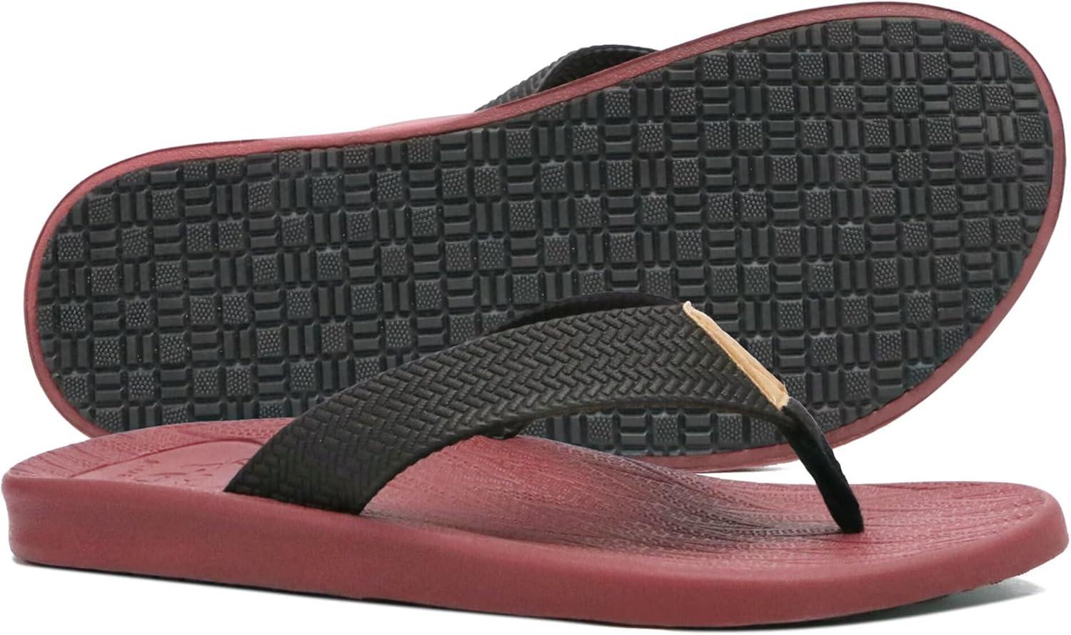 KuaiLu Mens Flip Flops Arch Support Comfortable Summer Beach Thong Sandals Yoga Foam Cushion Slip on Slippers(Wine)