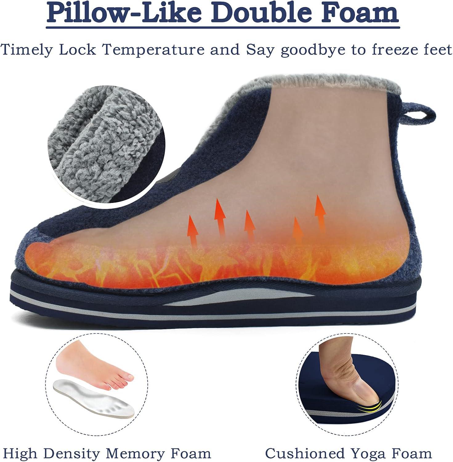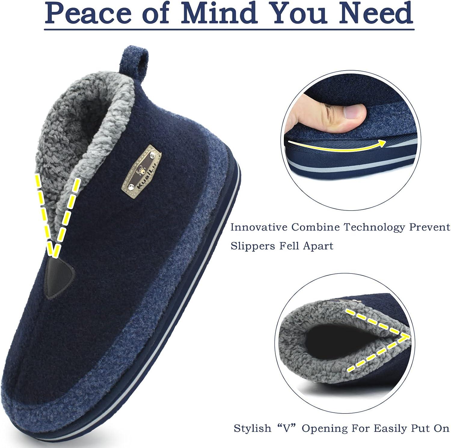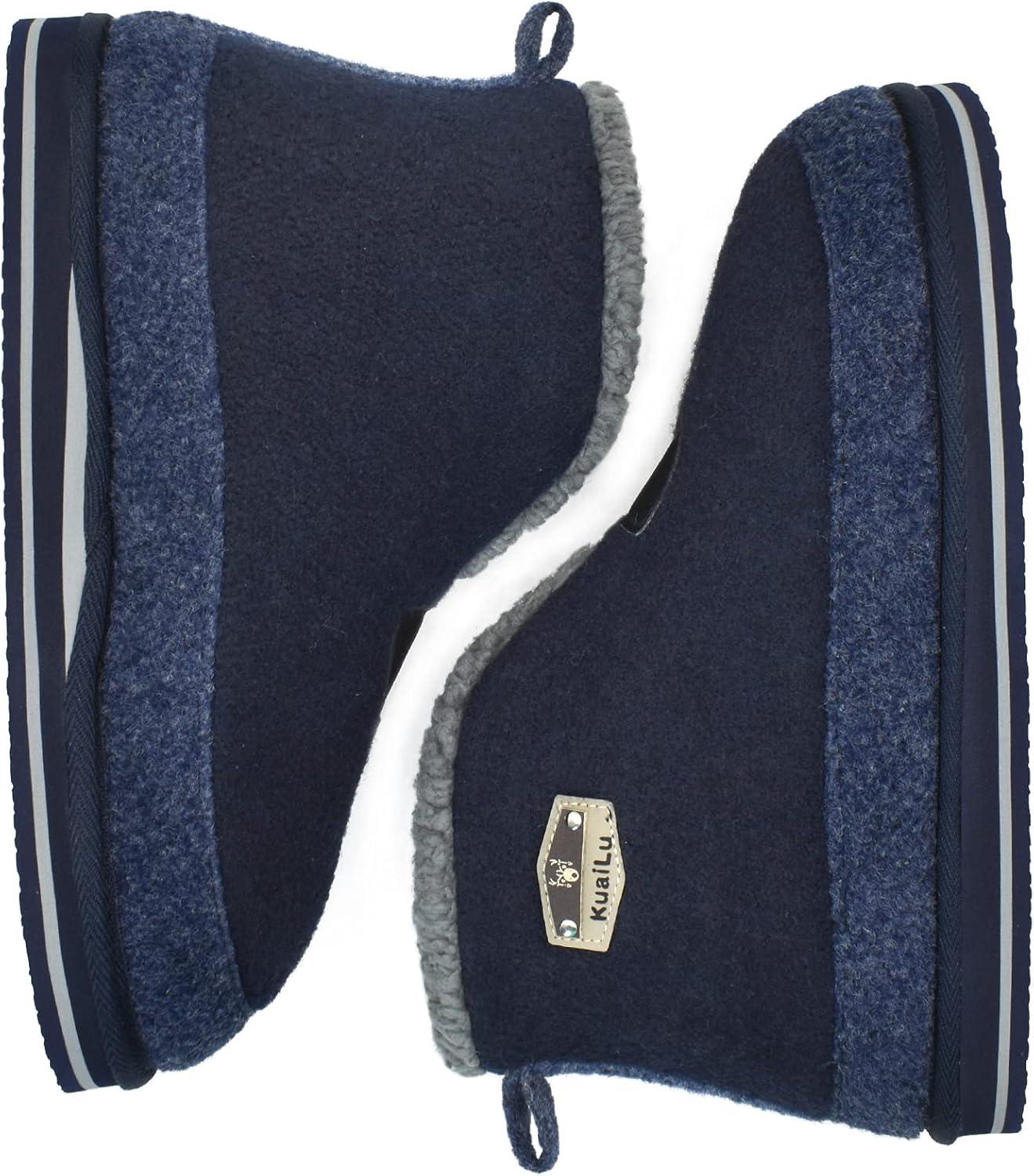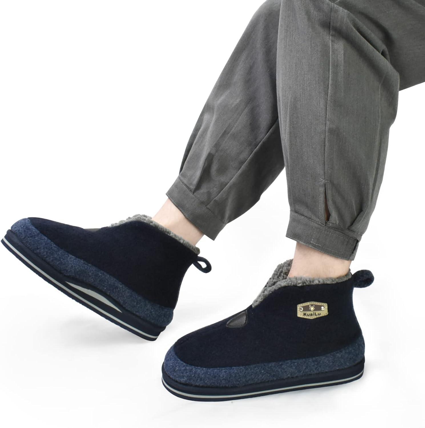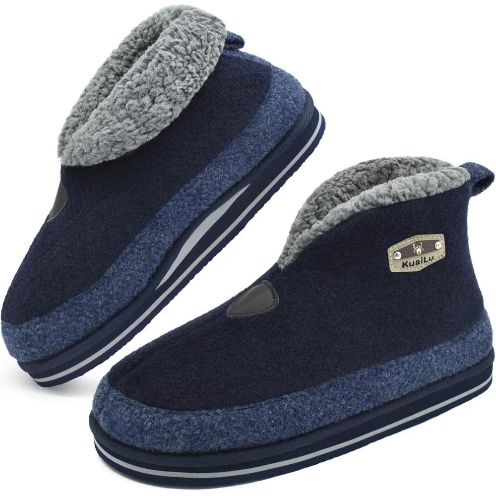 KuaiLu Mens House Slippers Booties Cozy Memory Foam Boots Warm Plush Lining Winter Felt Home Bedroom Slipper Socks Indoor Outdoor Non-Slip Shoes(Blue)