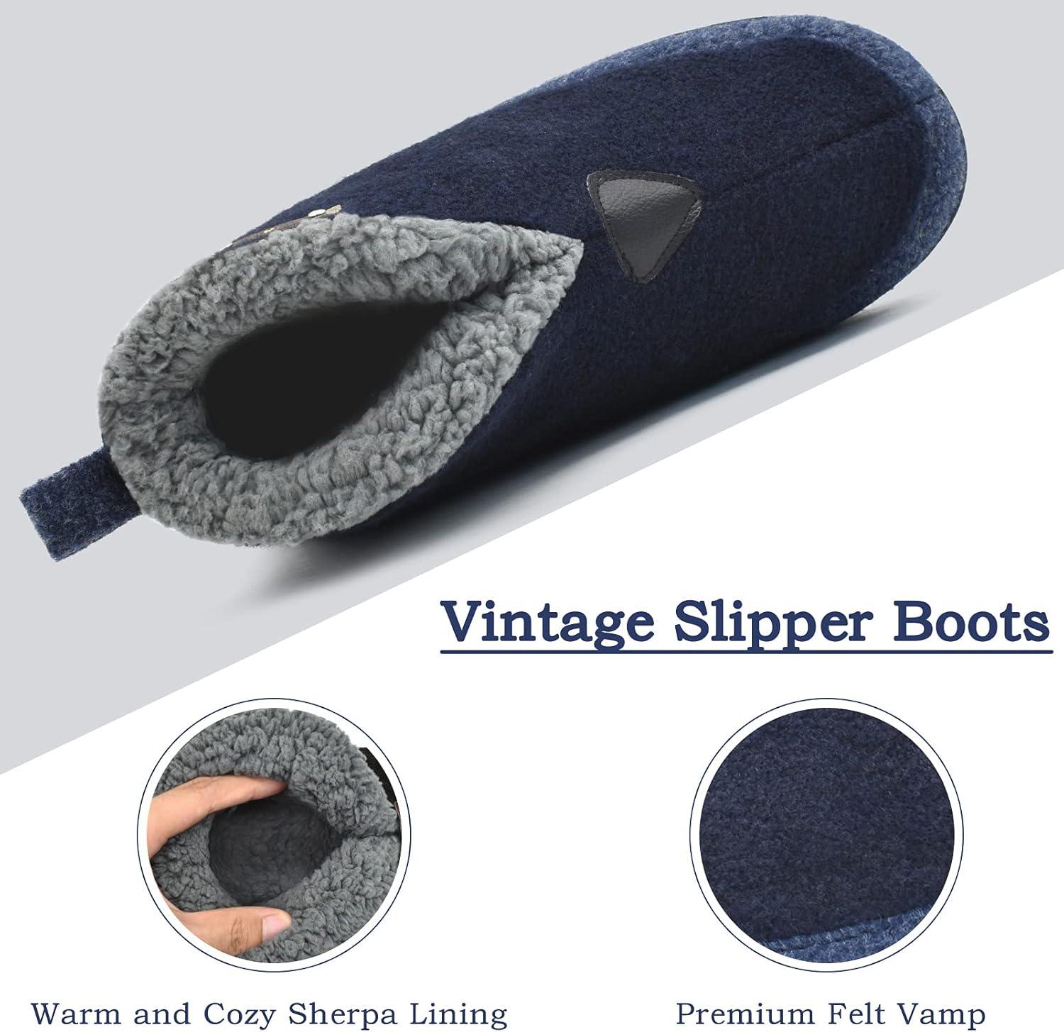 KuaiLu Mens House Slippers Booties Cozy Memory Foam Boots Warm Plush Lining Winter Felt Home Bedroom Slipper Socks Indoor Outdoor Non-Slip Shoes(Brown)