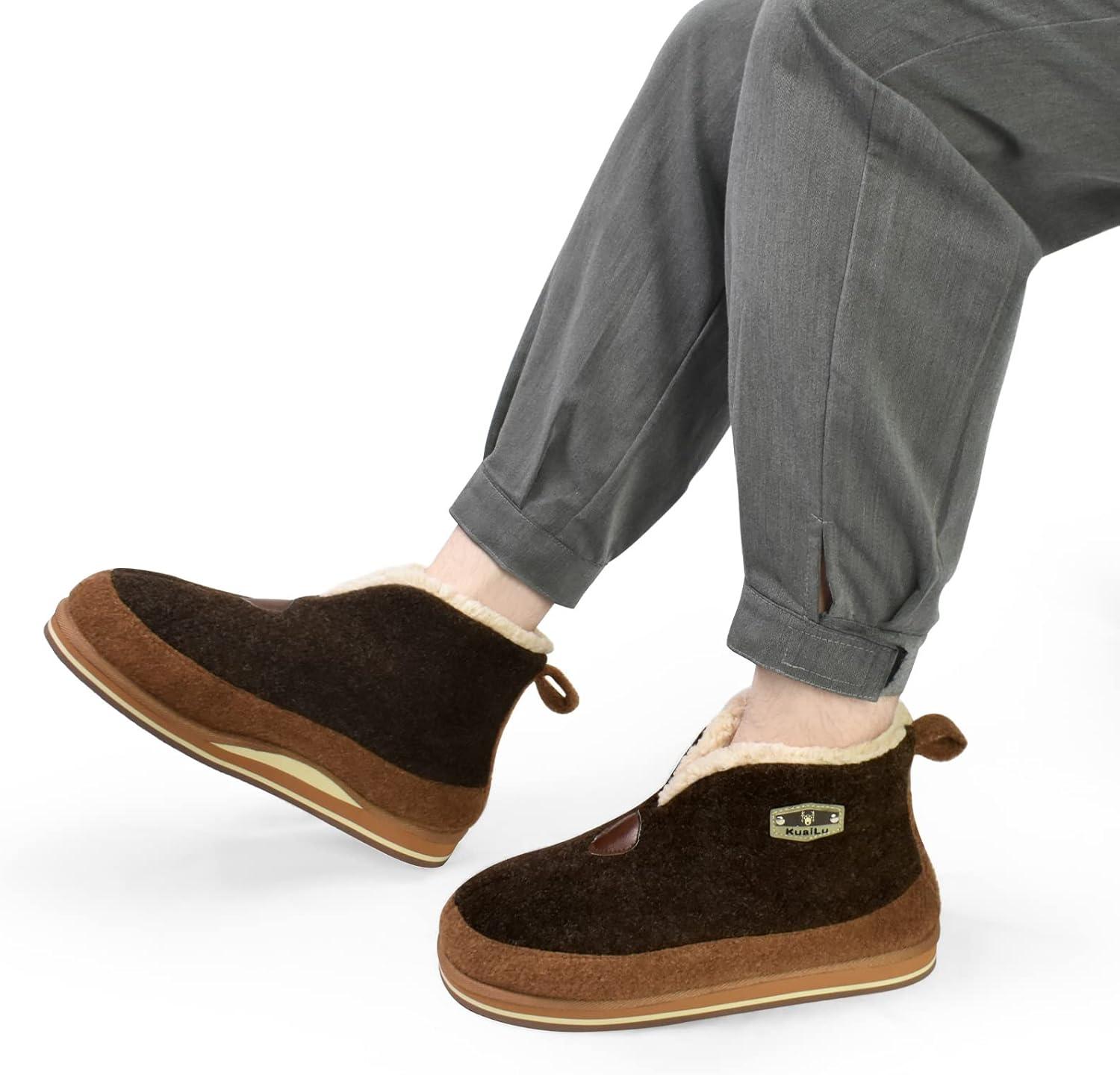 Get up to 60% off on KuaiLu Mens House Slippers Booties Cozy Memory Foam Boots Warm Plush Lining Winter Felt Home Bedroom Slipper Socks Indoor Outdoor Non-Slip Shoes(Brown) styles during our winter sale event.