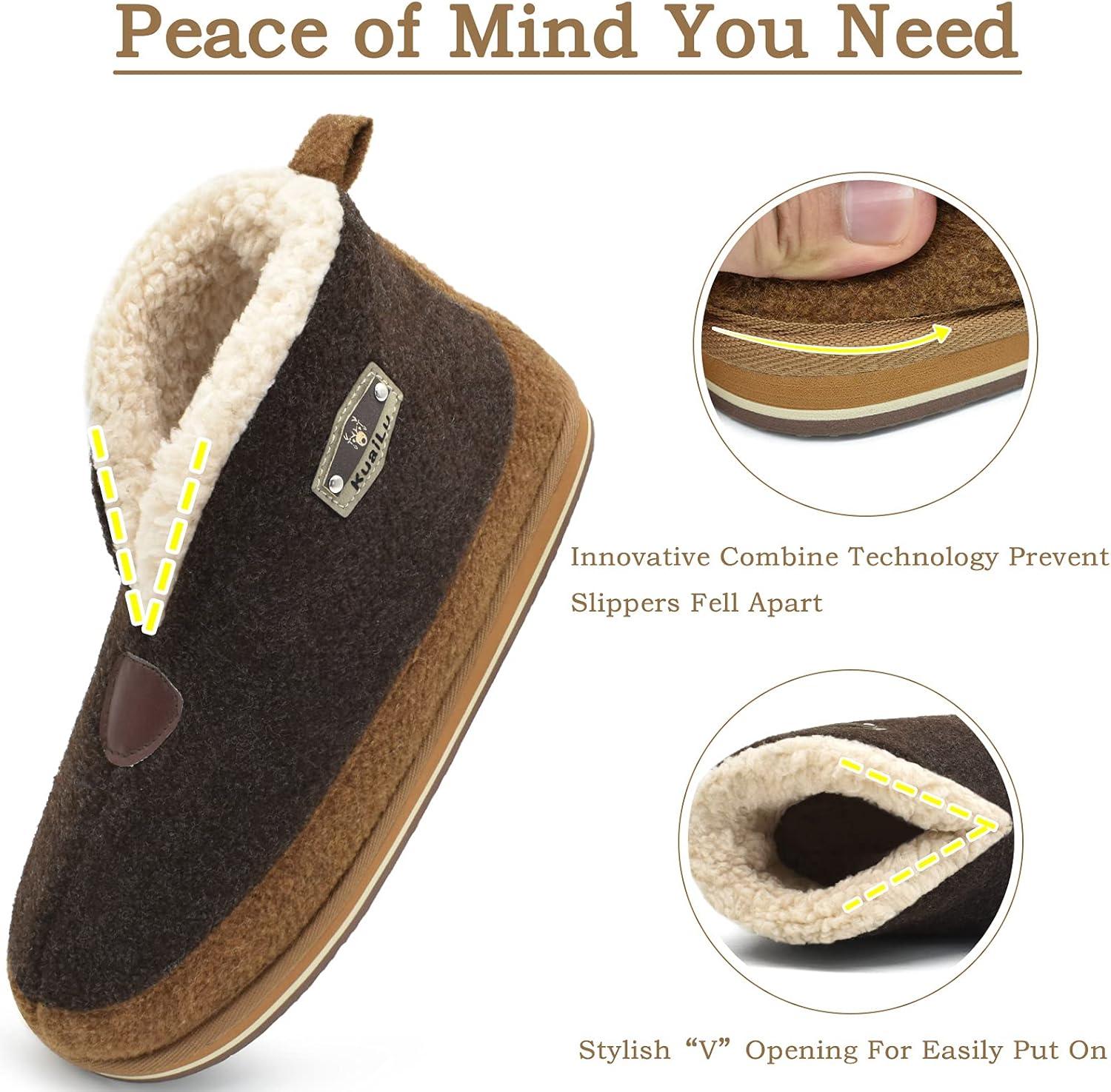 KuaiLu Mens House Slippers Booties Cozy Memory Foam Boots Warm Plush Lining Winter Felt Home Bedroom Slipper Socks Indoor Outdoor Non-Slip Shoes(Brown)