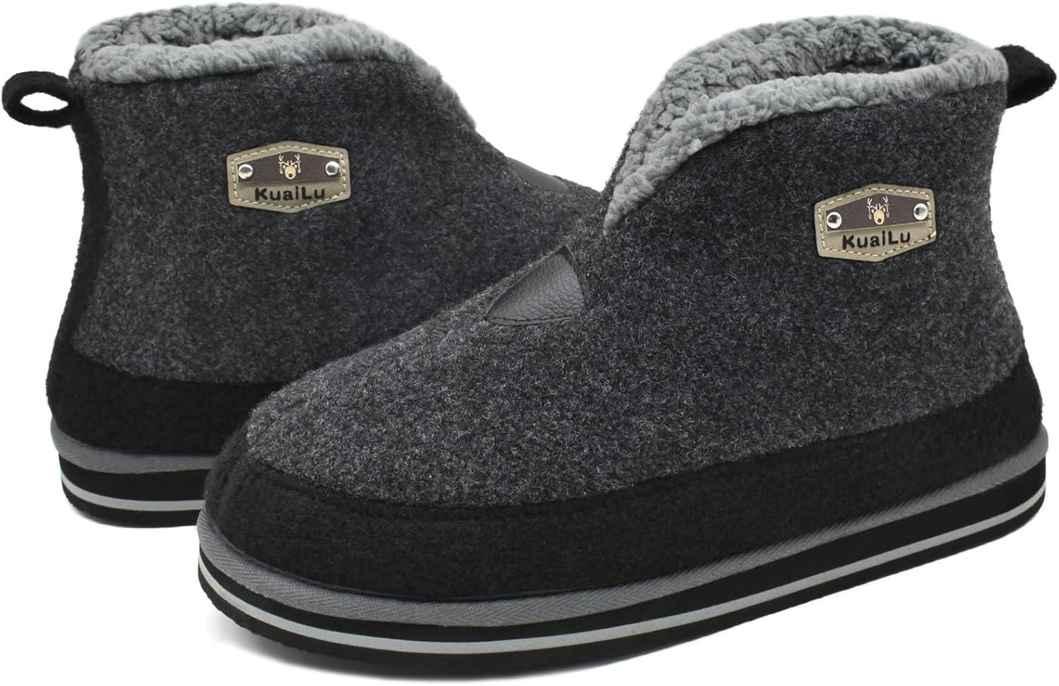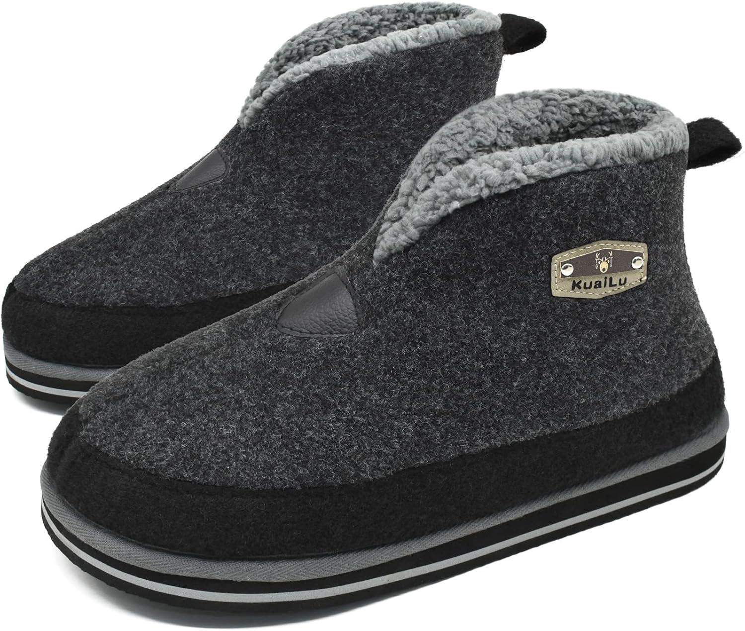 KuaiLu Mens House Slippers Booties Cozy Memory Foam Boots Warm Plush Lining Winter Felt Home Bedroom Slipper Socks Indoor Outdoor Non-Slip Shoes(Grey)