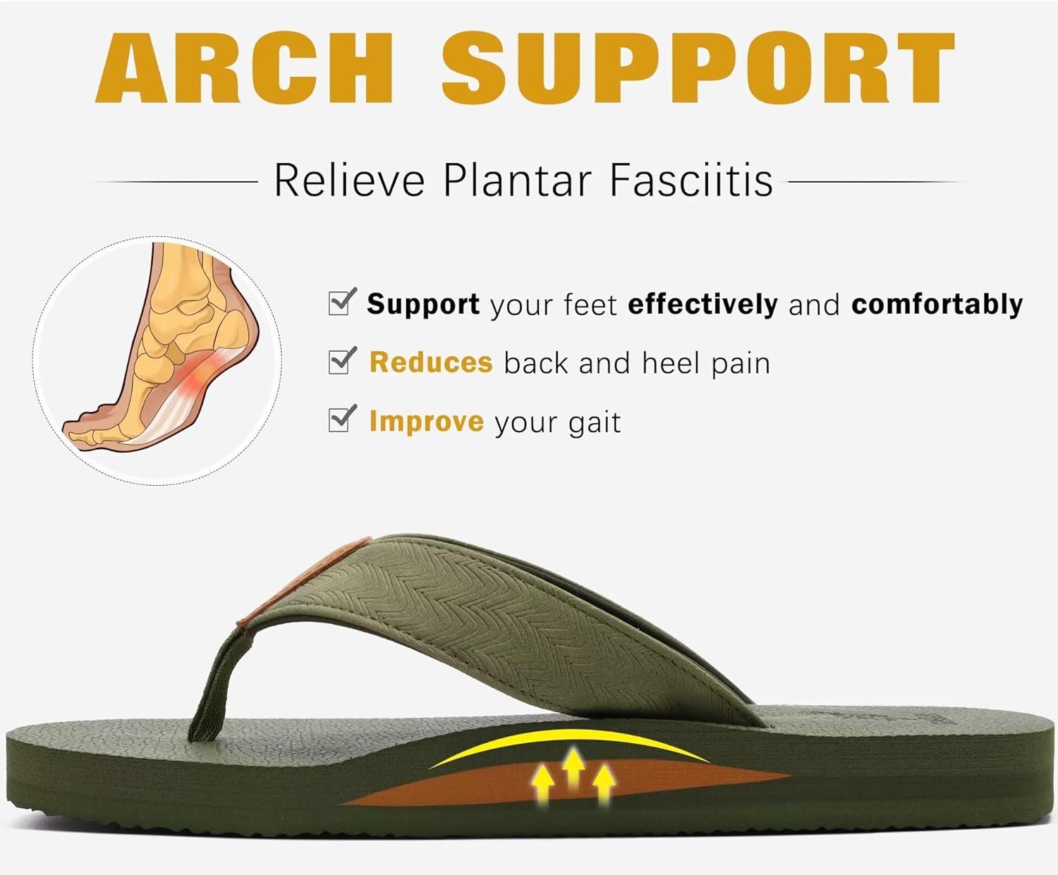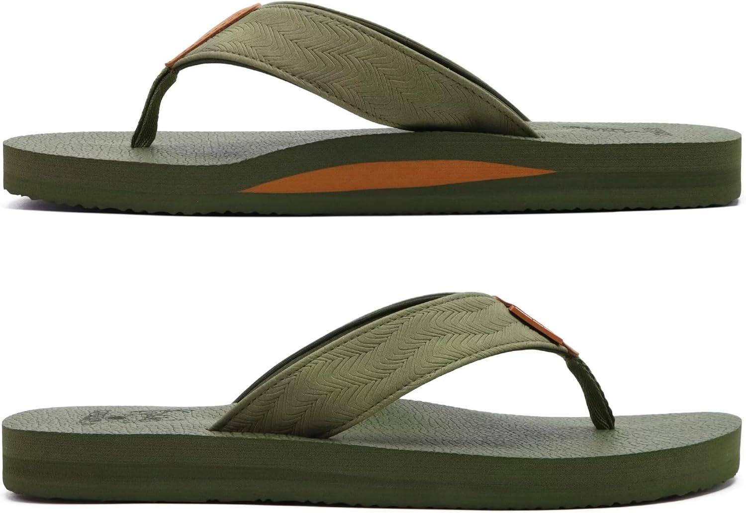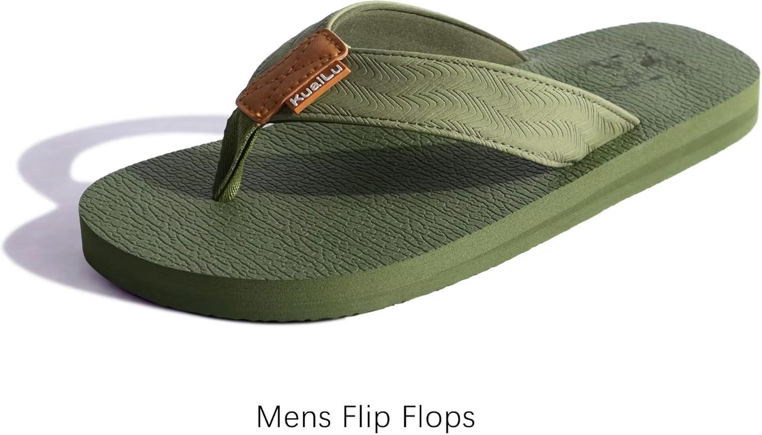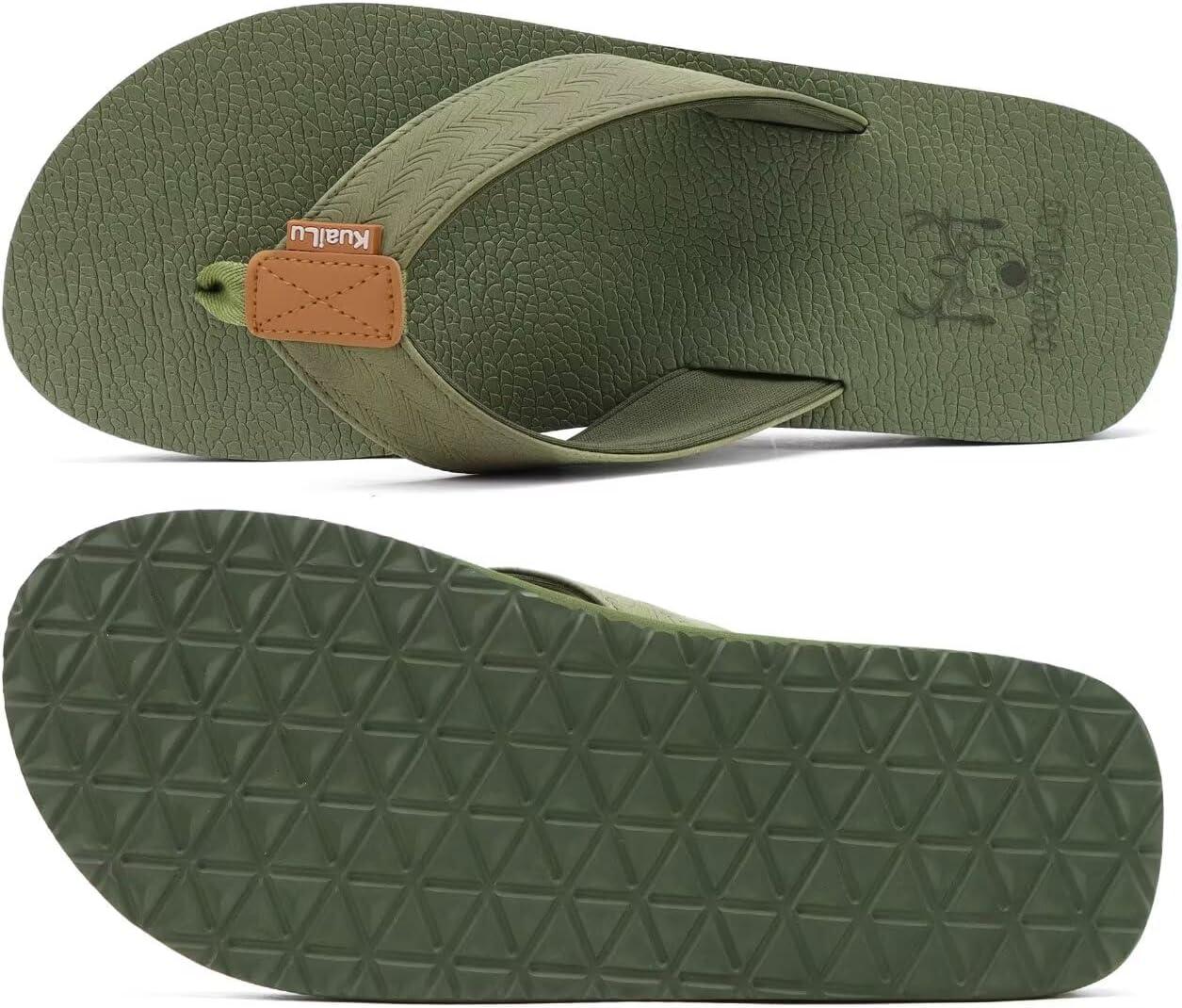 KuaiLu Men’s Yoga Mat Leather Flip Flops with Arch Support Comfortable Cushion Walking Thong Sandals Slip On Indoor Outdoor(Army Green)