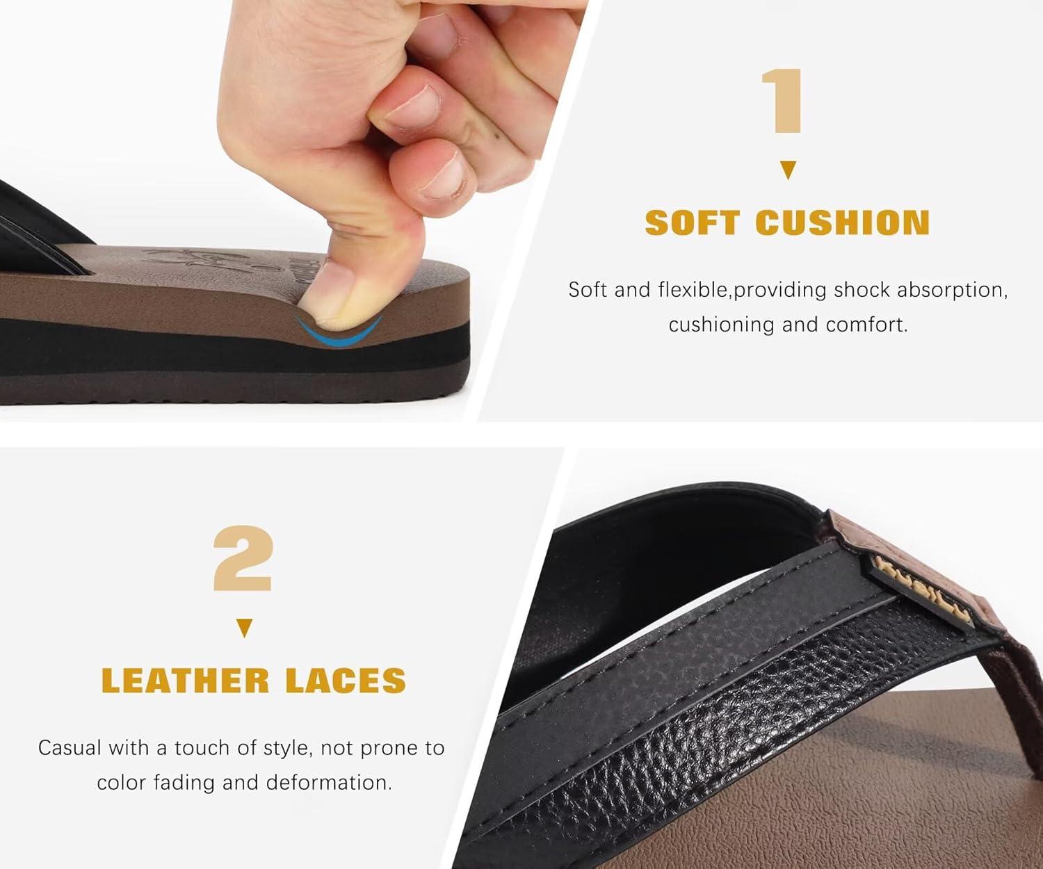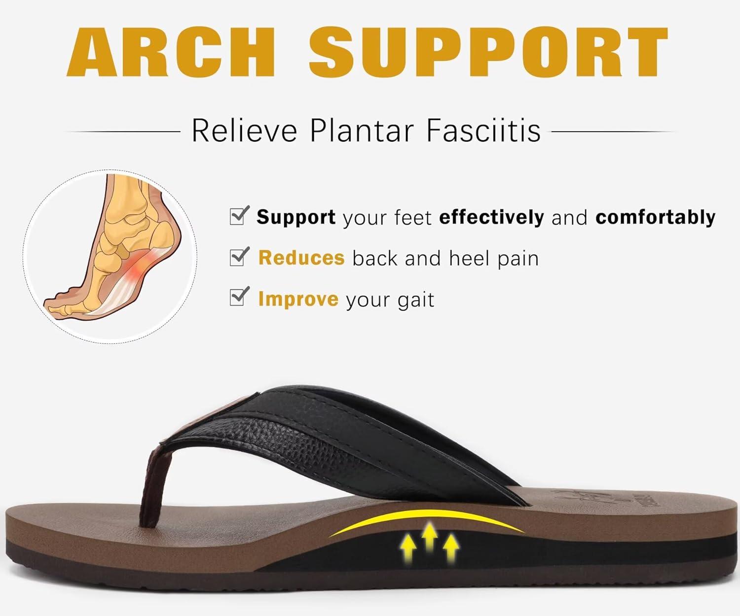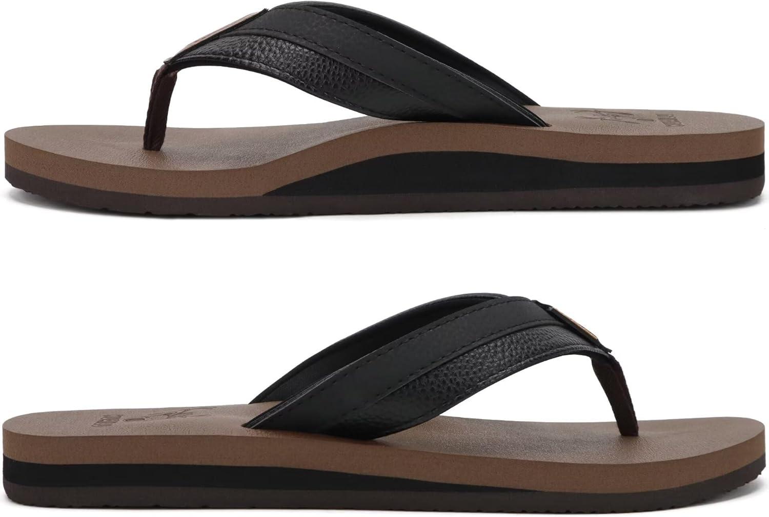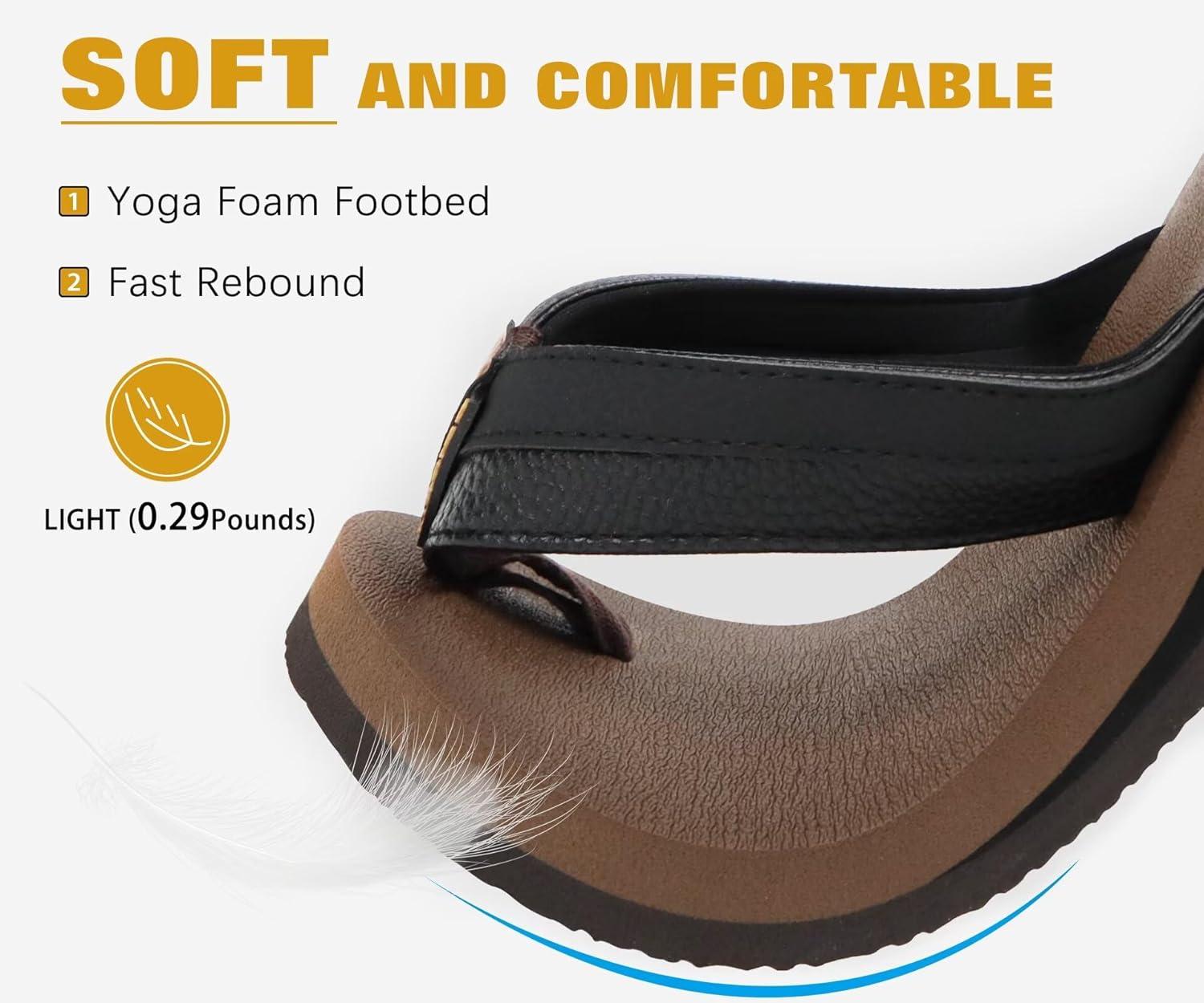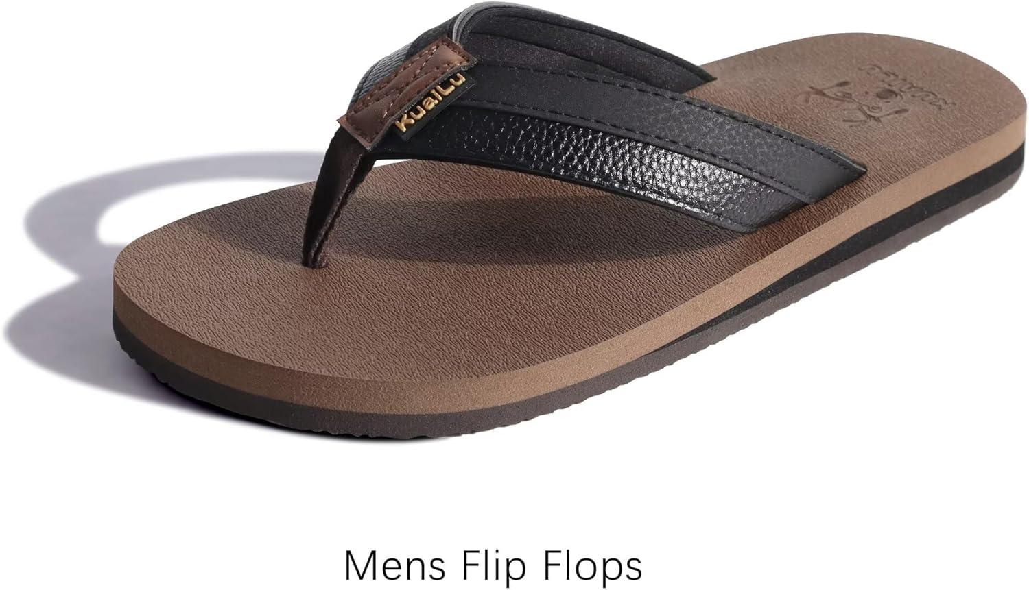 KuaiLu Men’s Yoga Mat Leather Flip Flops with Arch Support Comfortable Cushion Walking Thong Sandals Slip On Indoor Outdoor(Black Brown)