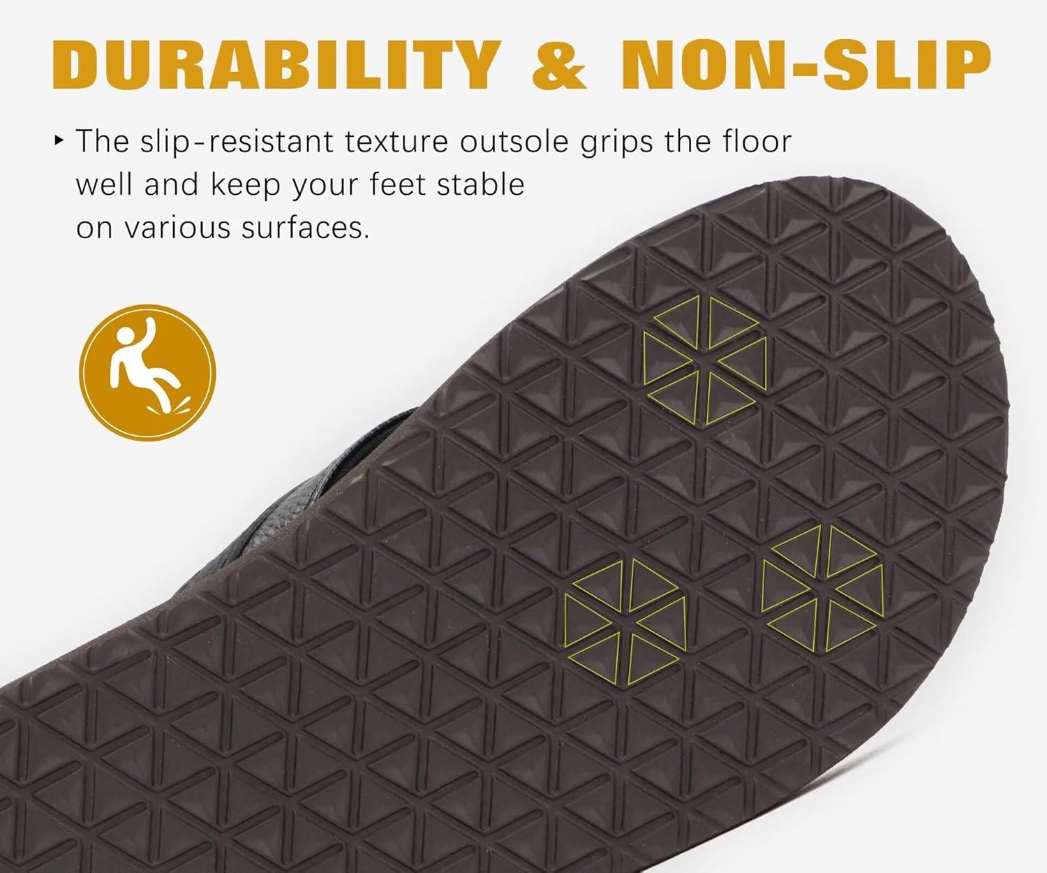 KuaiLu Men’s Yoga Mat Leather Flip Flops with Arch Support Comfortable Cushion Walking Thong Sandals Slip On Indoor Outdoor(Black Grey)