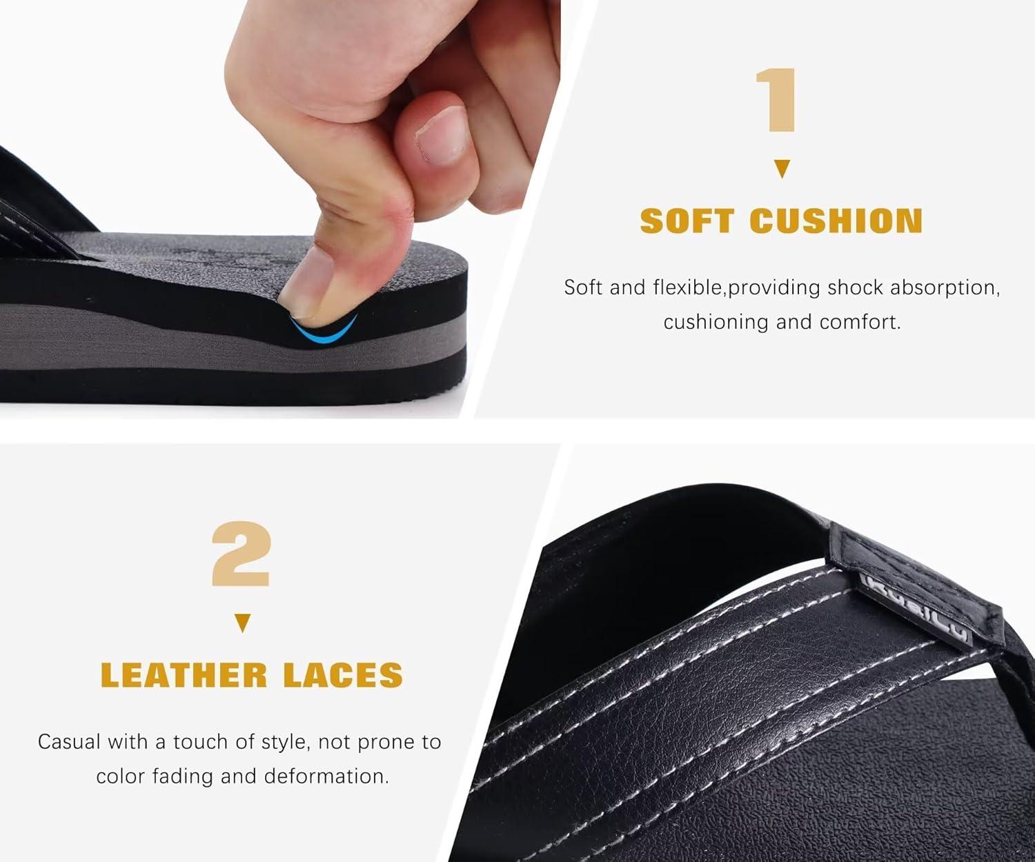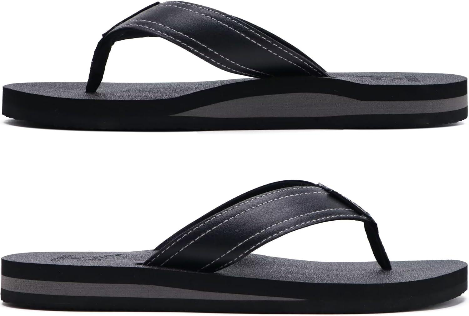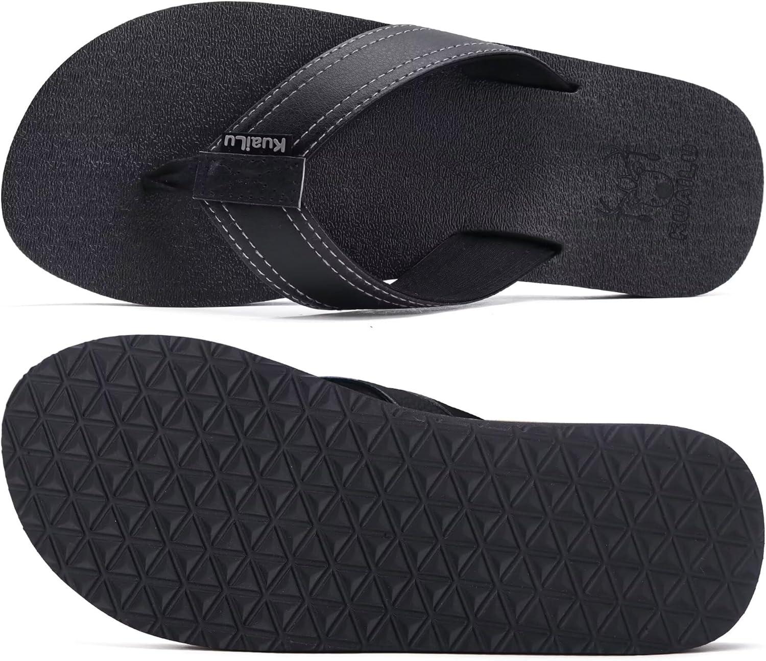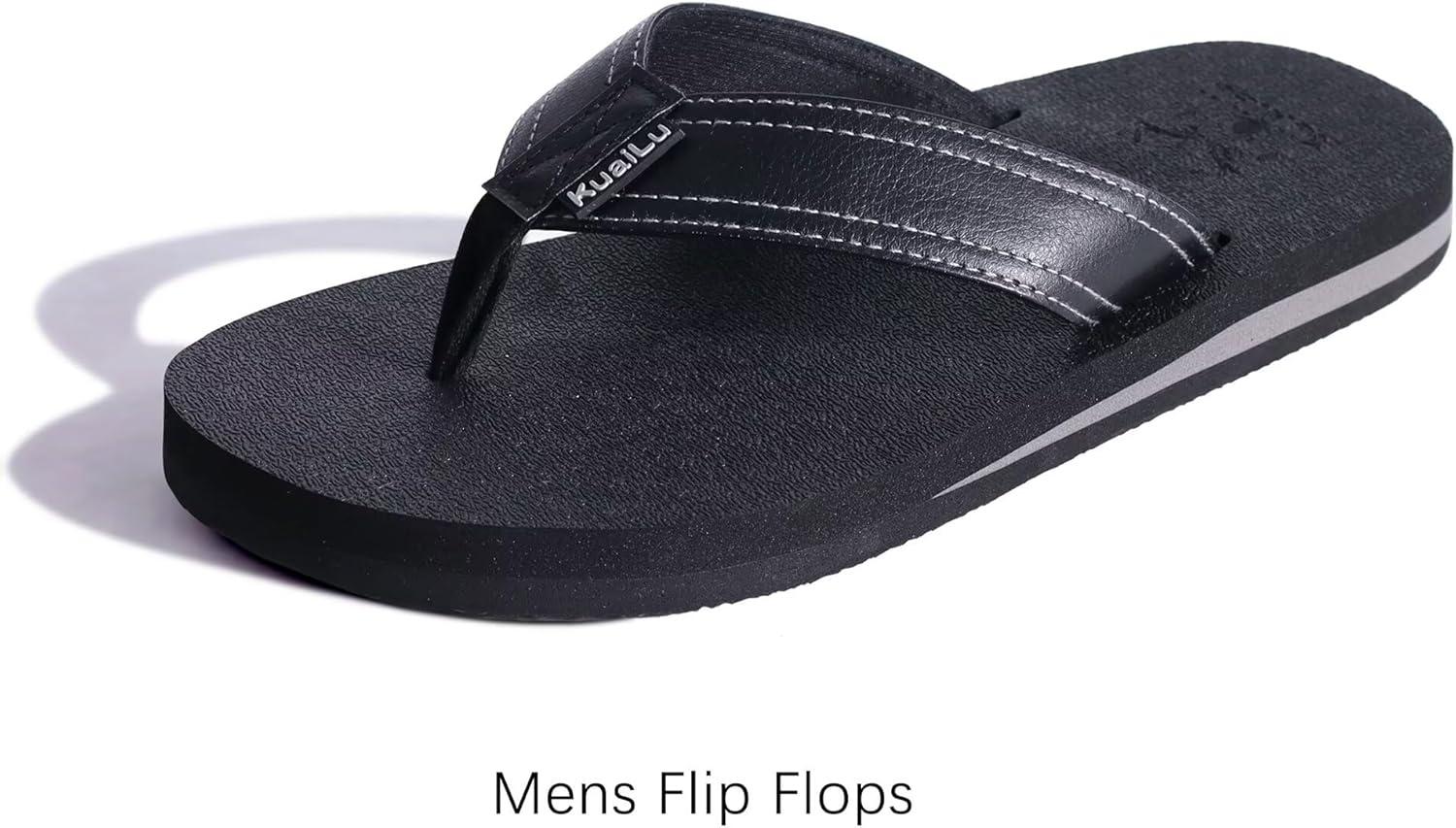 KuaiLu Men’s Yoga Mat Leather Flip Flops with Arch Support Comfortable Cushion Walking Thong Sandals Slip On Indoor Outdoor(Black)
