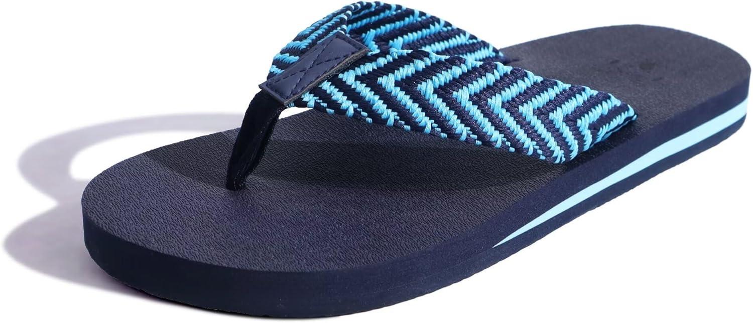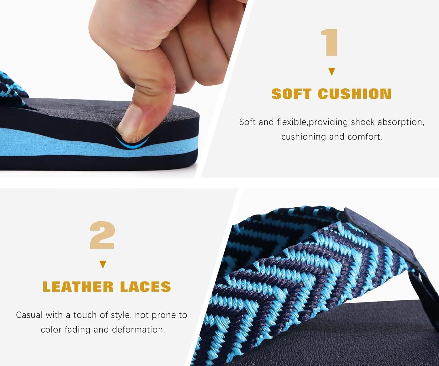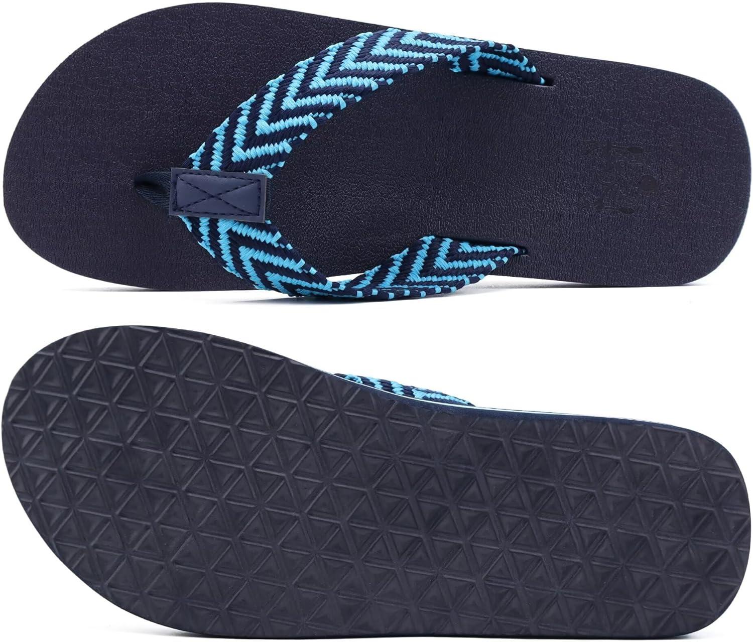 KuaiLu Men’s Yoga Mat Leather Flip Flops with Arch Support Comfortable Cushion Walking Thong Sandals Slip On Indoor Outdoor(Bright Blue)