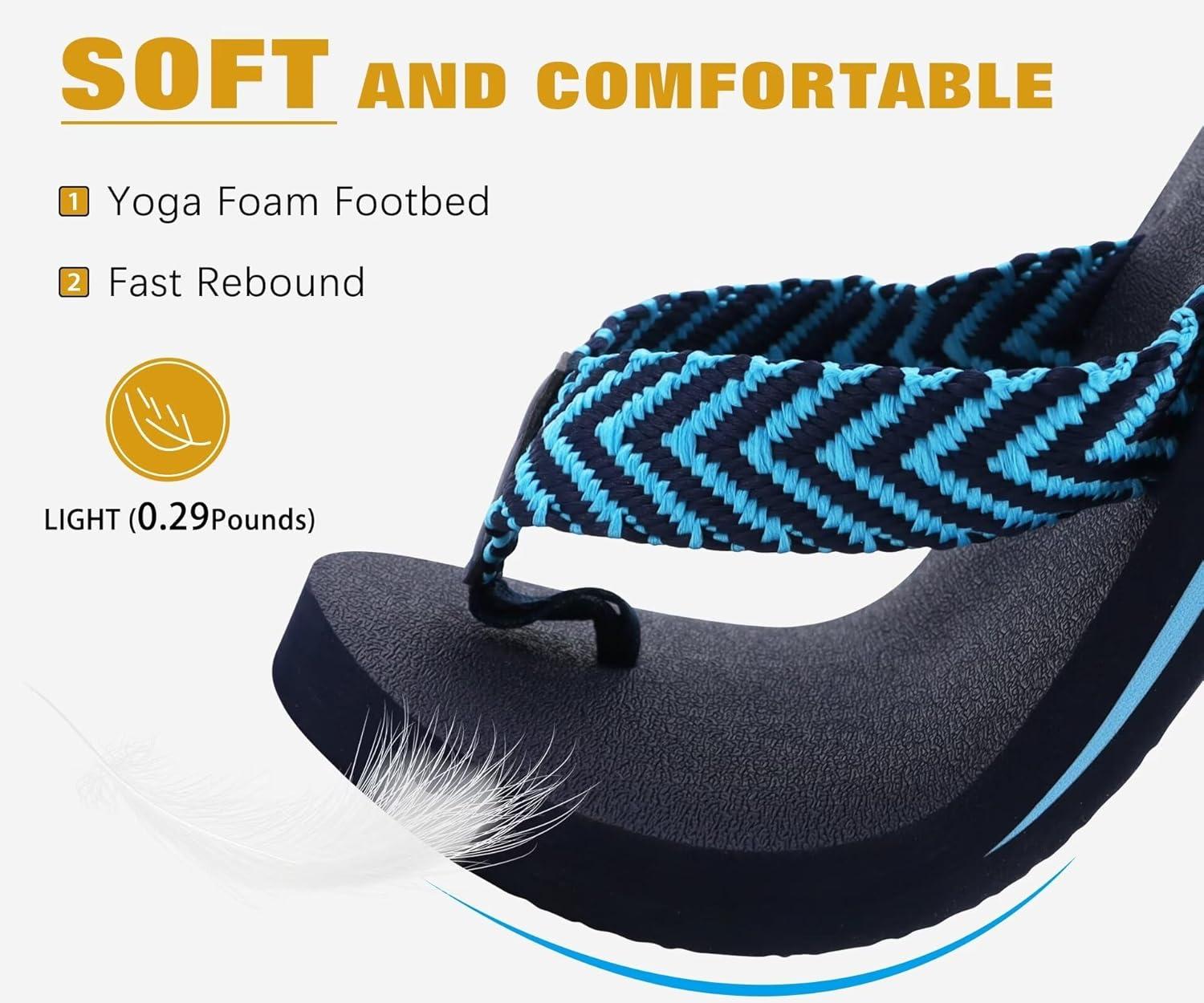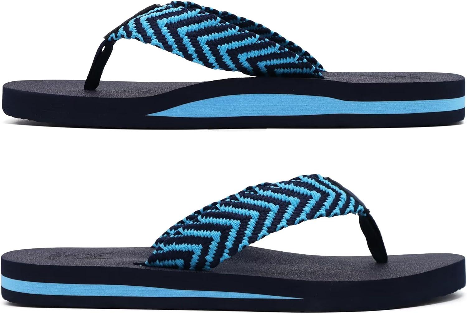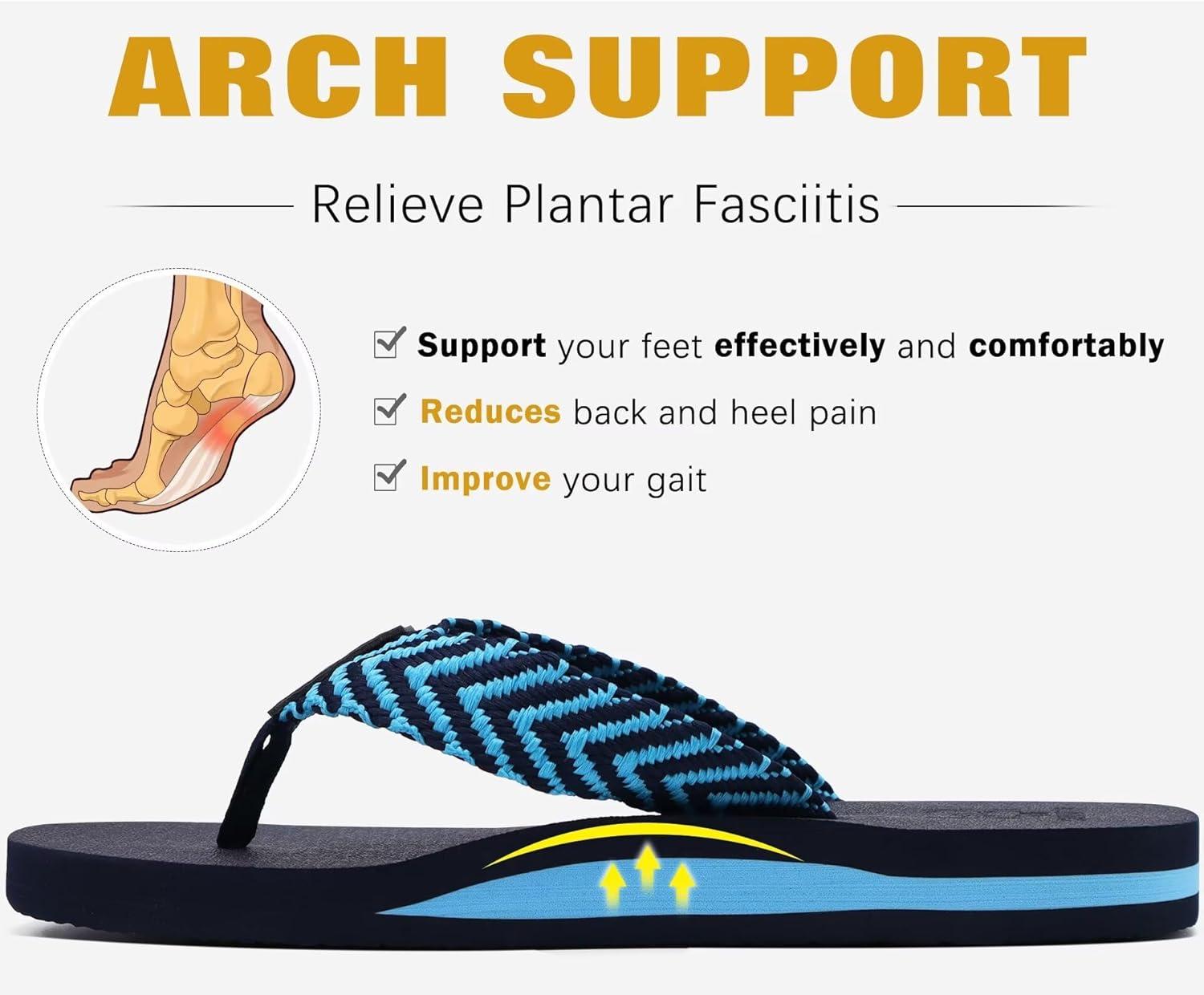 KuaiLu Men’s Yoga Mat Leather Flip Flops with Arch Support Comfortable Cushion Walking Thong Sandals Slip On Indoor Outdoor(Bright Blue)