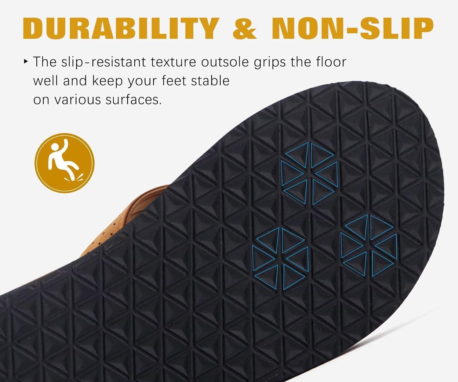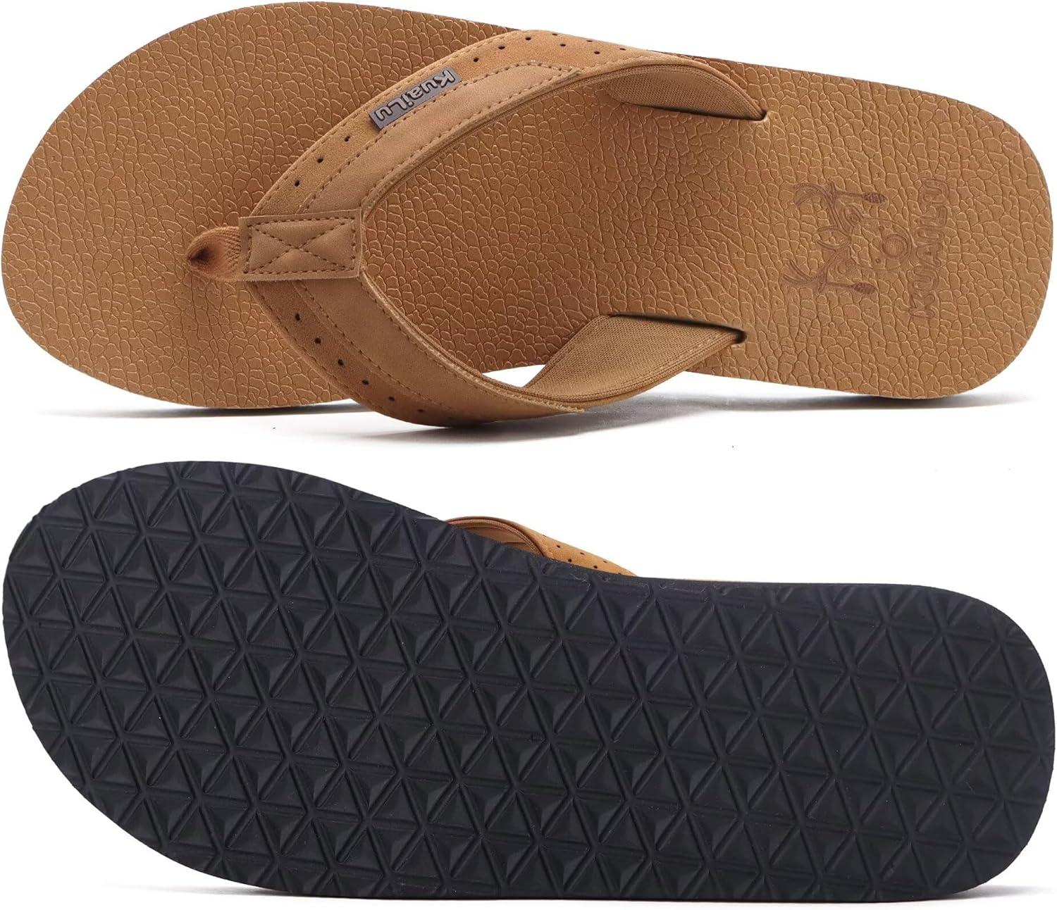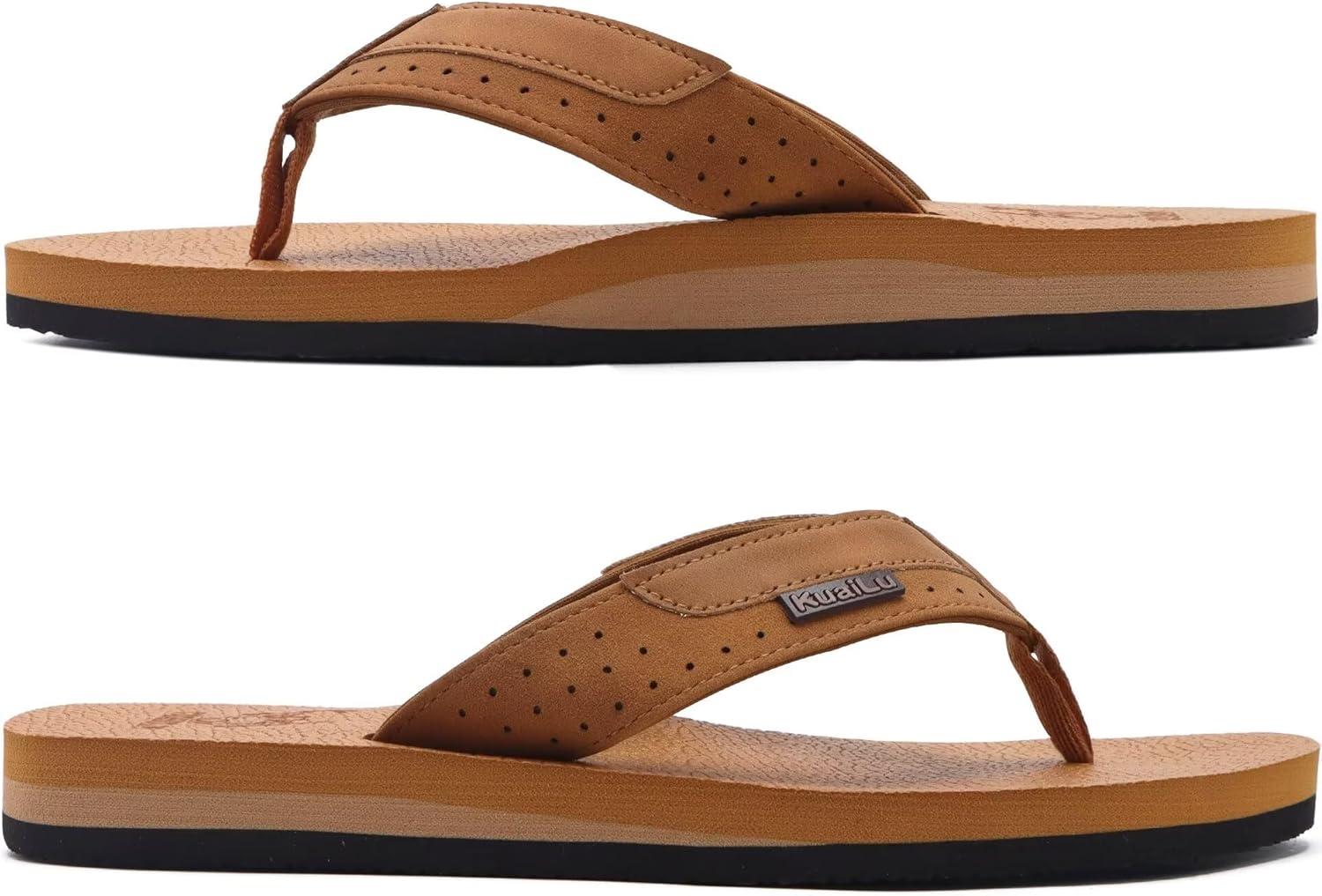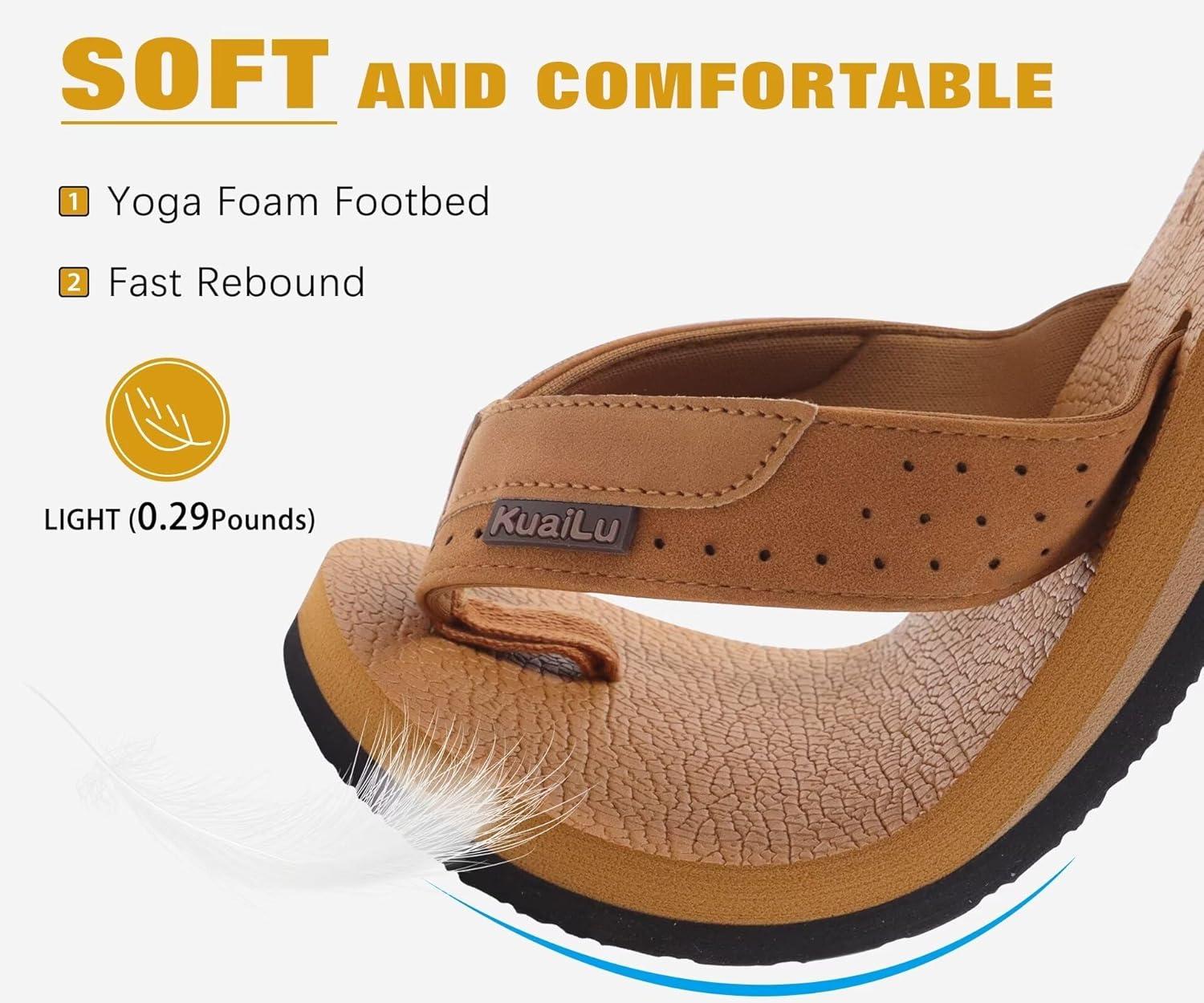 KuaiLu Men’s Yoga Mat Leather Flip Flops with Arch Support Comfortable Cushion Walking Thong Sandals Slip On Indoor Outdoor(Bright Brown)