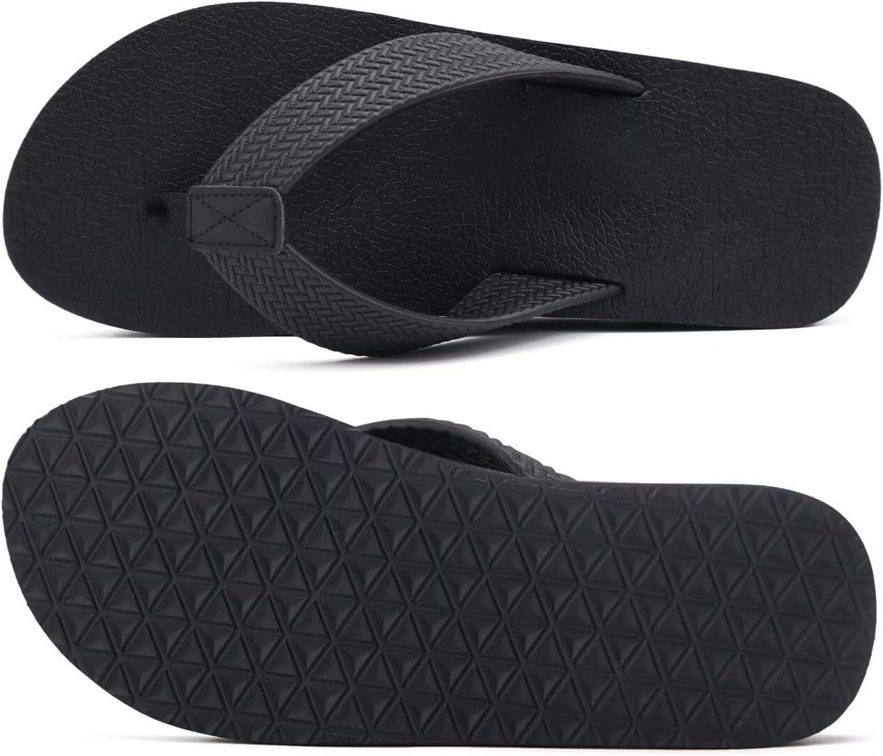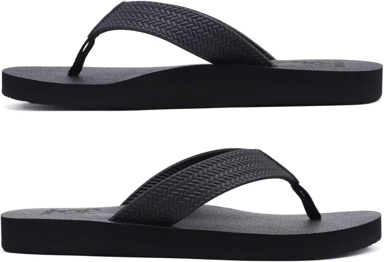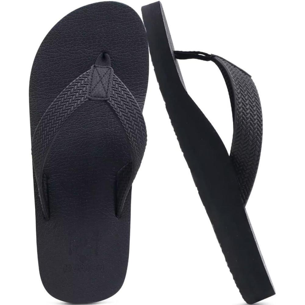 KuaiLu Men’s Yoga Mat Leather Flip Flops with Arch Support Comfortable Cushion Walking Thong Sandals Slip On Indoor Outdoor(Dull Black)
