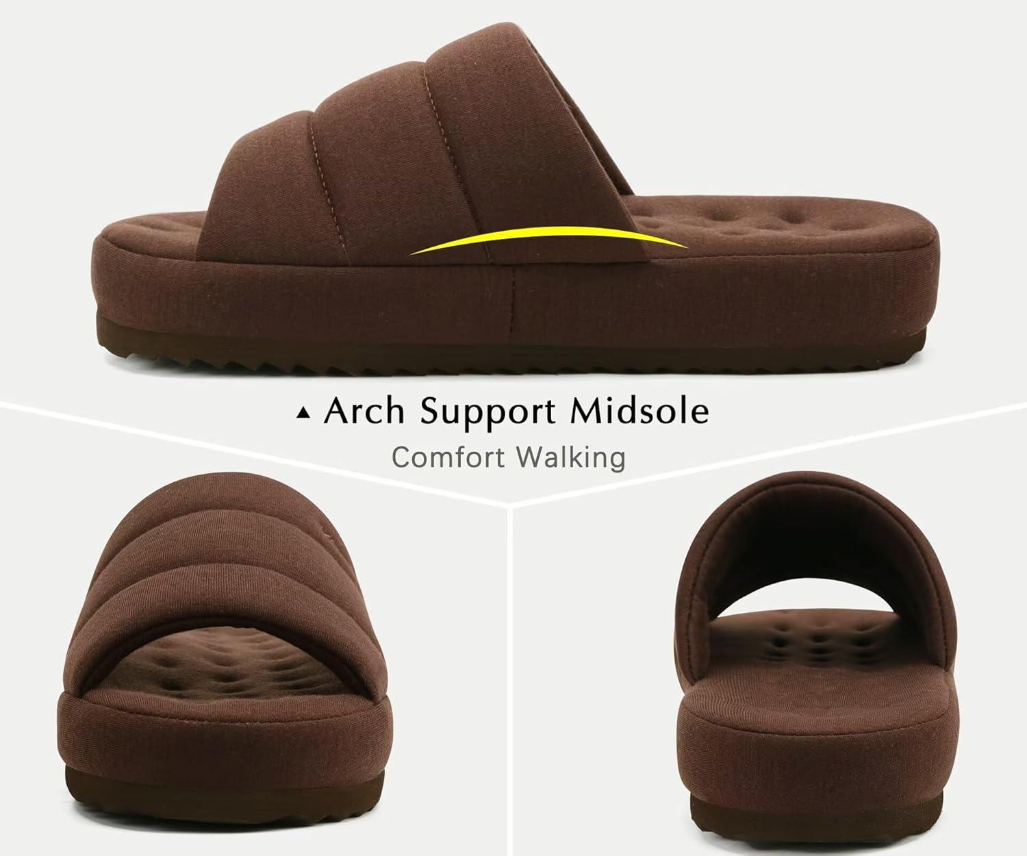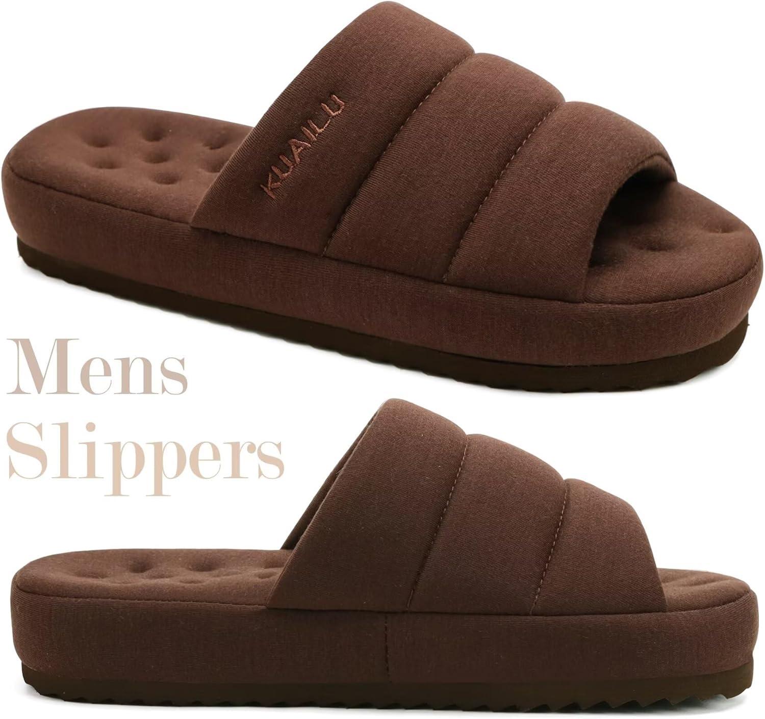 KuaiLu Slippers For Men Cotton-blend Fabric Warm Slide Slipper Comfy Arch Support Indoor Outdoor House Slippers Shoes Comfortable Slip on Lightweight Thick Cushion Mens Scuff Slippers, Brown Size 9.5