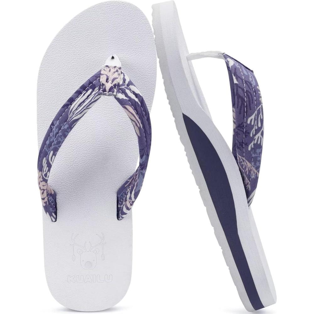 KuaiLu Womens Arch Support Flip Flops Ladies Comfort Lightweight Soft Yoga Mat Cushion Walking Thong Sandals(Purple White)