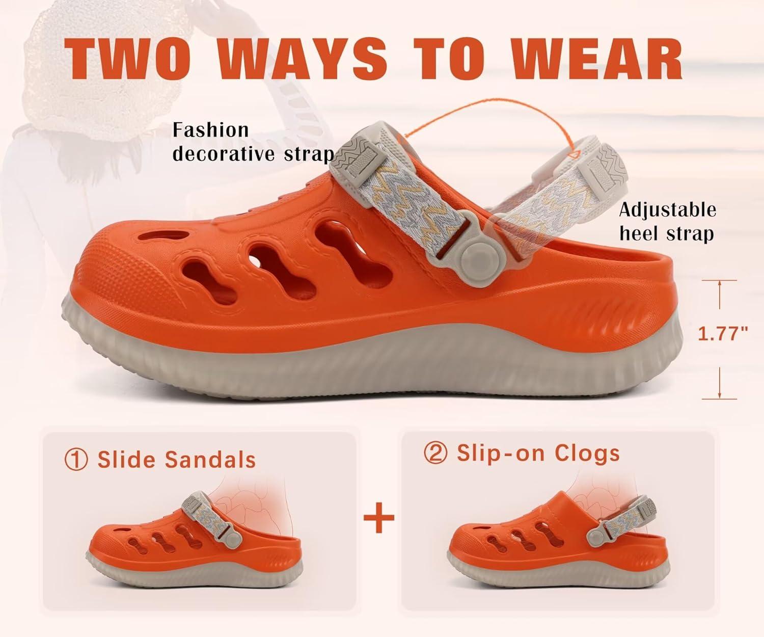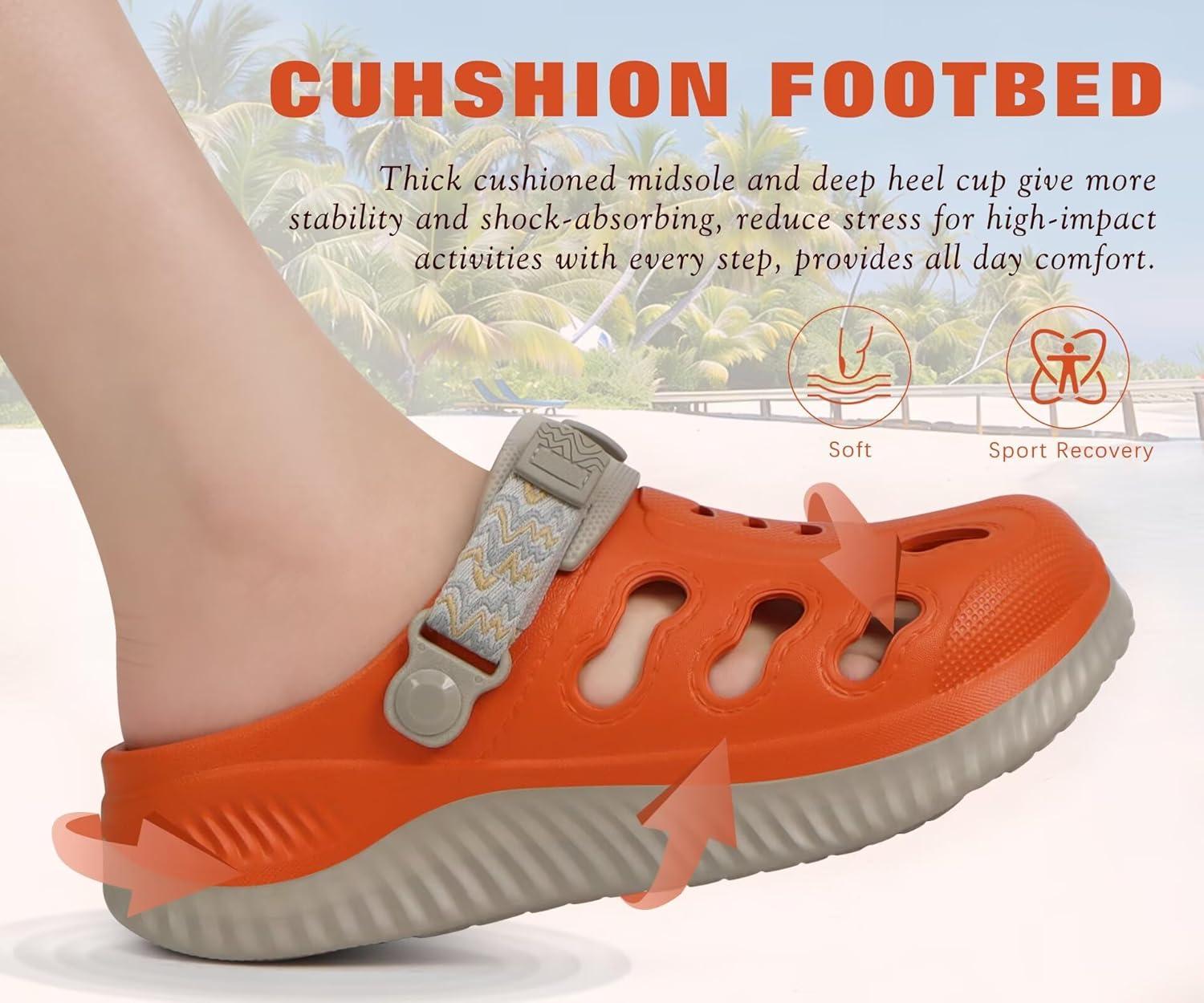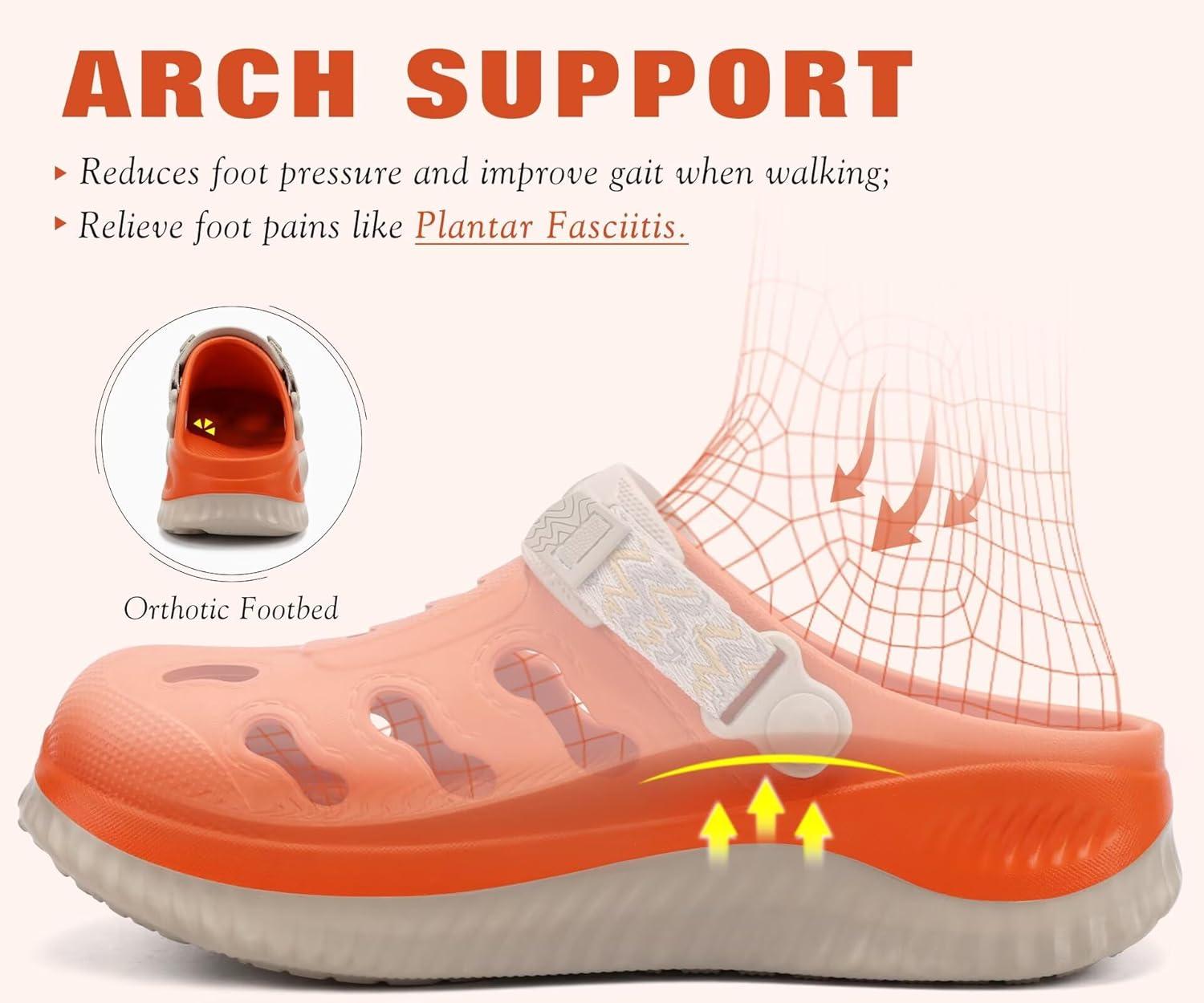 KuaiLu Womens Classic Recovery Clogs Comfortable Walking Cushion Sandals for Women Relif Plantar Fasciitis Ladies Orthotic Arch Support Slip-on Mules, Adult Slip Resistant Shoes(Vibrant Orange)