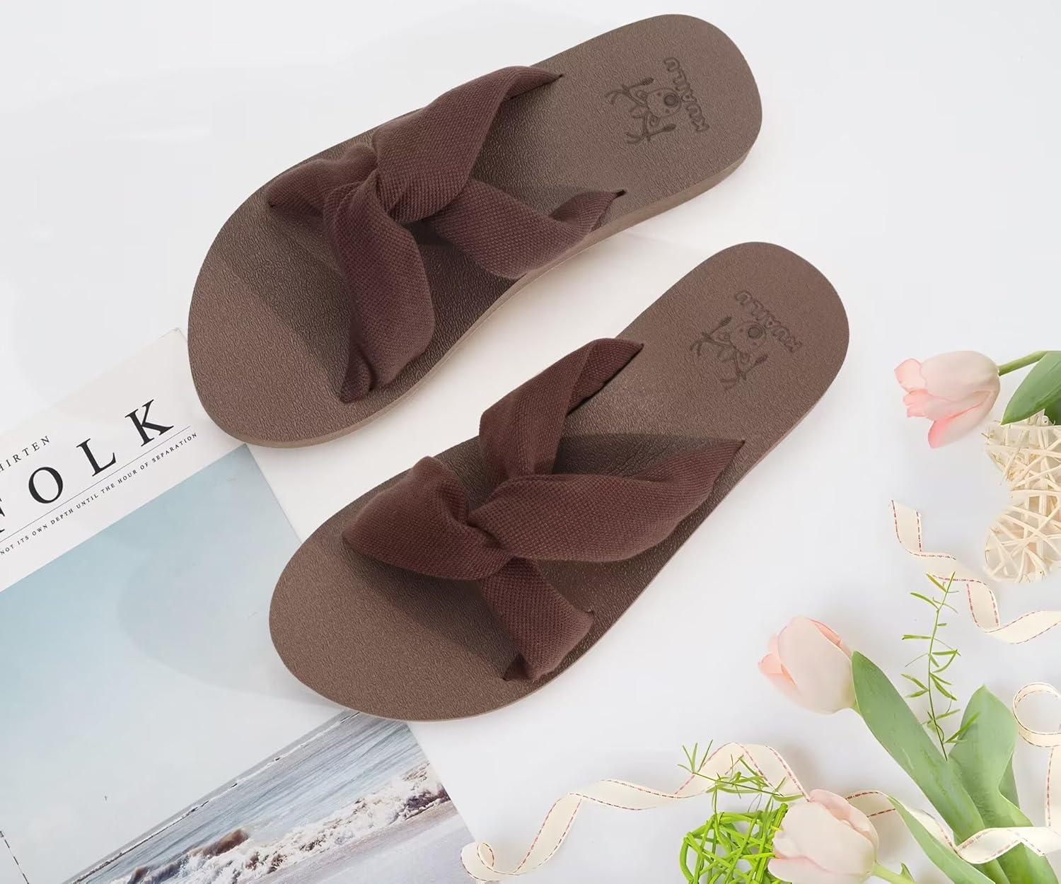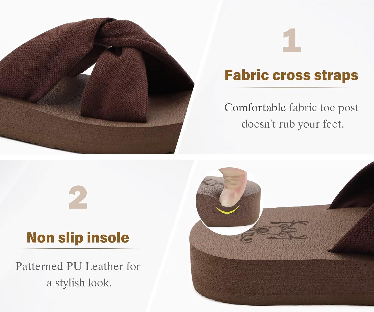 Save big on KuaiLu Womens Dressy Sandals with Arch Support Yoga Mat Comfortable Cushion Walking Criss Cross Slides Summer Beach Slip On Indoor Outdoor Slippers(All Brown) and accessories during our BOGO sale. Buy one, get one 50% off!