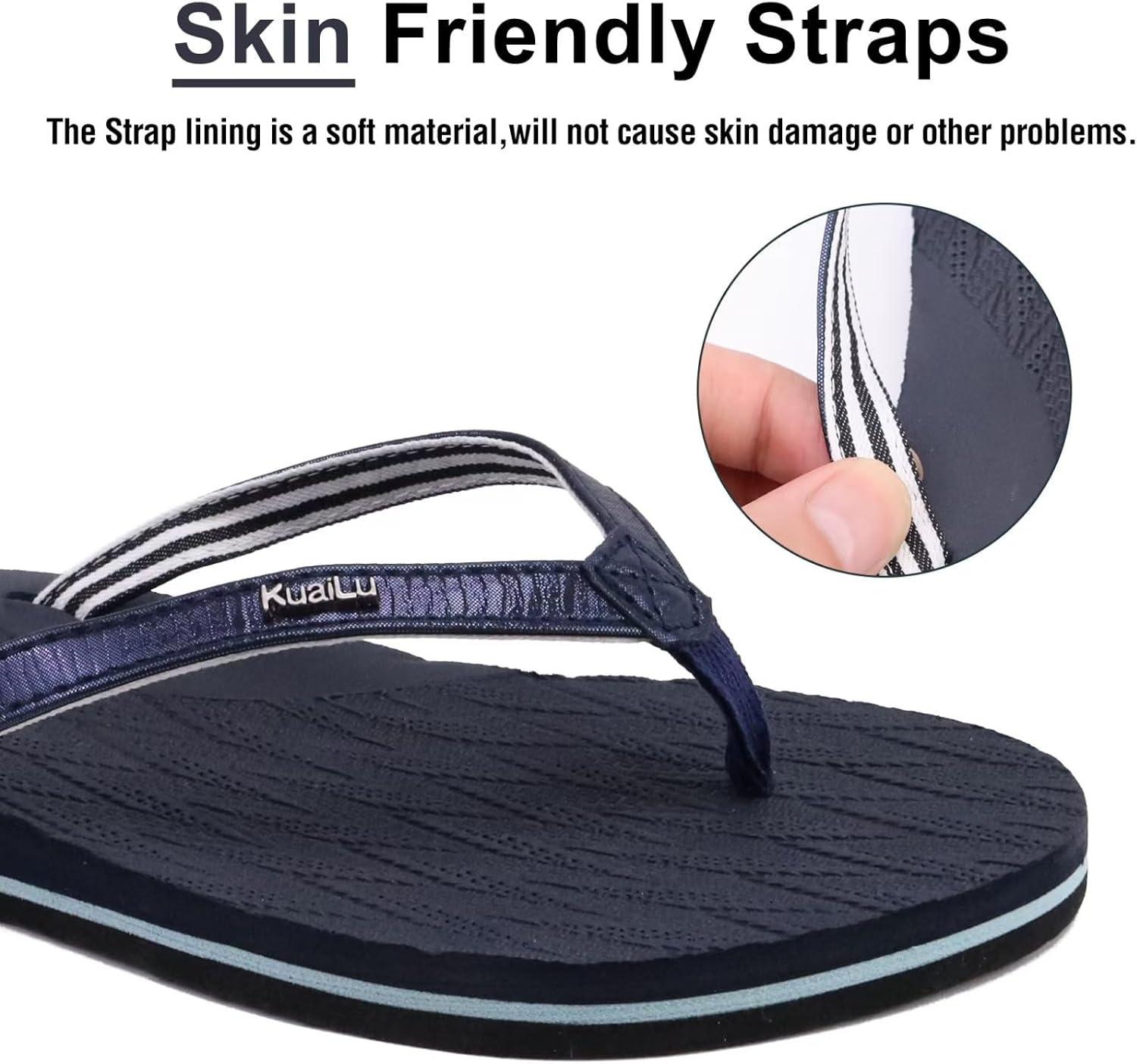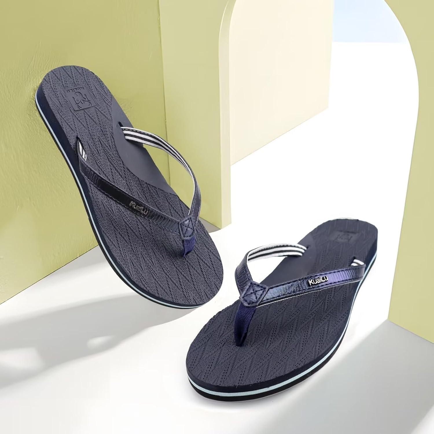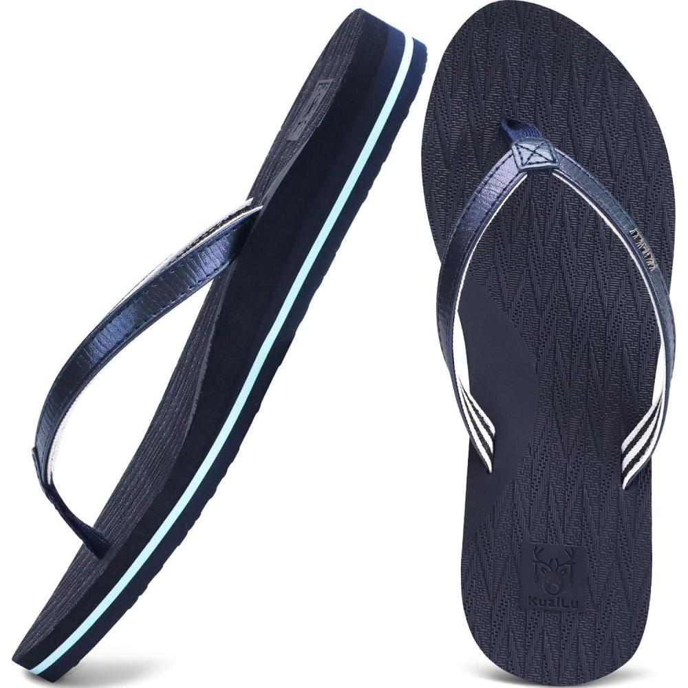 KuaiLu Womens Fashion Flip Flops Ladies Lightweight Summer Beach Yoga Mat Thong Sandals with Comfortable Arch Support(Darkblue)