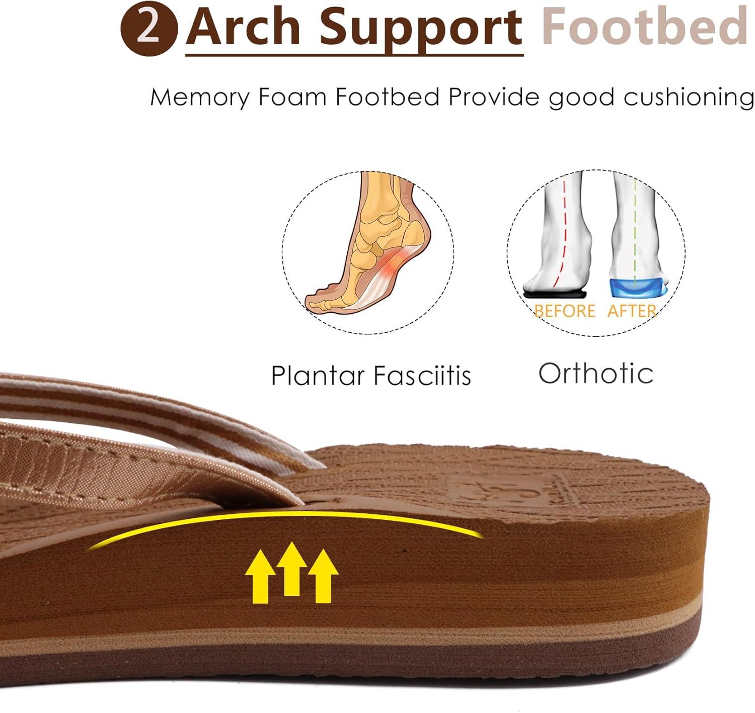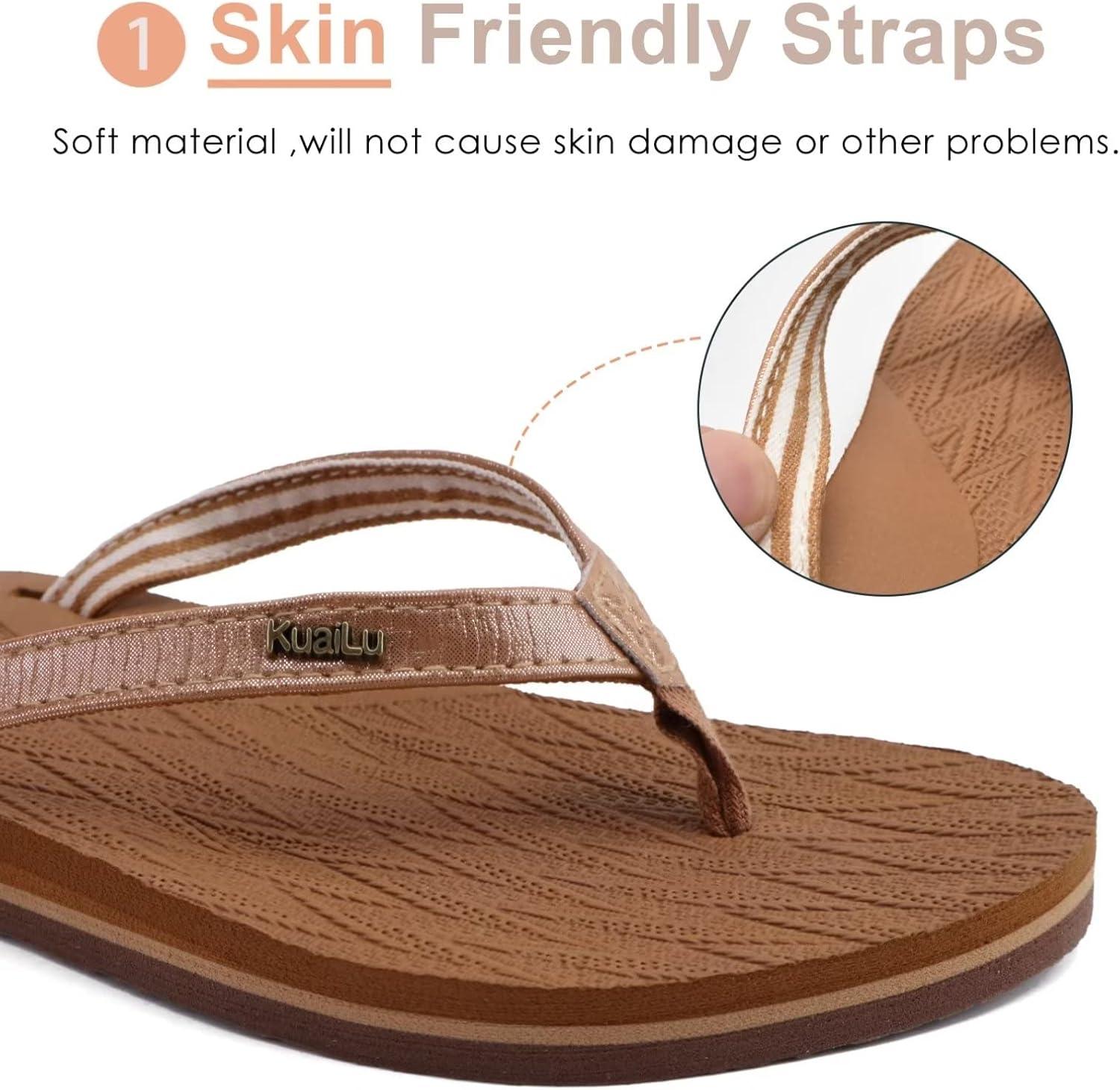 KuaiLu Womens Fashion Flip Flops Ladies Lightweight Summer Beach Yoga Mat Thong Sandals with Comfortable Arch Support(Shiny Khaki)