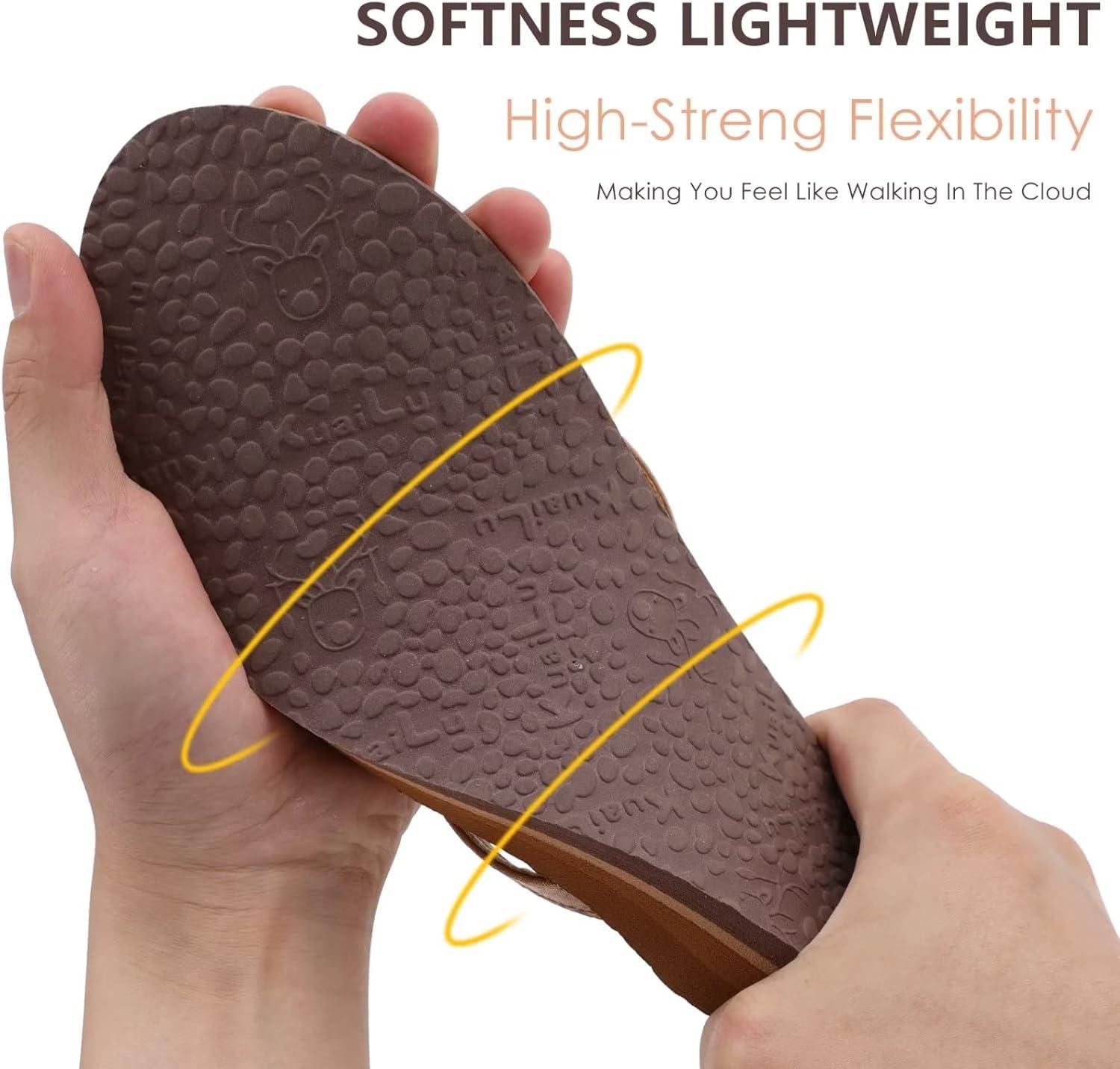 KuaiLu Womens Fashion Flip Flops Ladies Lightweight Summer Beach Yoga Mat Thong Sandals with Comfortable Arch Support(Khakiblack)
