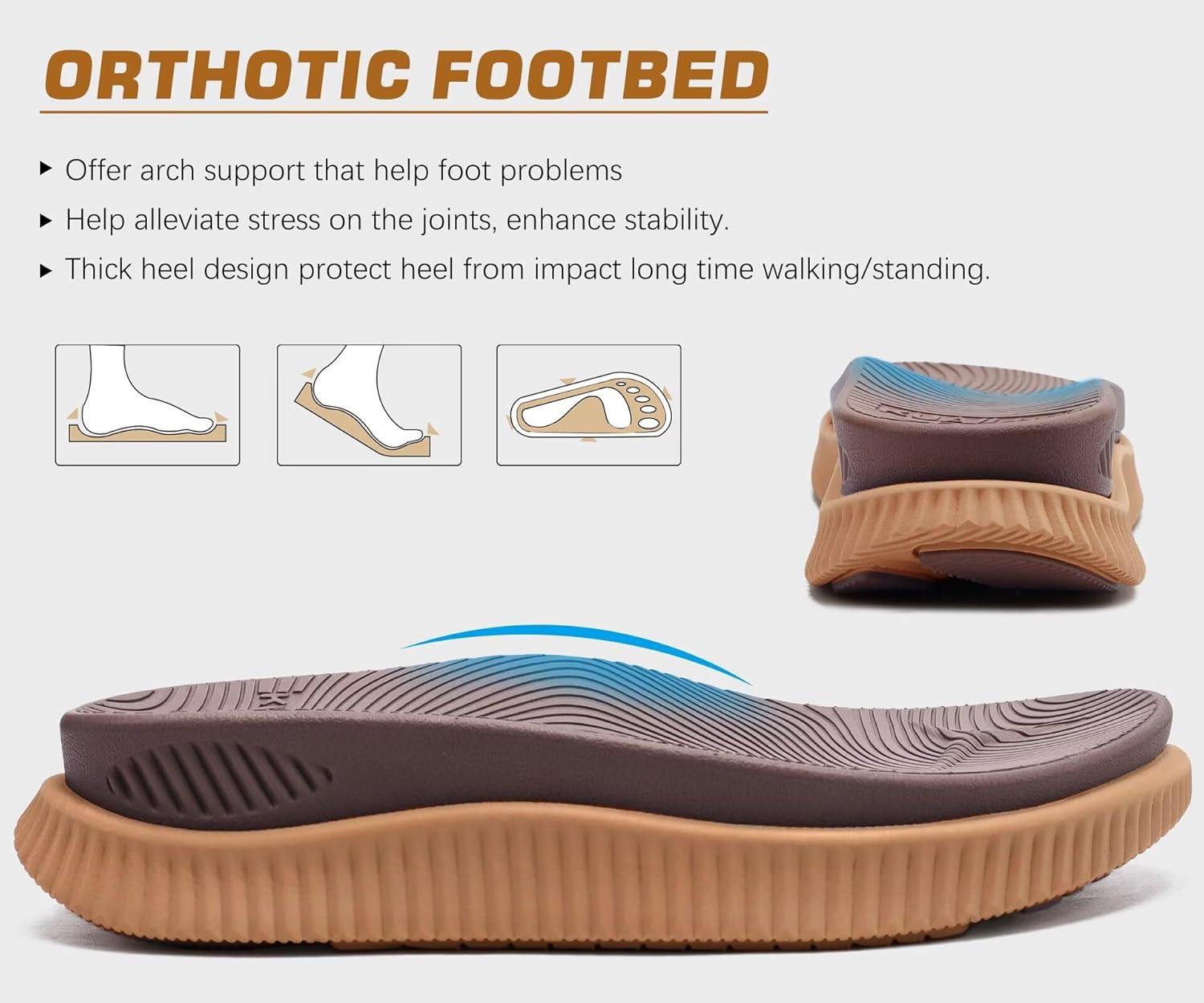 KuaiLu Womens Fashion Orthotic Flip Flops Ladies Athletic Thick Cushion Recovery Thong Sandals Slip On Memory Foam Walking Sandles With Comfortable Plantar Fasciitis Arch Support(Khaki Brown)