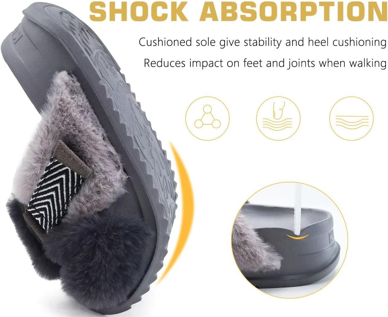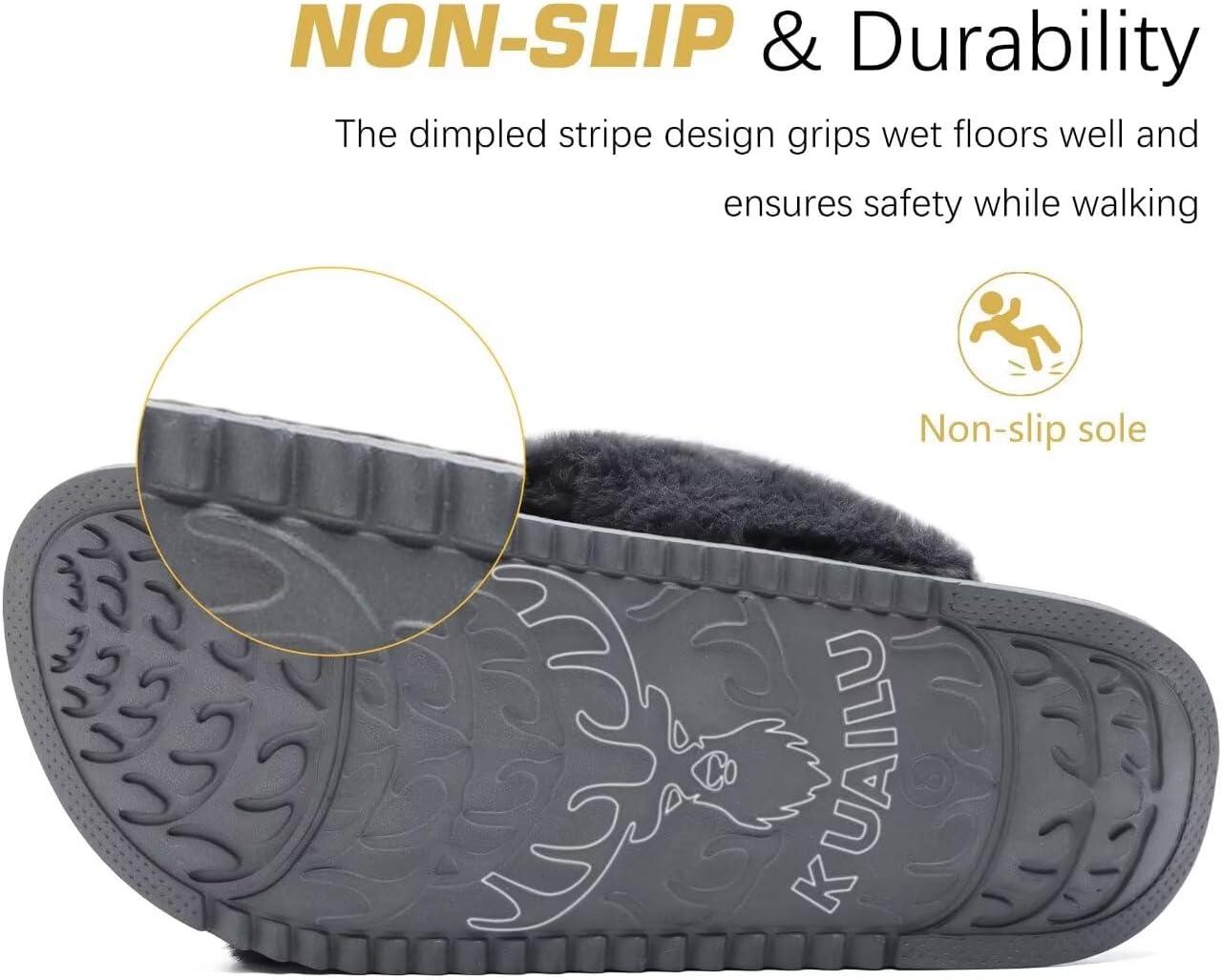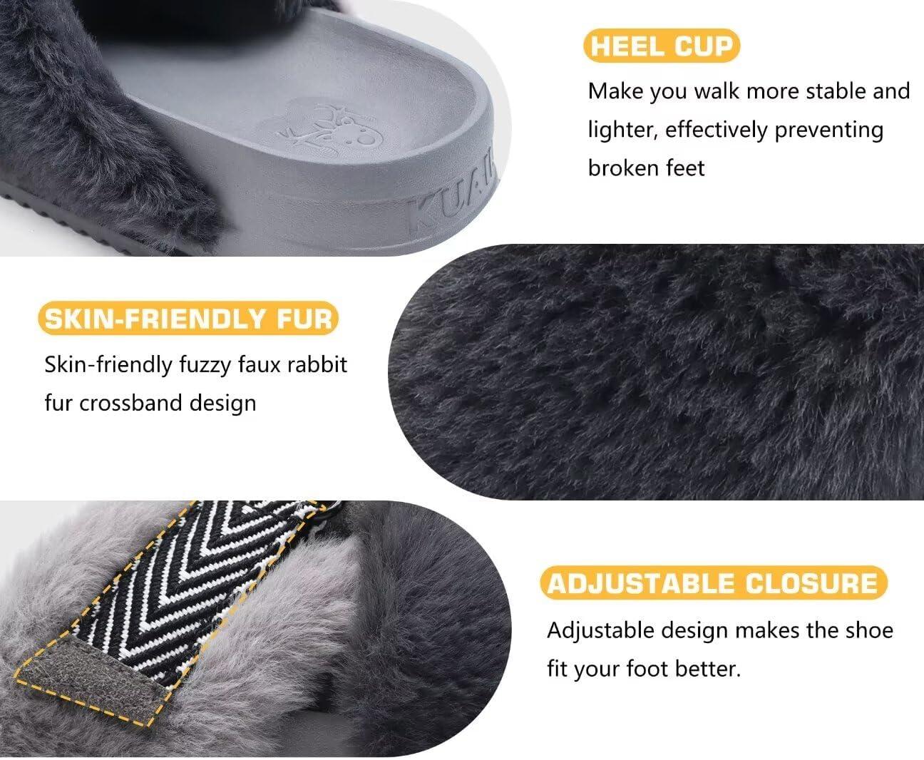 KuaiLu Women’s Fuzzy Cross Band Platform Slippers Furry Faux Fur Comfortable Arch Support Open Toe Slides for Indoor Outdoor(Grey)