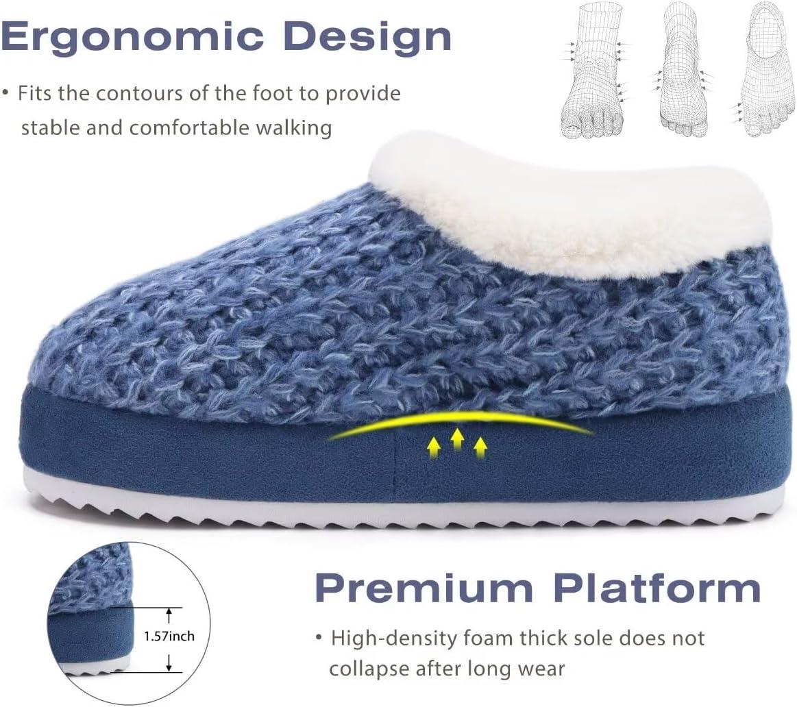 KuaiLu Womens House Platform Slippers Cozy Fuzzy Plush Knit Slipper Ladies Warm Fur Lined Winter Slip On Home Bedroom Thick Cushion Shoes Indoor Outdoor Hard Sole(Blue)