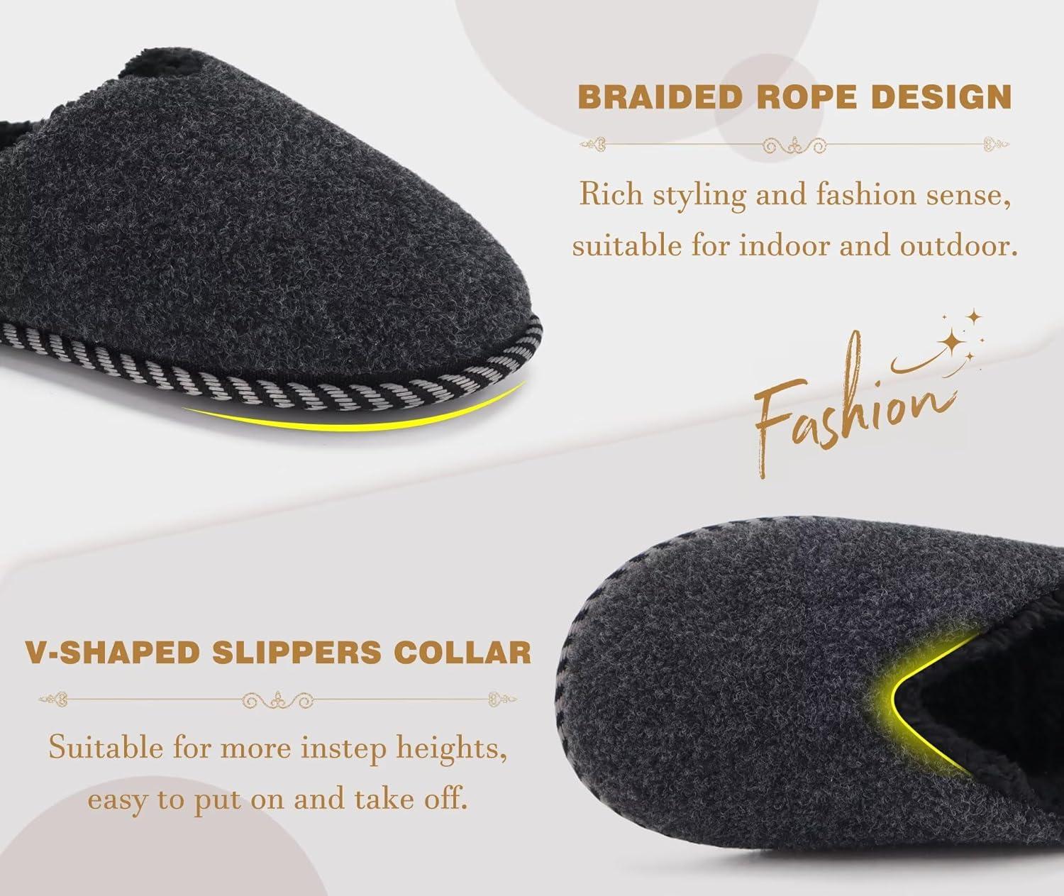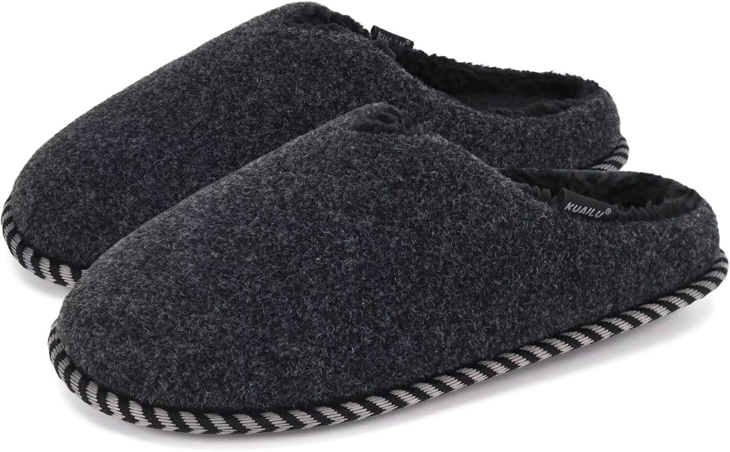 KuaiLu Womens Memory Foam Slippers Ladies Cozy Fuzzy Plush Fur Lined Warm Winter Cushioned Slip on House Bedroom Shoes Comfy Indoor Outdoor Hard Sole Arch Supportive Plantar Fasciitis Black Size 9