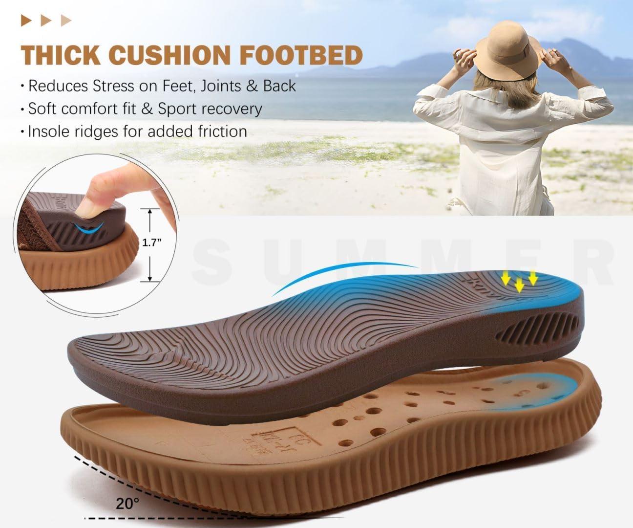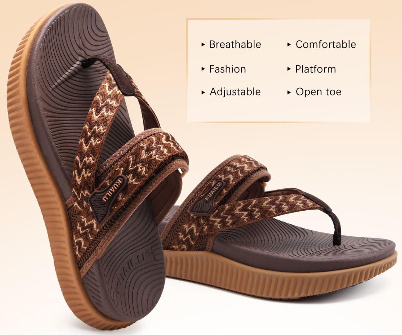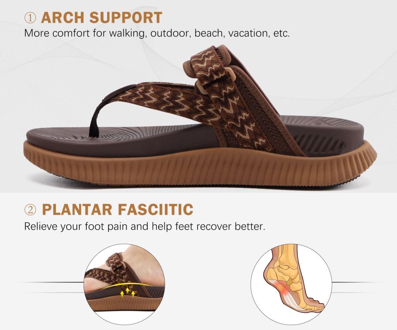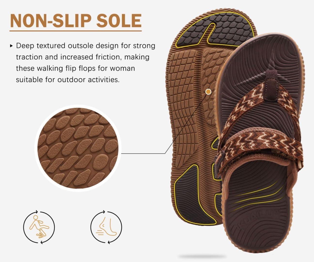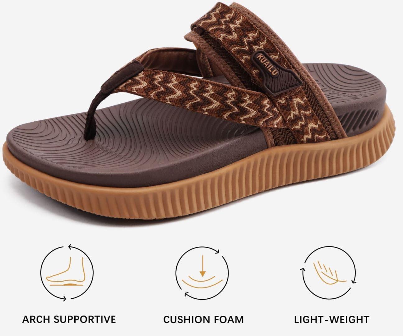KuaiLu Womens Orthopedic Flip Flops With Arch Support Adjustable Thick Athletic Cushion Recovery Walking Sandals For Woman Ladies Fashion Comfortable Flip-Flop Slides, Water Resistant & Lightweight(Brown Khaki)