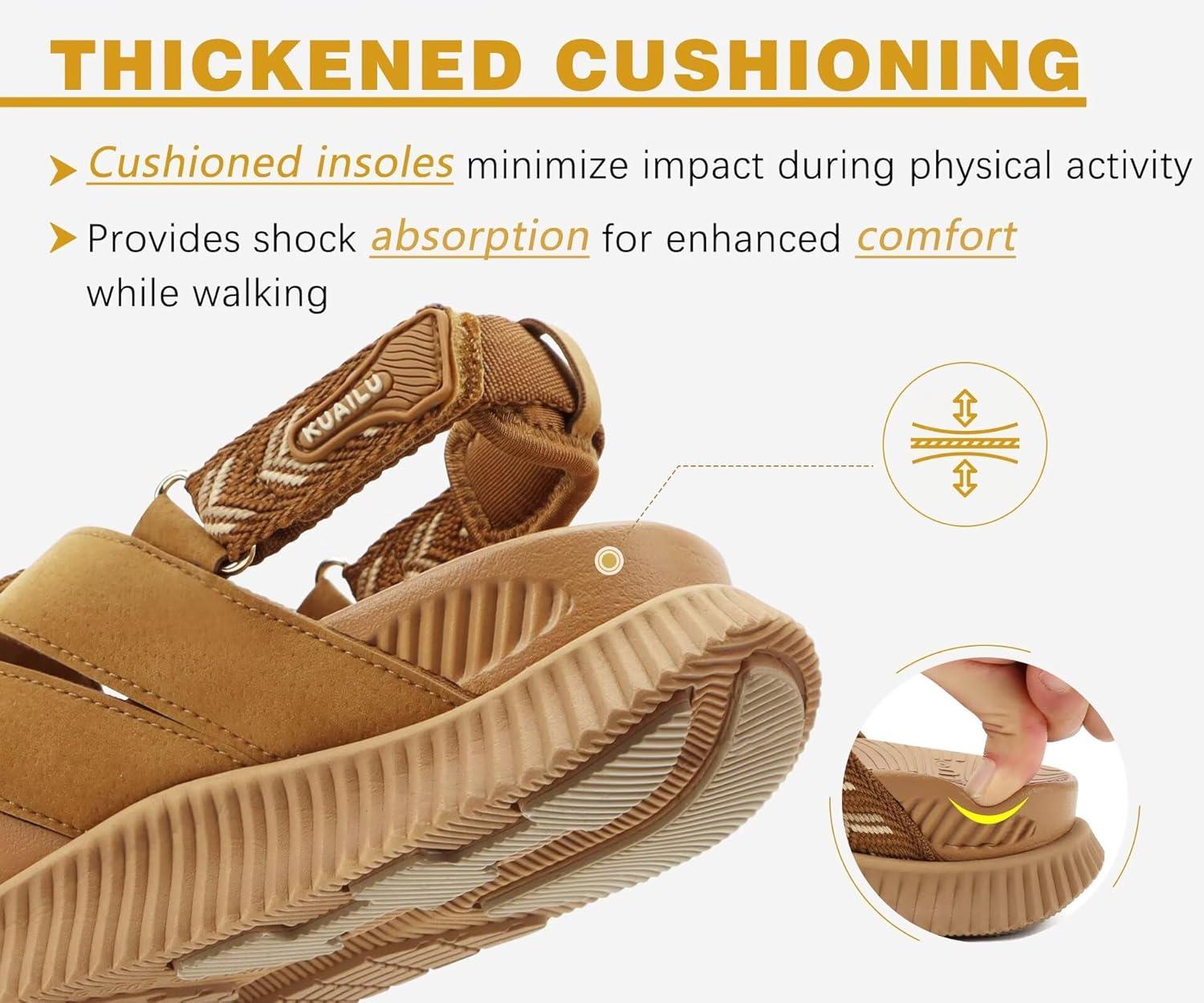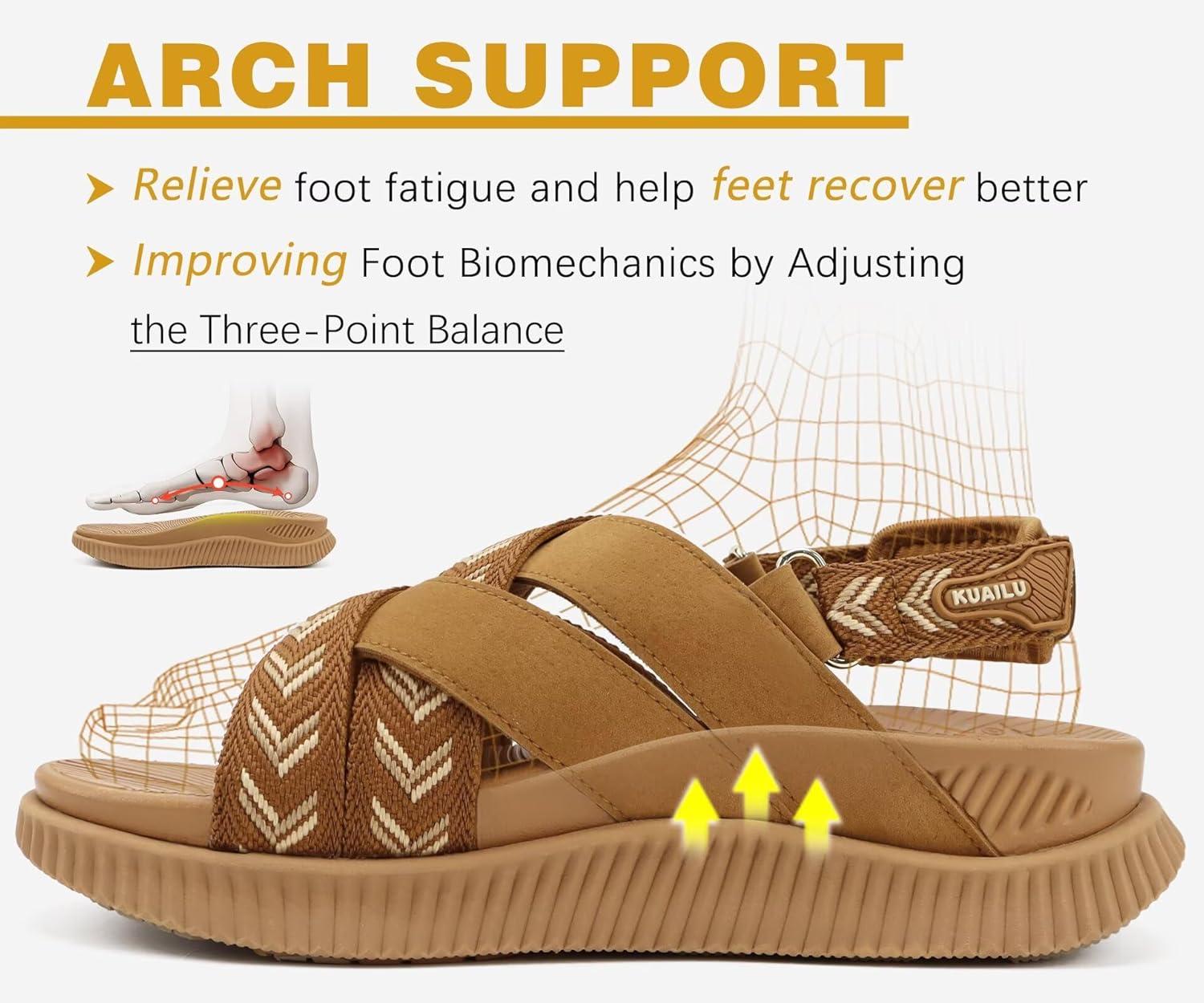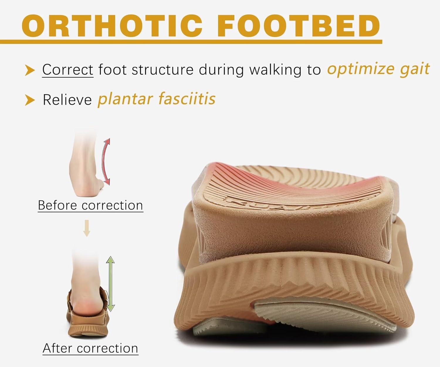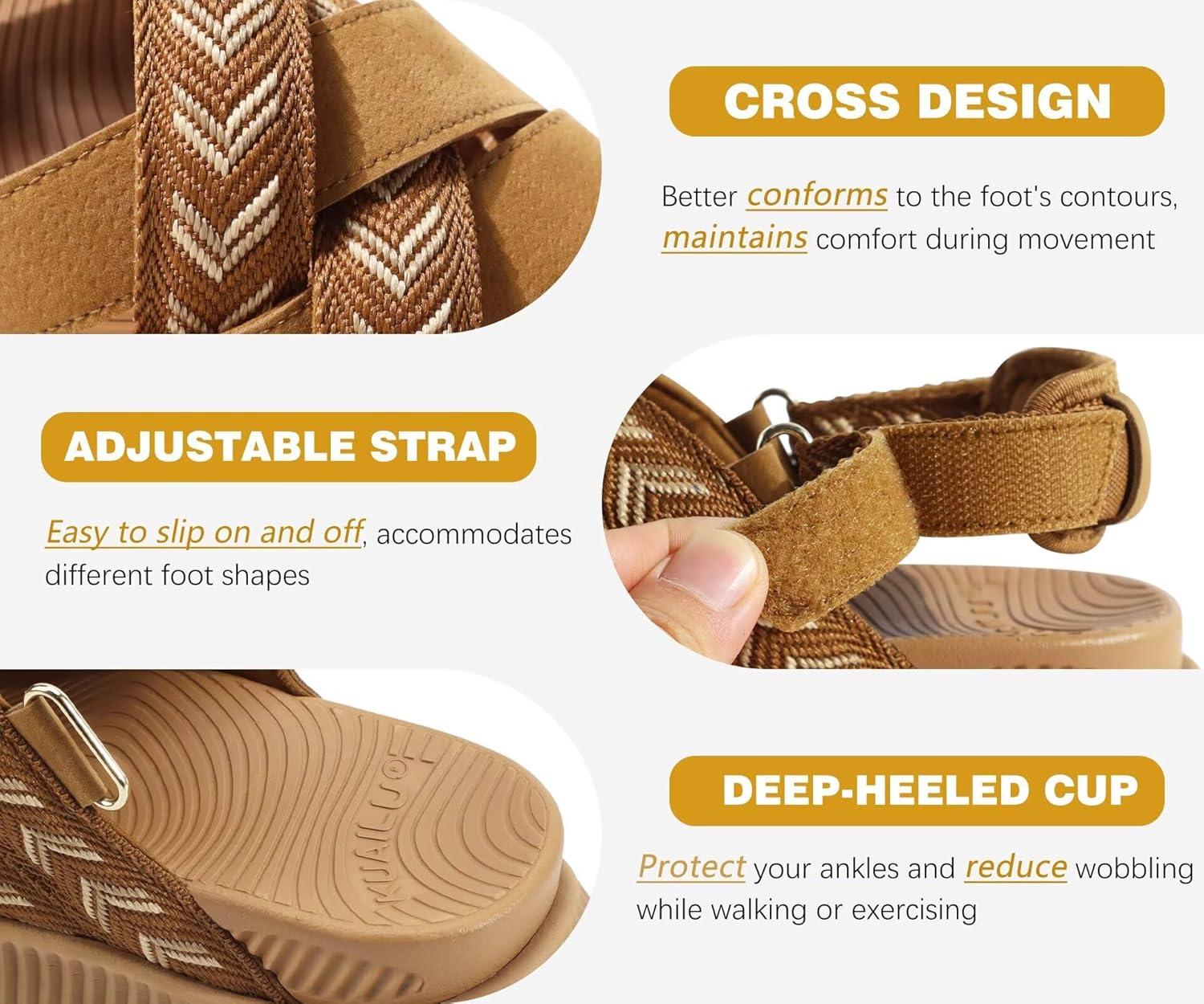 KuaiLu Womens Orthopedic Walking Sandals Comfortable Plantar Fasciitis Arch Support Sport Recovery Outdoor Casual Sandles Thick Memory Foam Cushion Cross Strap Adjustable Slides(Khaki)