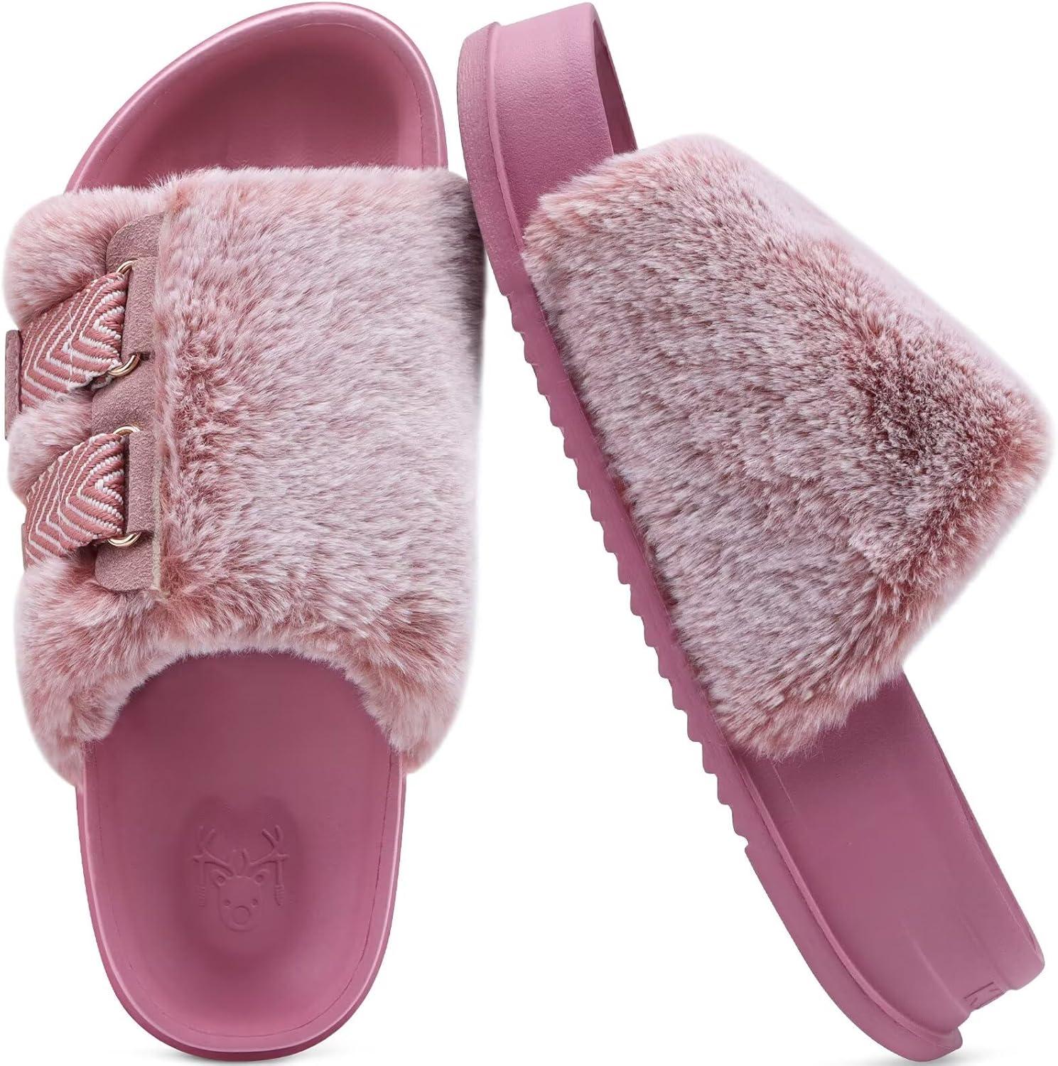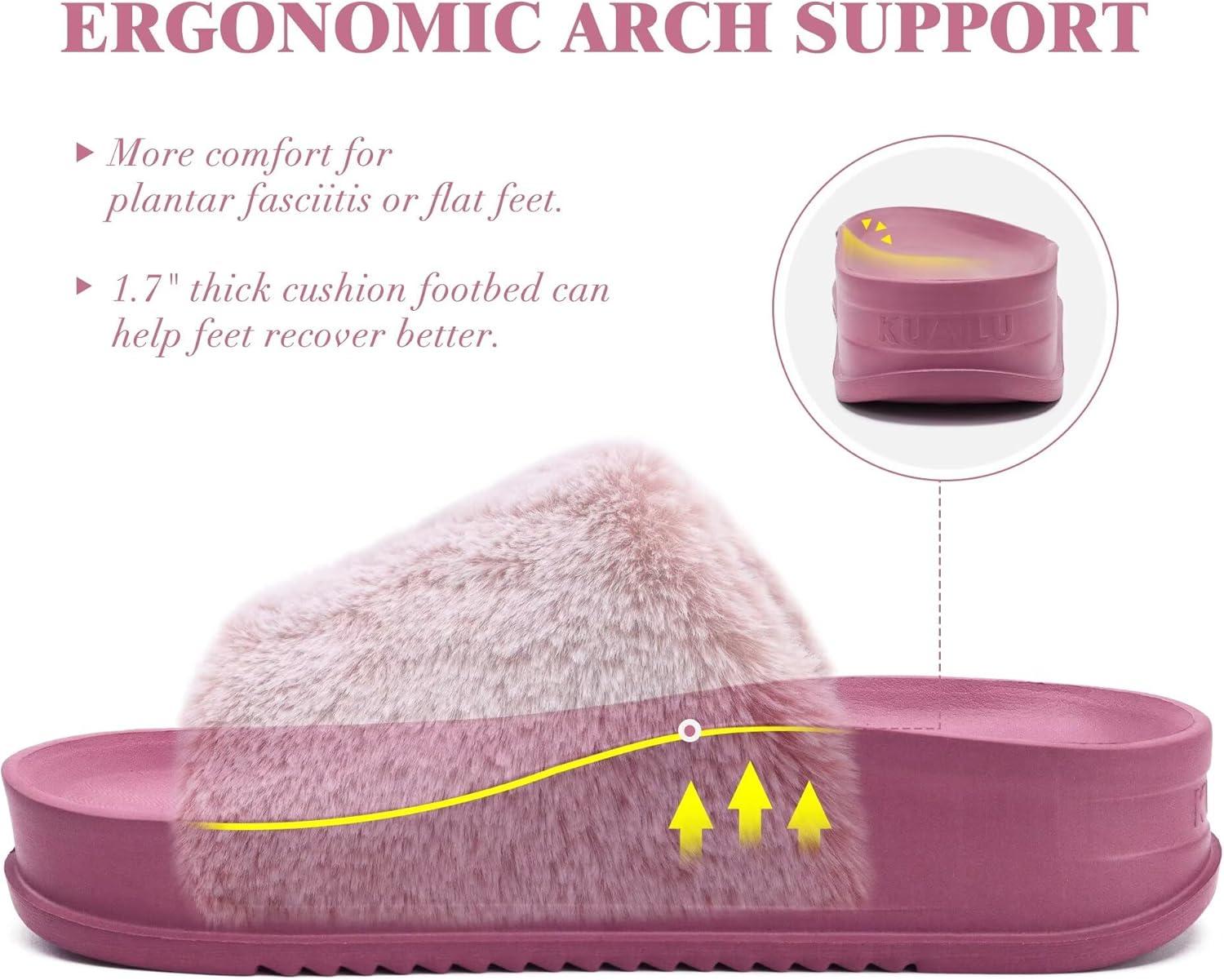 KuaiLu Women’s Orthotic Slippers With Arch Support Soft Cushion Sandal Slippers for Woman Ladies Fashion Open Toe Faux Fur Platform Slipper Indoor Outdoor 6~12(Lovely Pink (Adjustable))