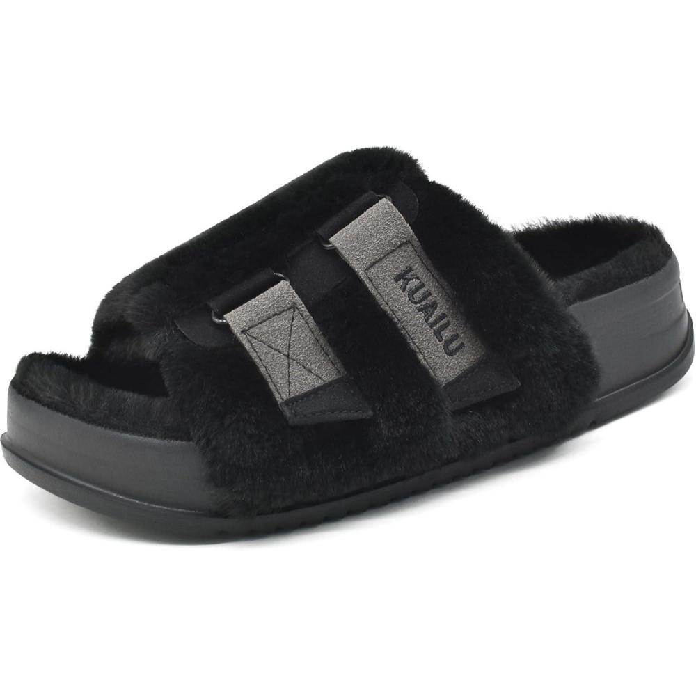 KuaiLu all-day comfort cushioning platform slippers are made from premium faux fur lined with soft and supportive EVA foam. Luxurious plush touch keeps you as warm as sitting by the fireplace in winter. Women's open toe slippers allow toes to breathe freely, keep them dry and give feet a comfortable environment. Adjustable design, also suitable for people with wide feet and high instep. Ergonomic footbed and non-skid indoor/outdoor rubber bottom are perfect no matter at home or go out for a walk. Fashionable color matching design is loved by ladies of all ages and perfect as a thoughtful gift for your loved ones on Birthdays, upcoming Thanksgiving Day, Christmas, New Year, Valentine's Day and Anniversaries.