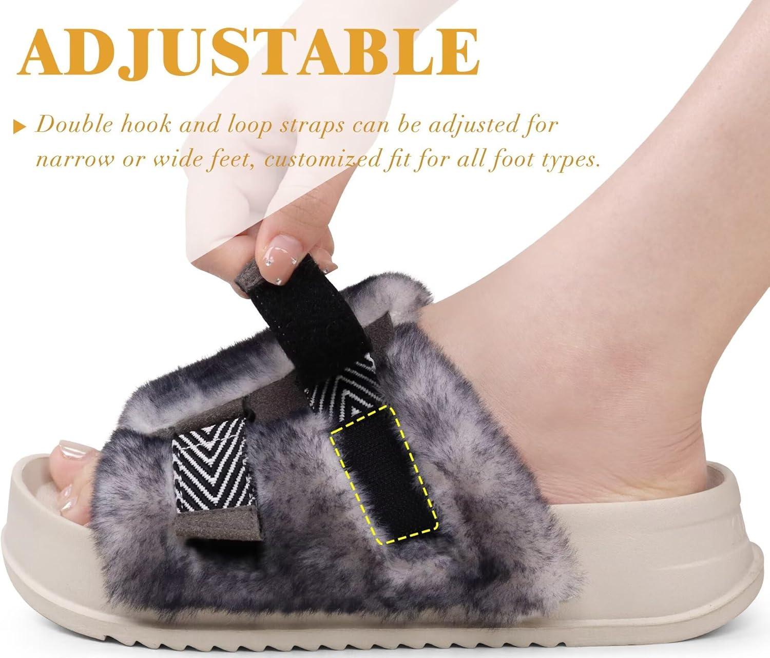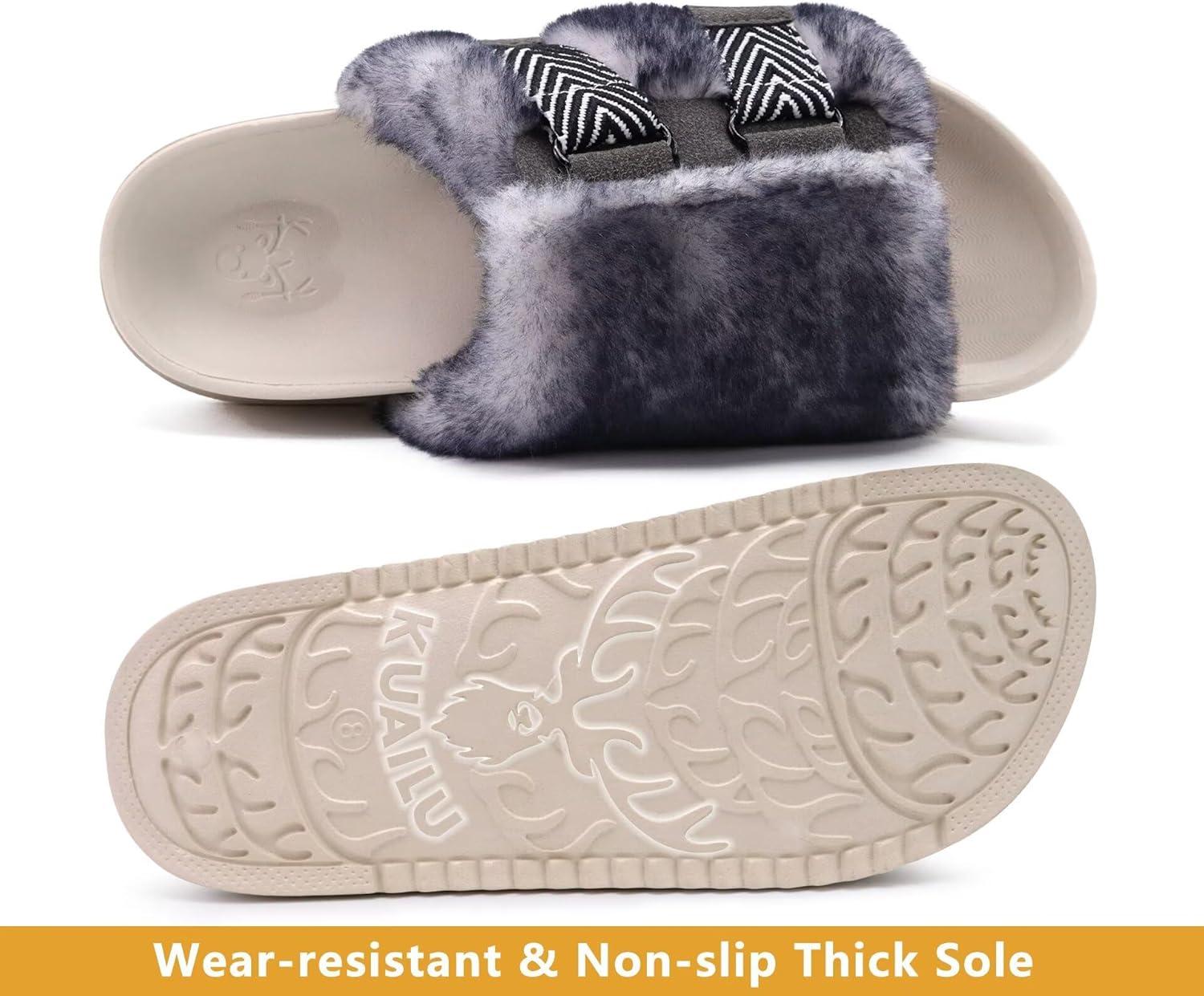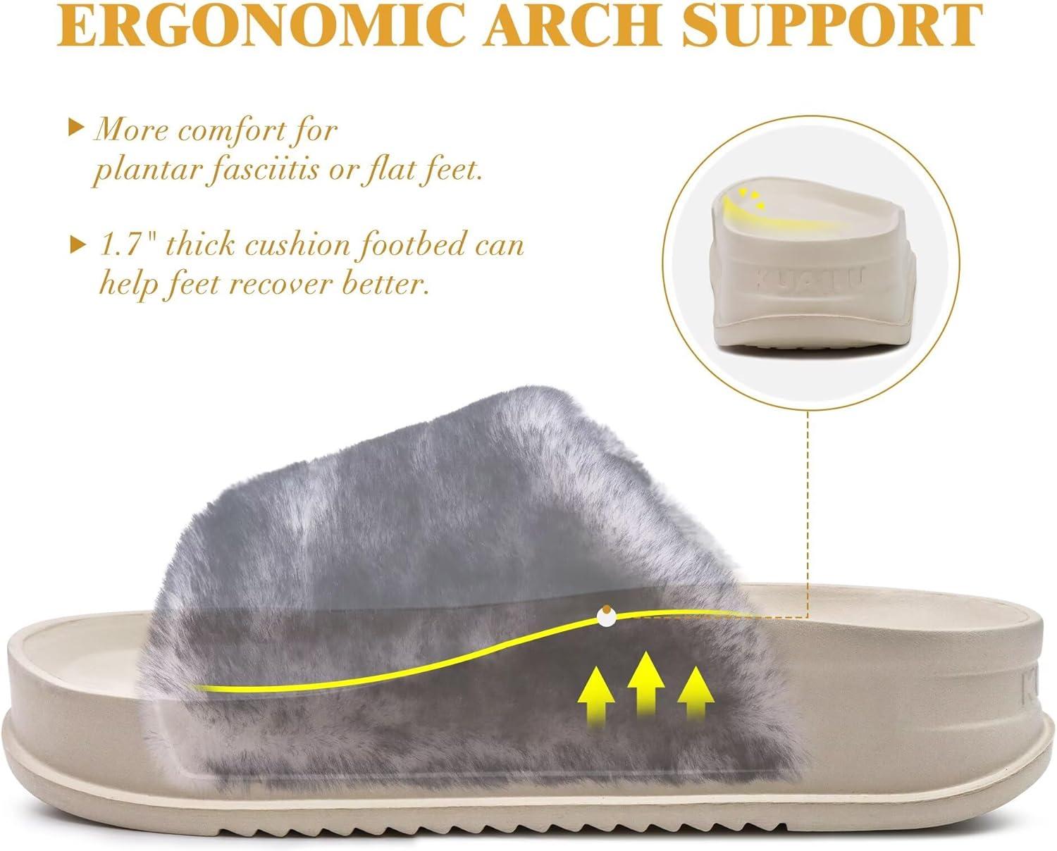 imageKuaiLu Womens Orthotic Slippers With Arch Support Soft Cushion Sandal Slippers for Woman Ladies Fashion Open Toe Faux Fur Platform Slipper Indoor Outdoor 612Vogue Black Adjustable