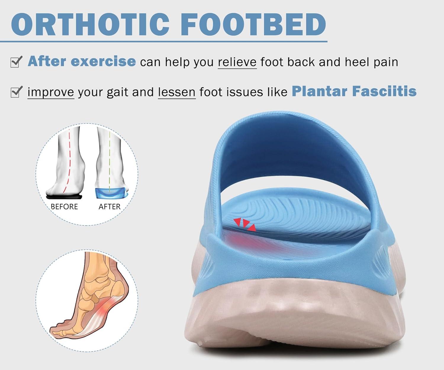 KuaiLu Womens Recovery Sandals With Comfortable Plantar Fasciitis Support,Ladies Orthotic Open Toe Sport Slides Thick Cushion Reduces Stress on Feet,Joints & Back Post-Exercise(Blue White)