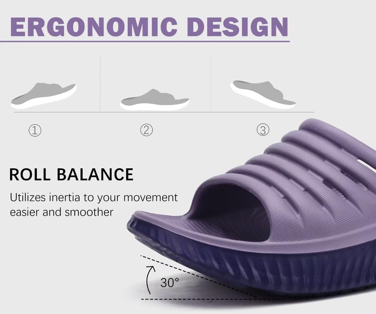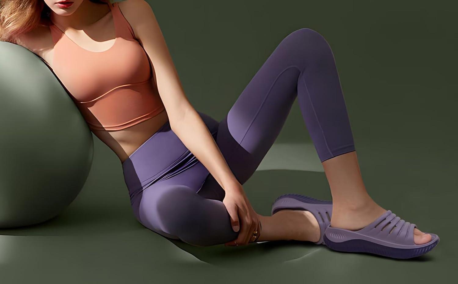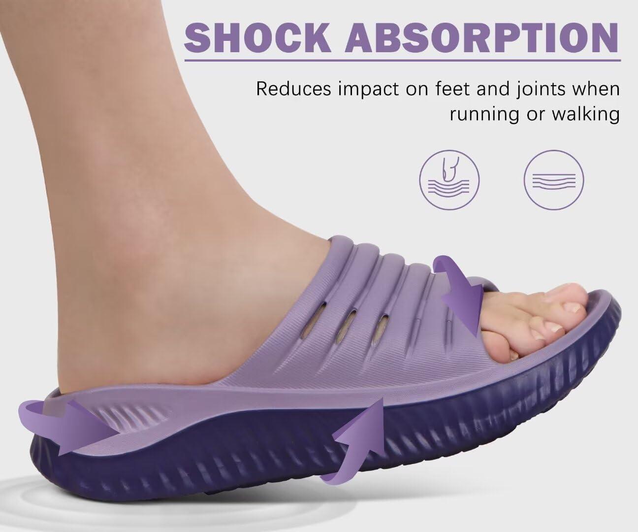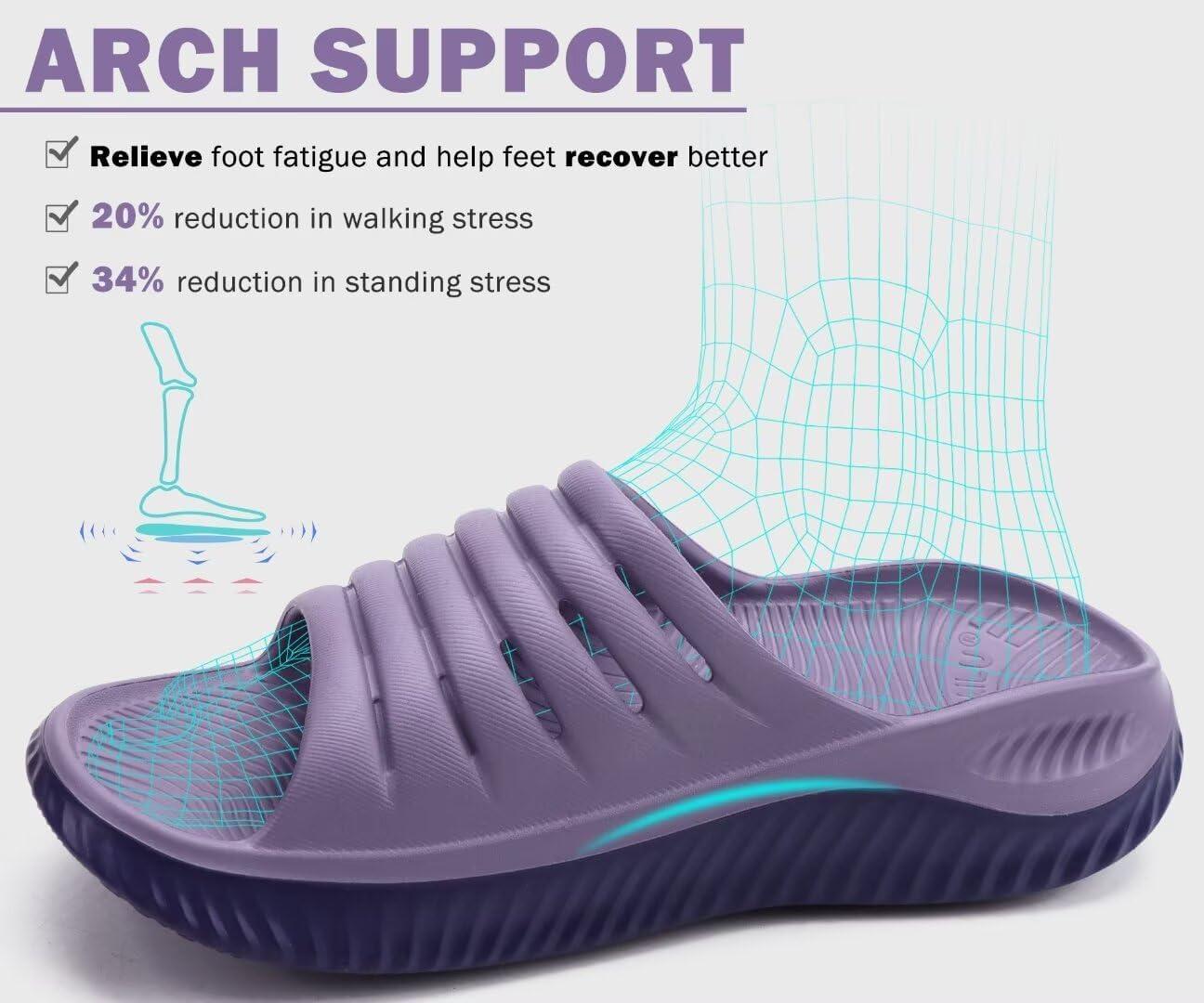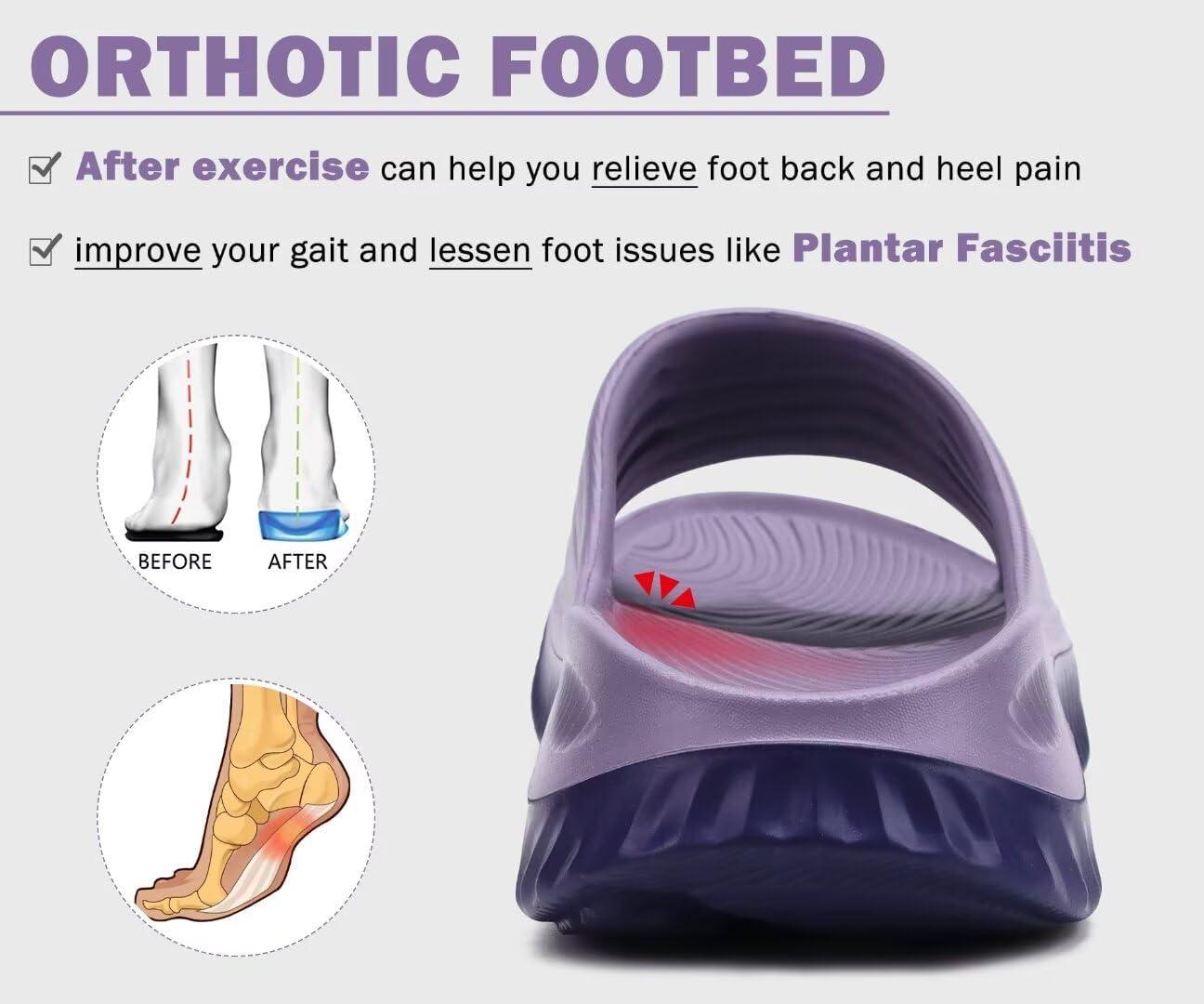 KuaiLu Womens Recovery Sandals With Comfortable Plantar Fasciitis Support,Ladies Orthotic Open Toe Sport Slides Thick Cushion Reduces Stress on Feet,Joints & Back Post-Exercise(Double Purple)