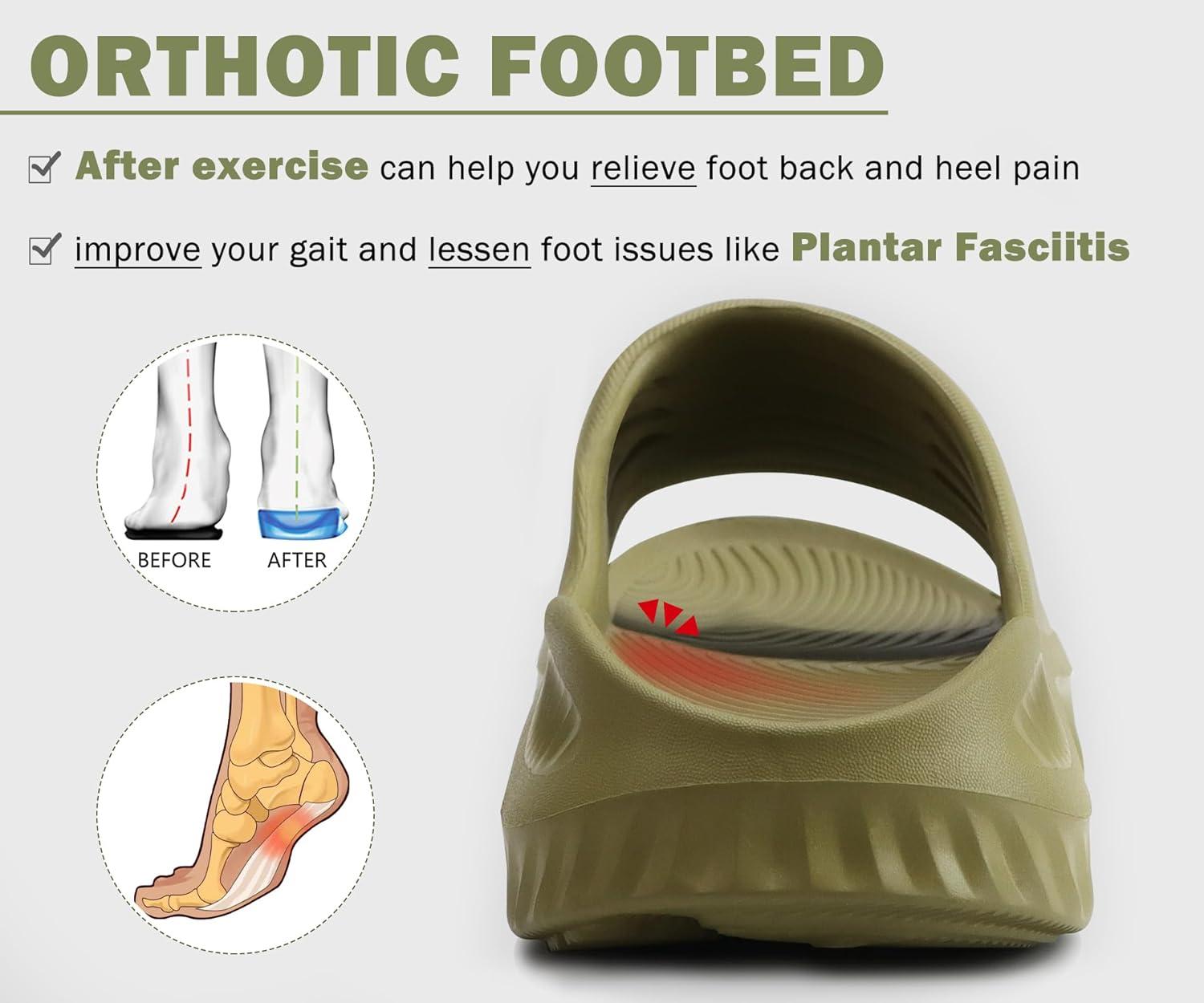 KuaiLu Womens Recovery Sandals With Comfortable Plantar Fasciitis Support,Ladies Orthotic Open Toe Sport Slides Thick Cushion Reduces Stress on Feet,Joints & Back Post-Exercise(Green)
