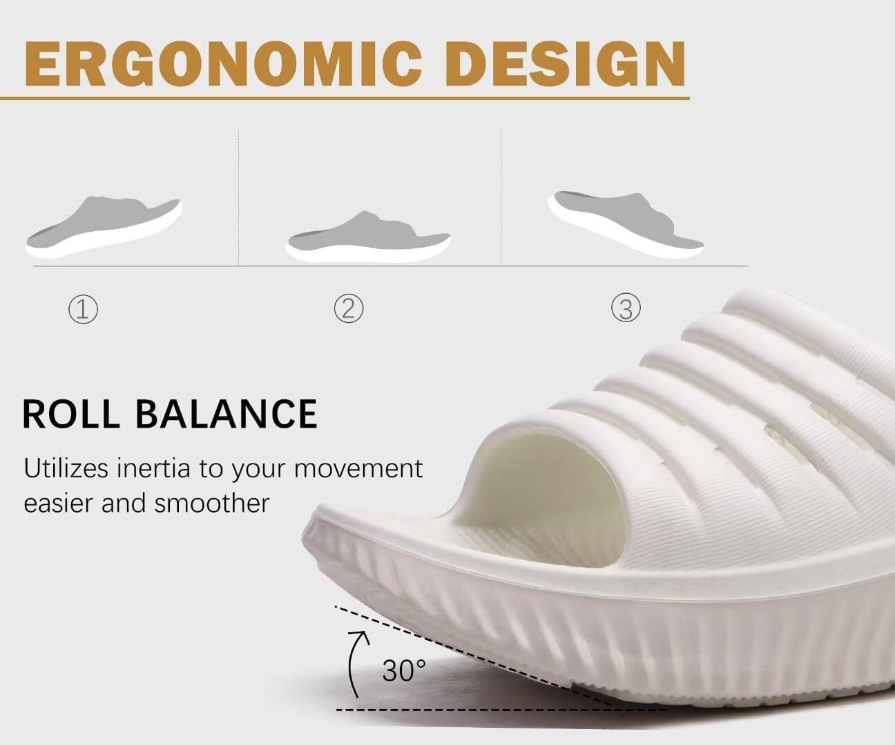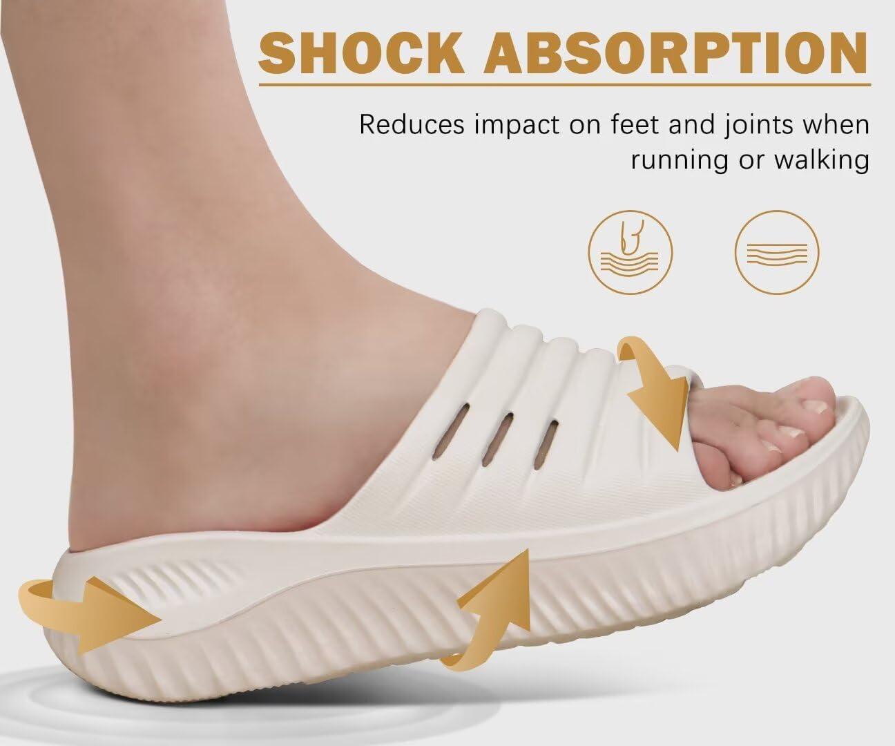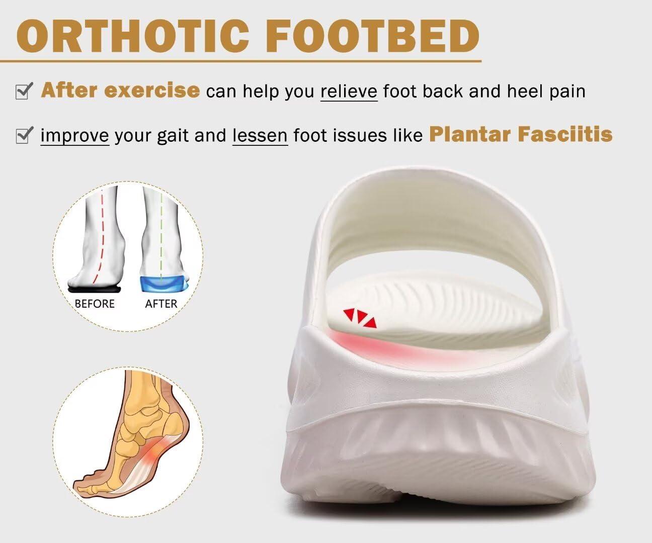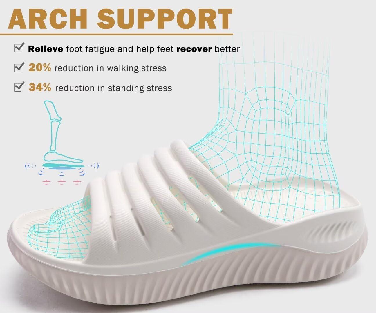 KuaiLu Womens Recovery Sandals With Comfortable Plantar Fasciitis Support,Ladies Orthotic Open Toe Sport Slides Thick Cushion Reduces Stress on Feet,Joints & Back Post-Exercise(White Beige)