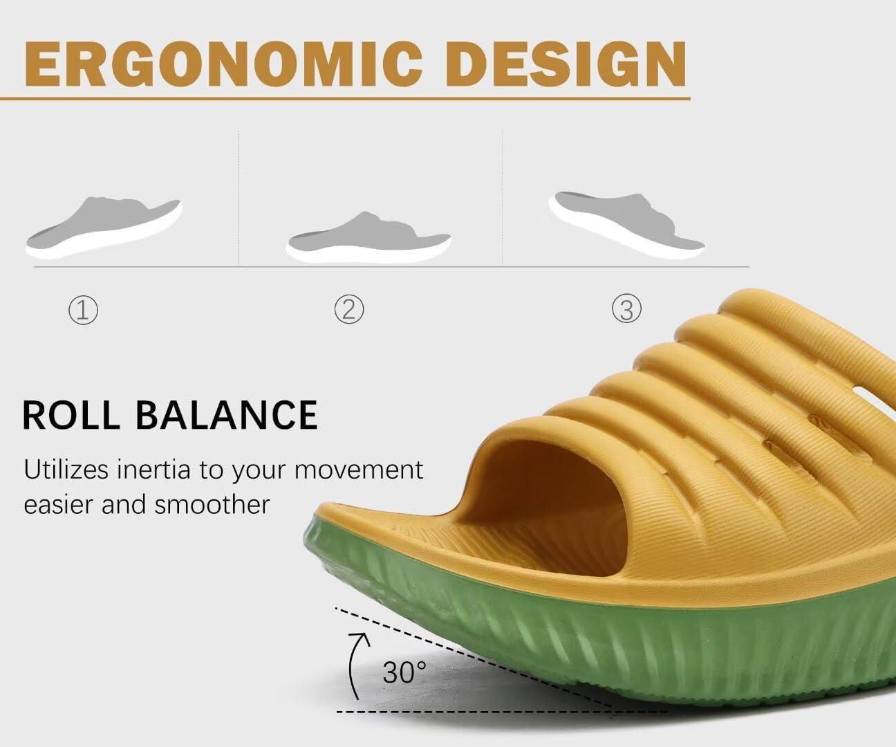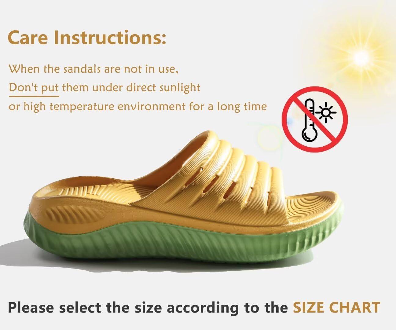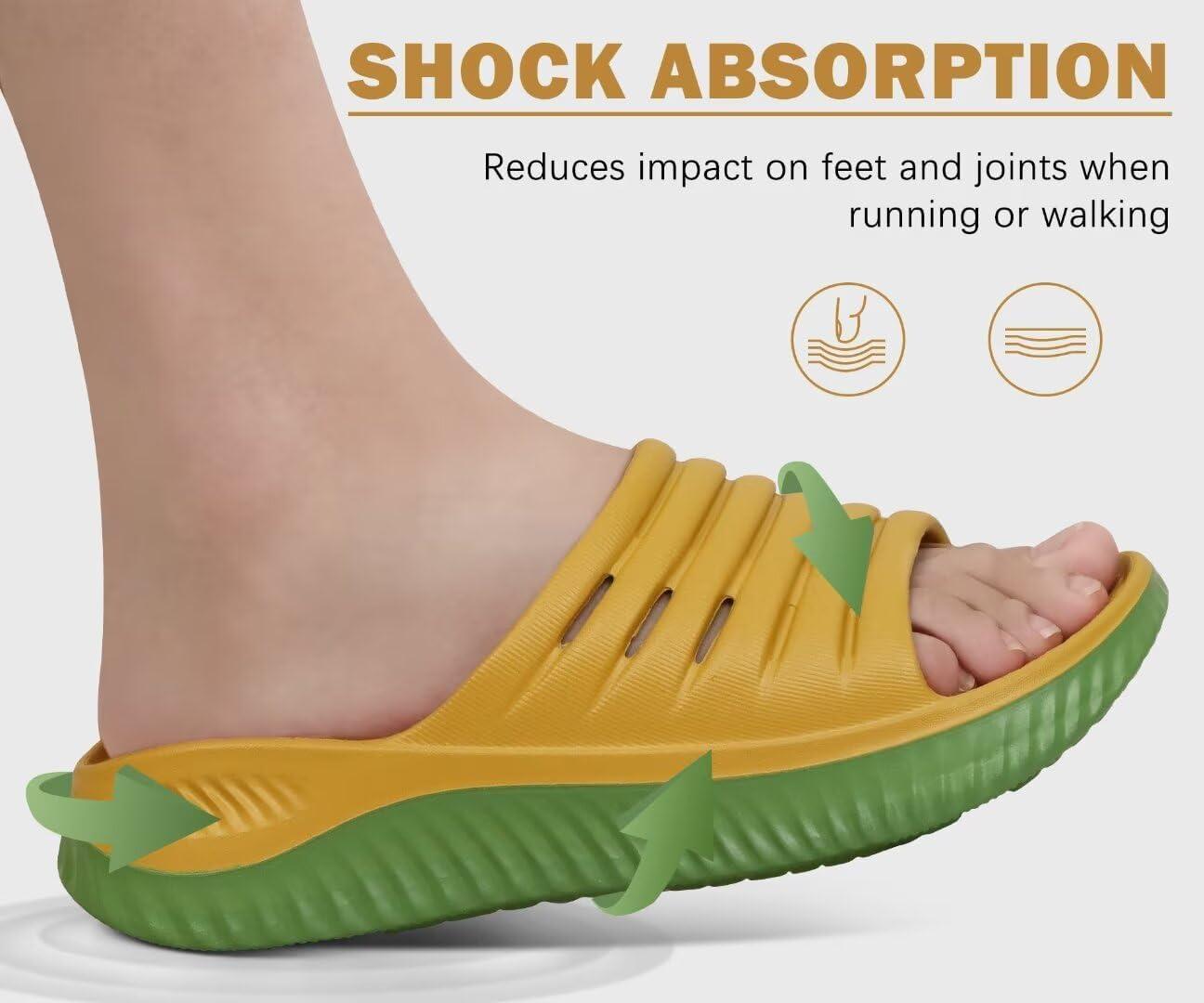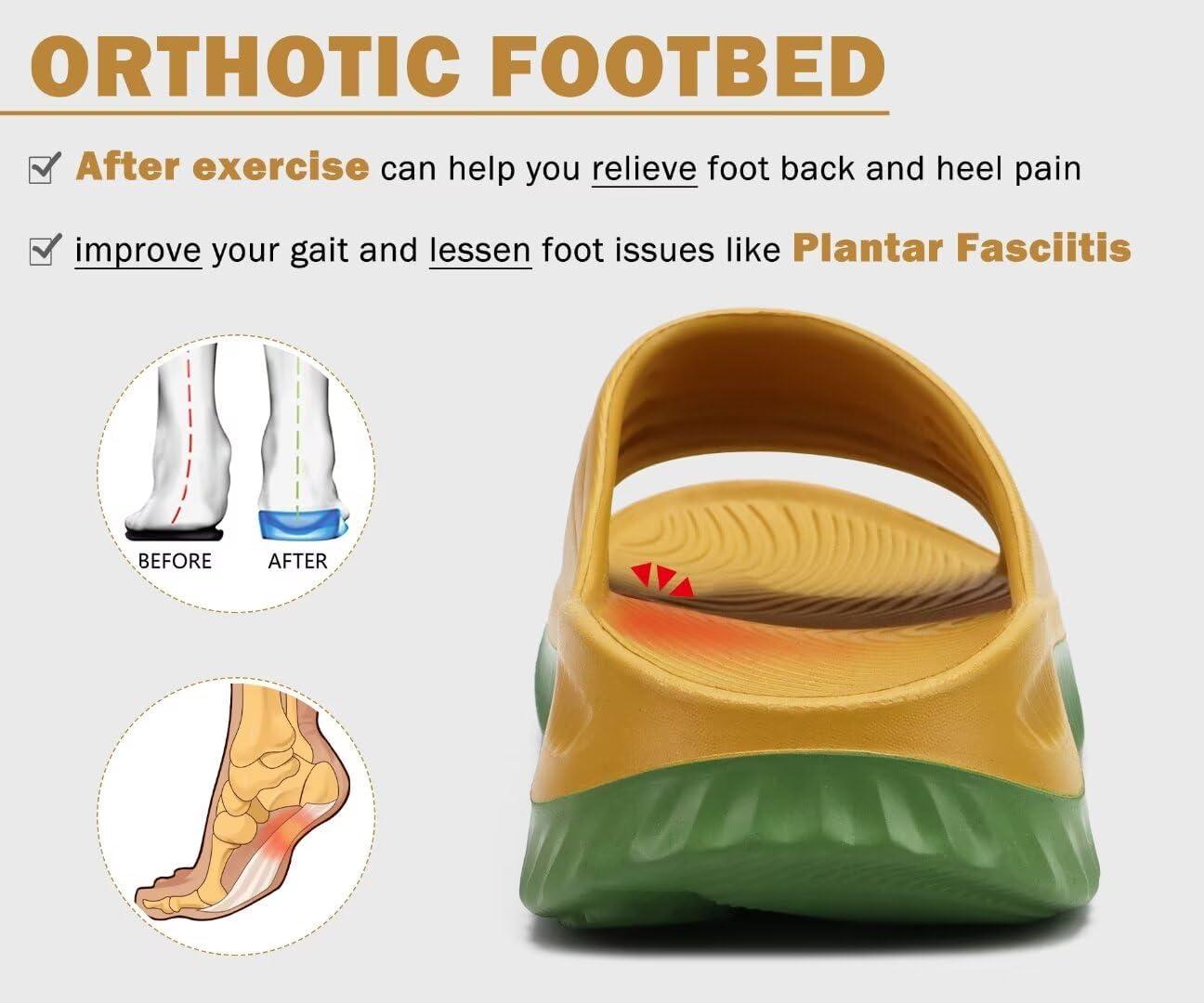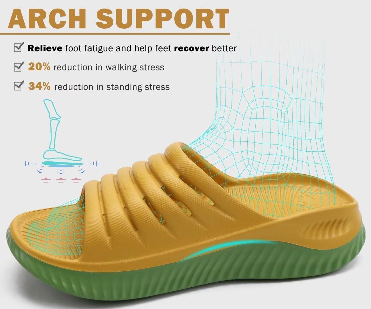KuaiLu Womens Recovery Sandals With Comfortable Plantar Fasciitis Support,Ladies Orthotic Open Toe Sport Slides Thick Cushion Reduces Stress on Feet,Joints & Back Post-Exercise(Yellow Green)