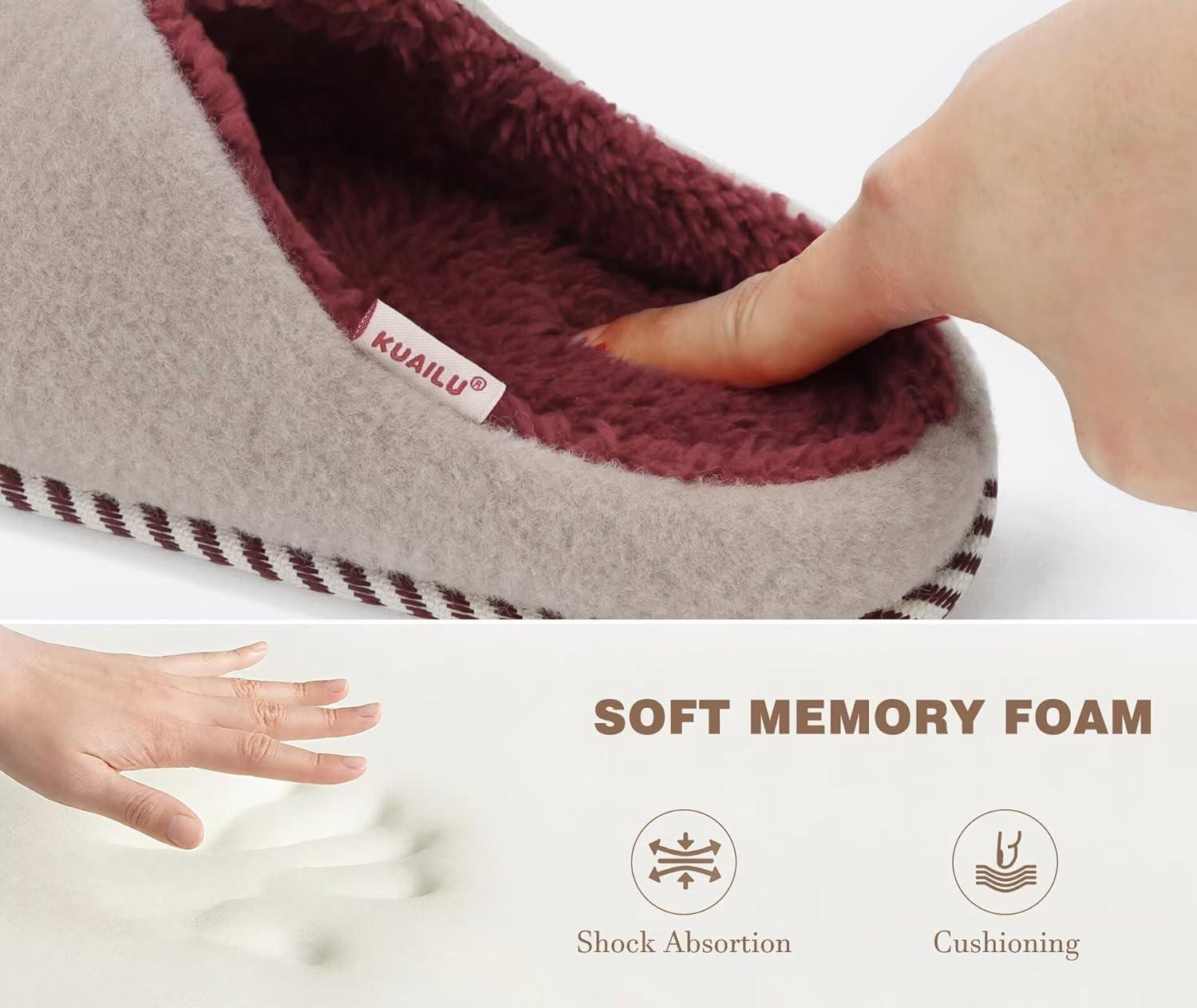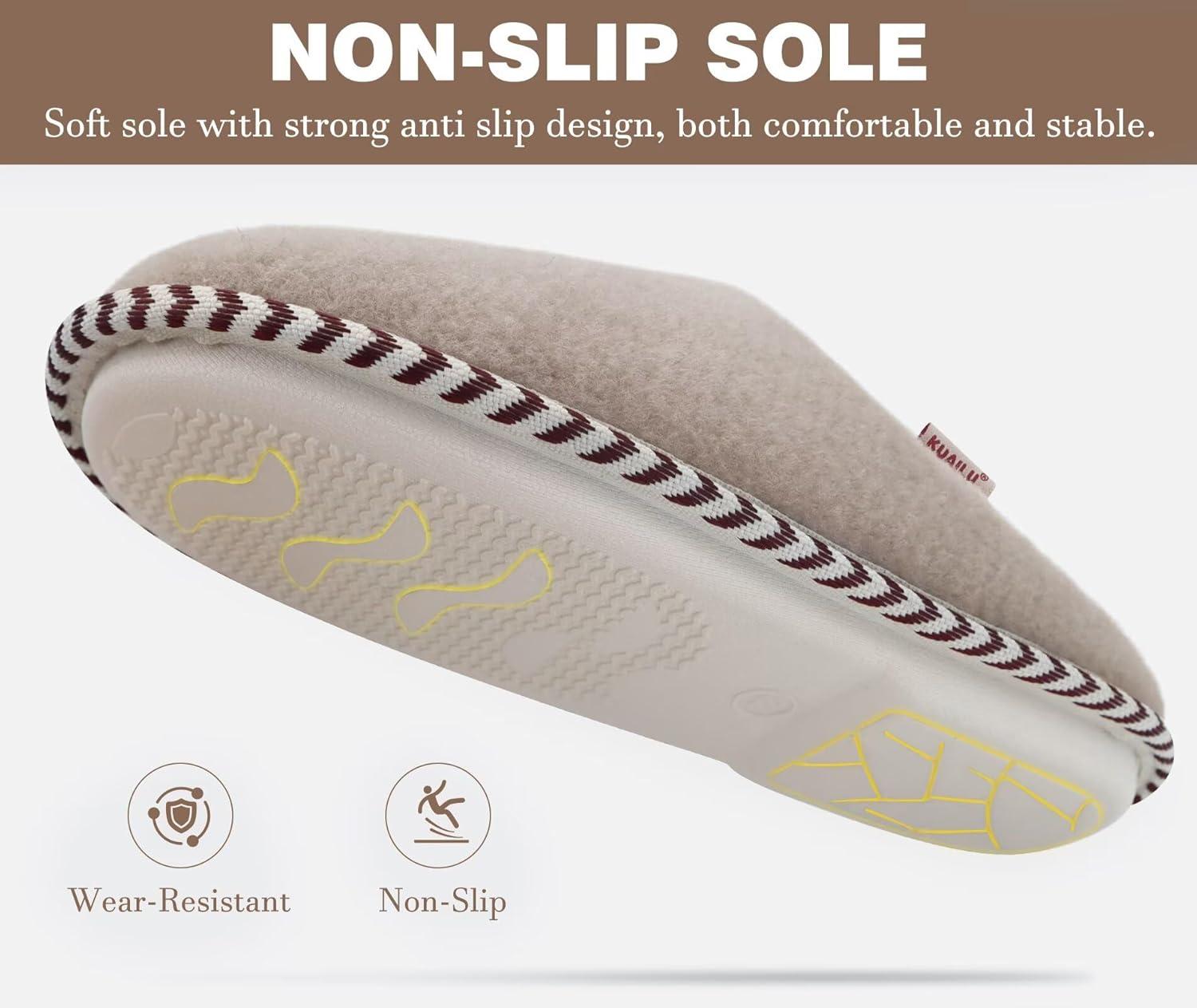 KuaiLu Womens Supportive Memory Foam Slippers Felt Fuzzy Lined Heel Cushion Lightweight House Shoes for Indoor Outdoor(Beige)