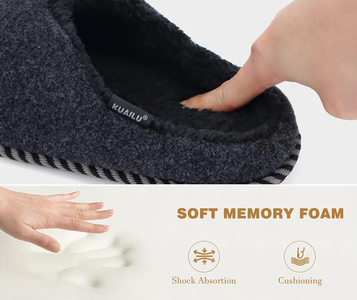 KuaiLu Womens Supportive Memory Foam Slippers Felt Fuzzy Lined Heel Cushion Lightweight House Shoes for Indoor Outdoor(Black)