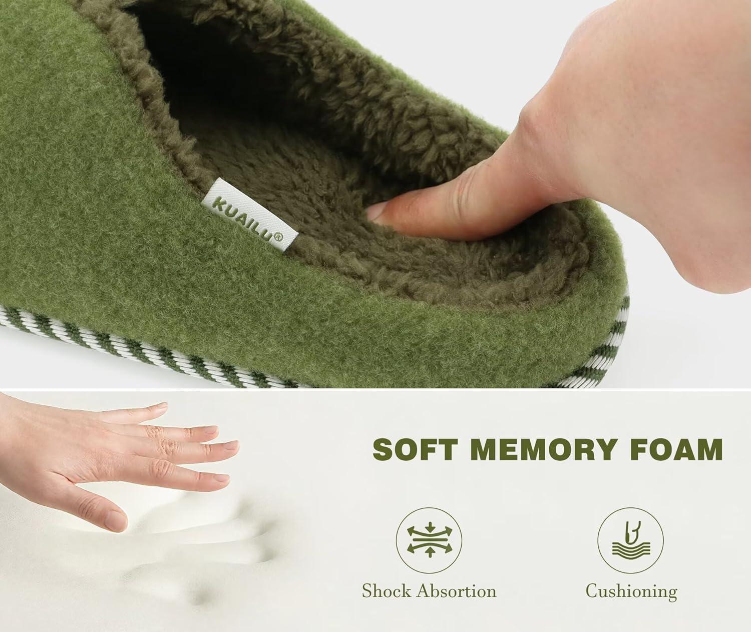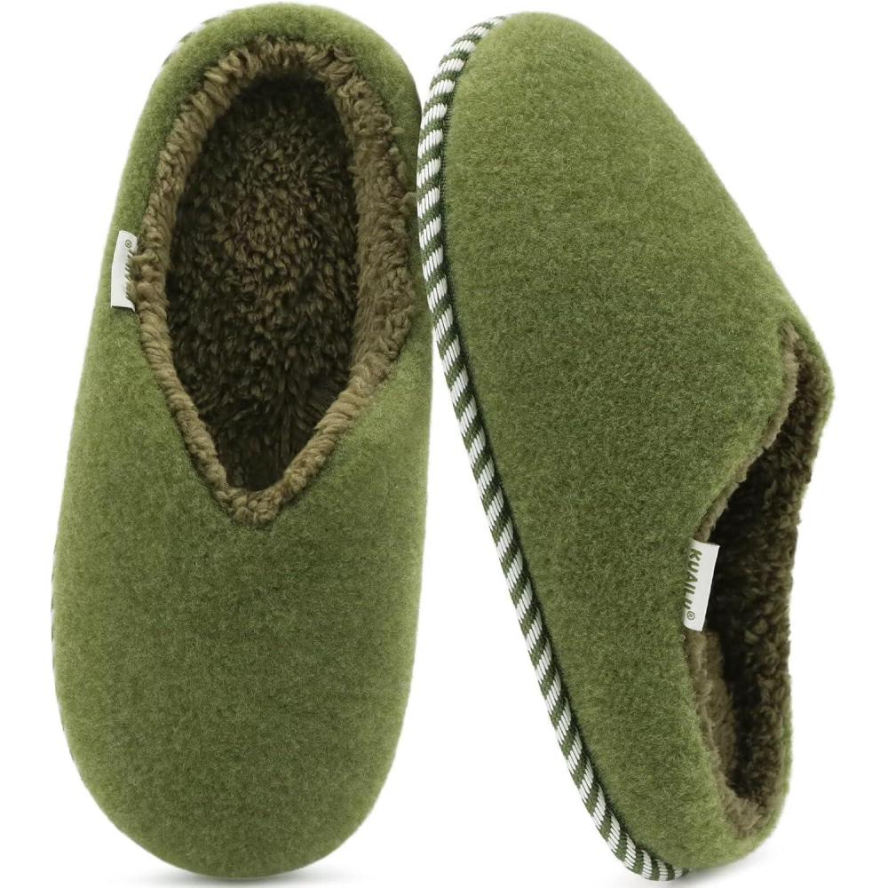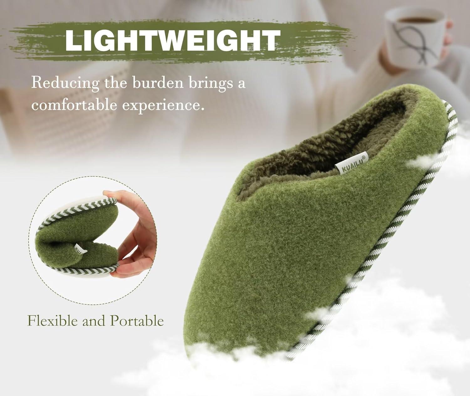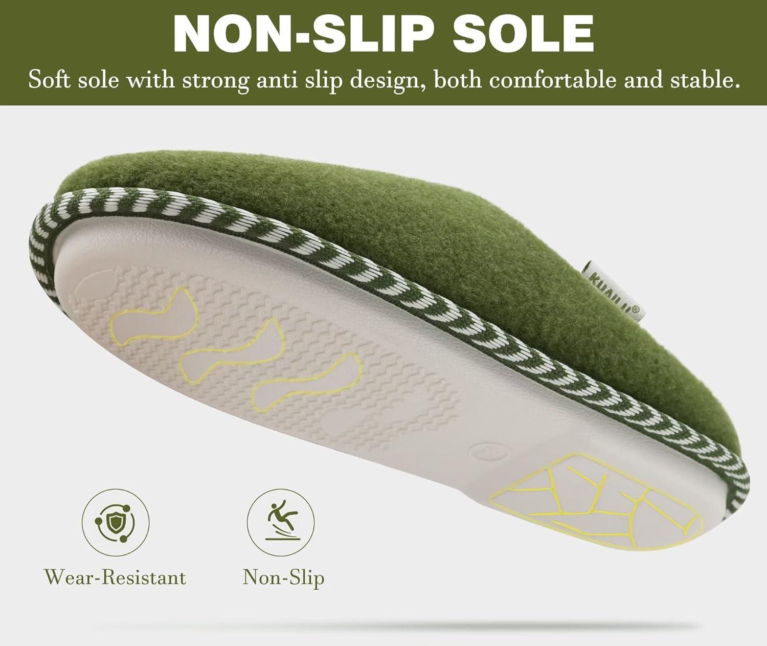 KuaiLu Womens Supportive Memory Foam Slippers Felt Fuzzy Lined Heel Cushion Lightweight House Shoes for Indoor Outdoor(Green)