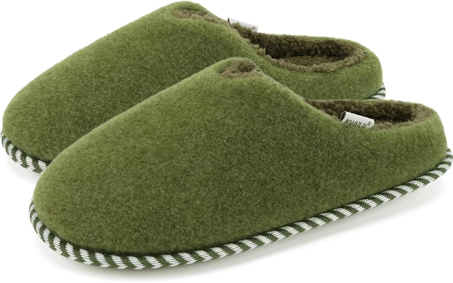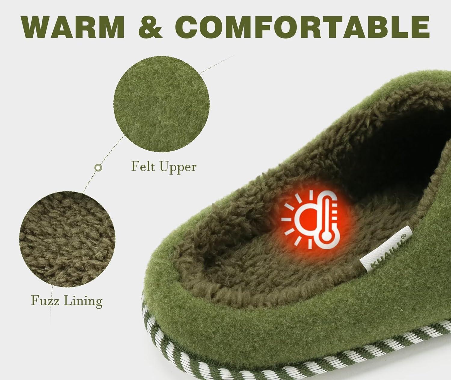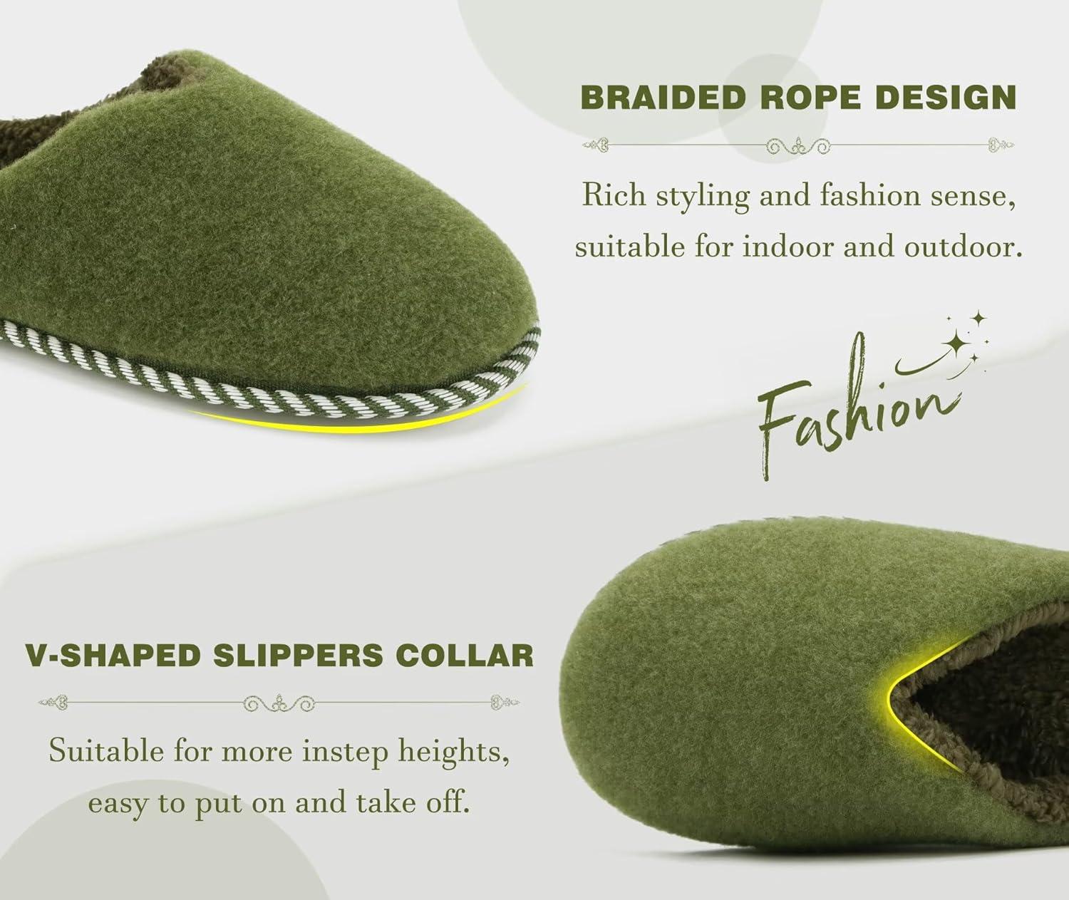 KuaiLu Womens Supportive Memory Foam Slippers Felt Fuzzy Lined Heel Cushion Lightweight House Shoes for Indoor Outdoor(Green)